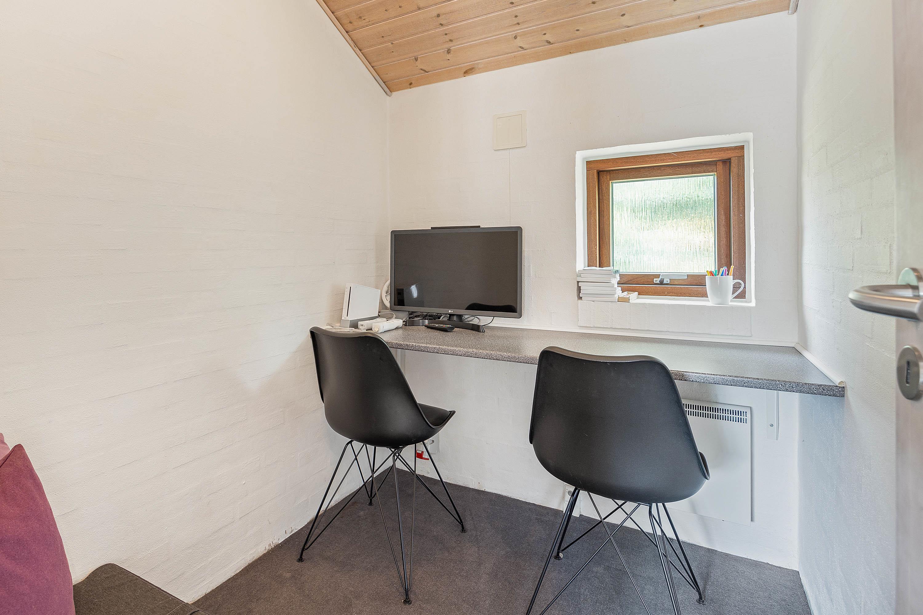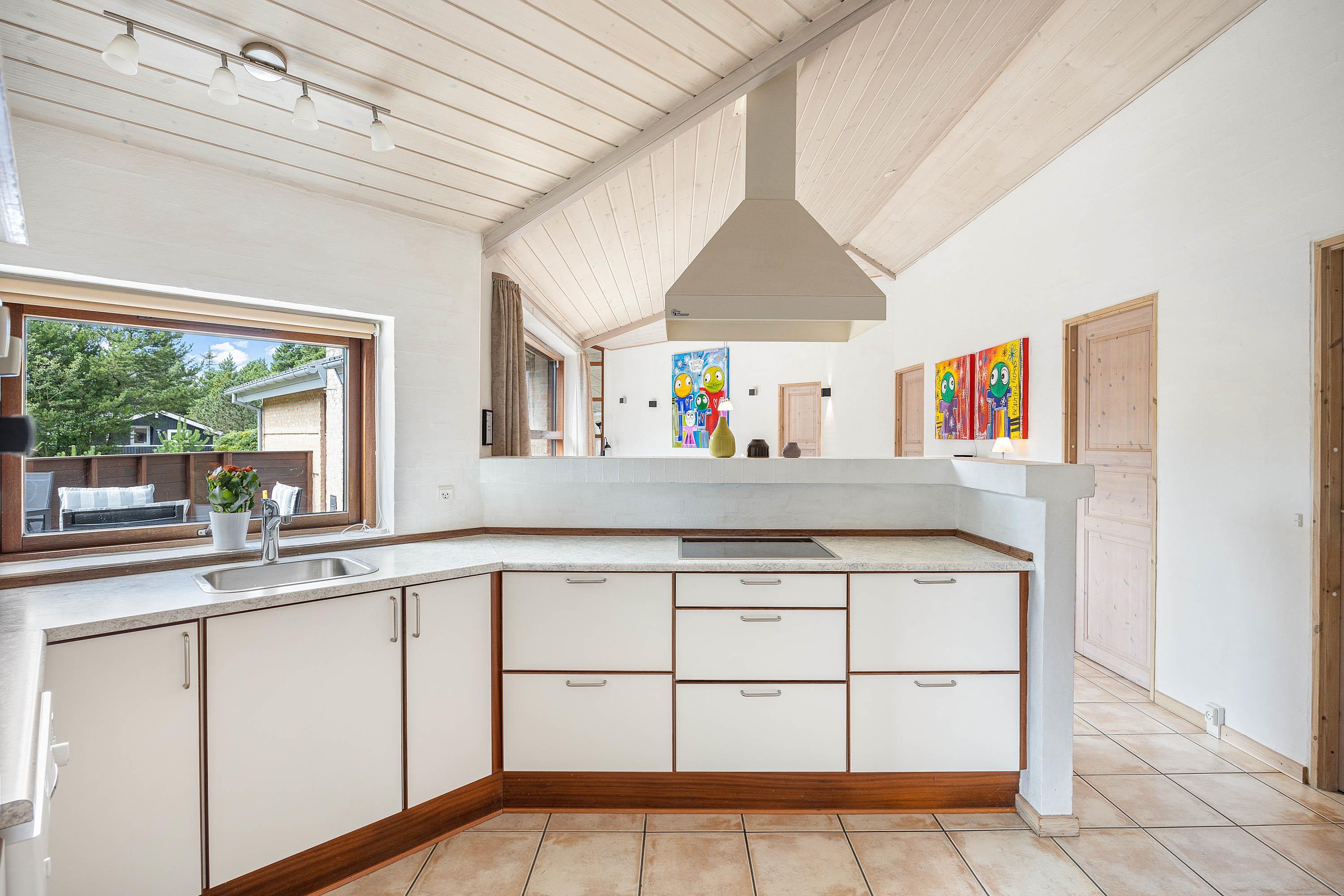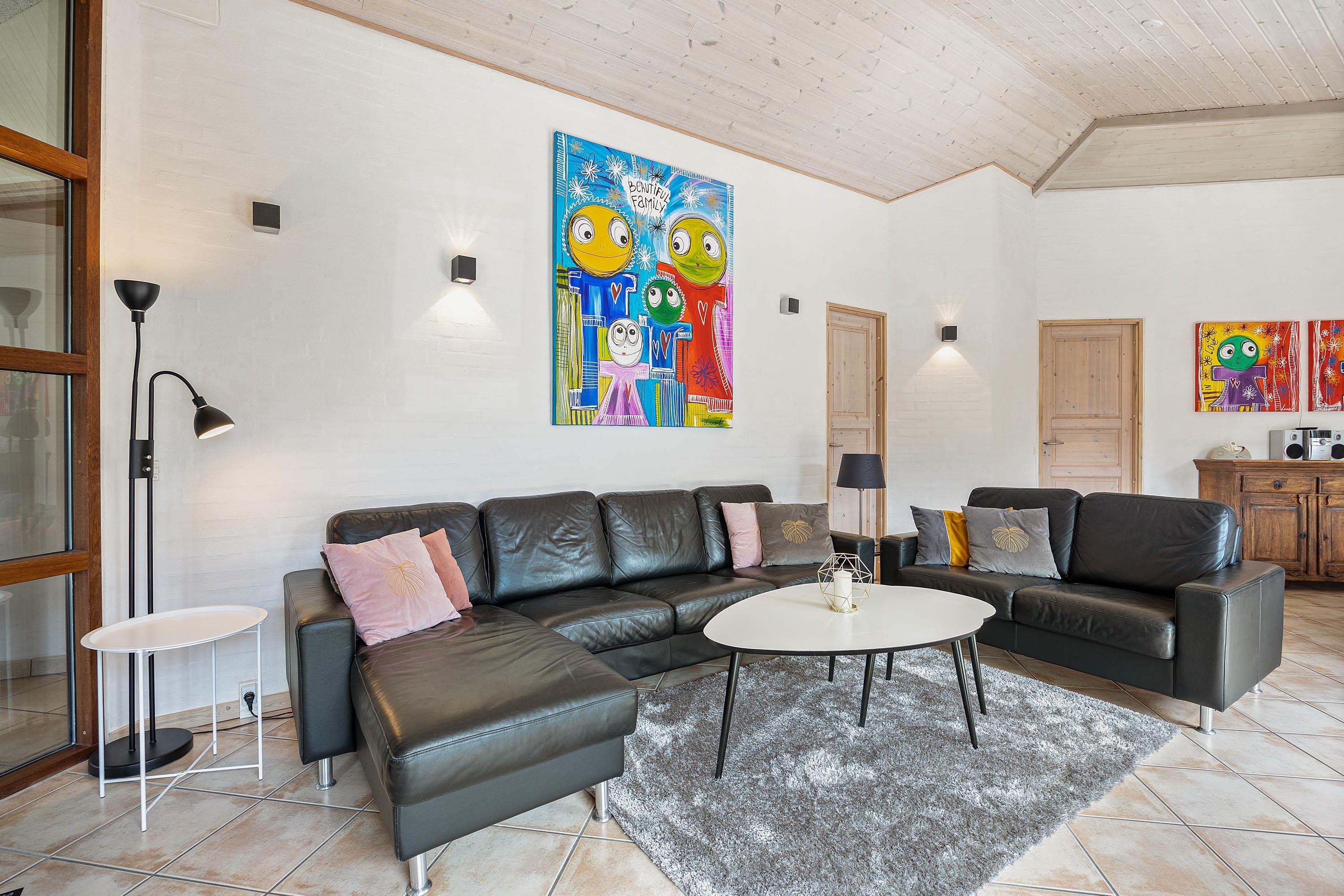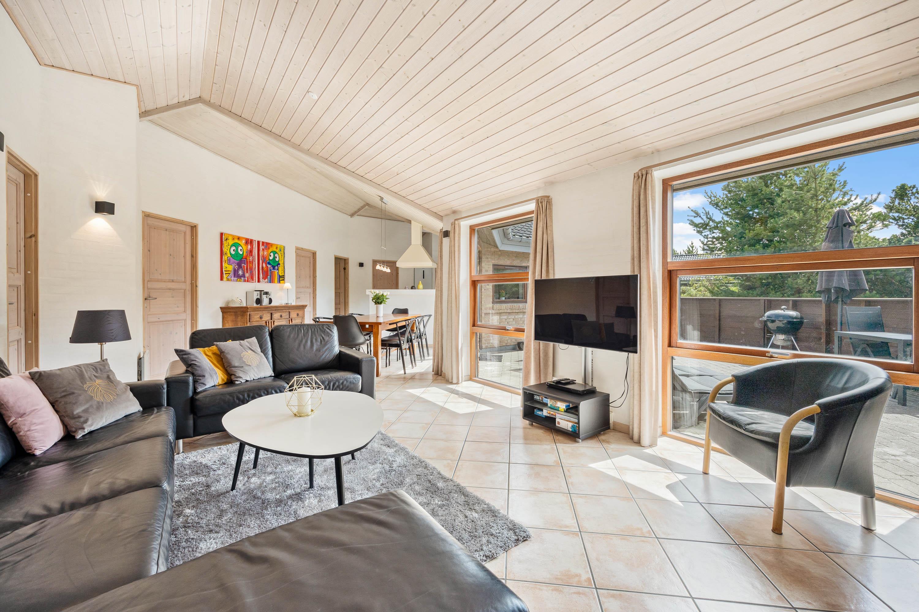Til hyggelige stunder med hele ferieflokken kan I alle samles i alrummet, hvor køkken, stue og spiseplads ligger i åben forbindelse. Alrummet danner rammen om alt fra hyggelige madlavning til sjove spil og gode film. Der er Chromecast i feriehuset, så I kan streame jeres yndlingsfilm, mens brændeovnen knitrer i baggrunden og fuldender den hyggelige feriestemning.