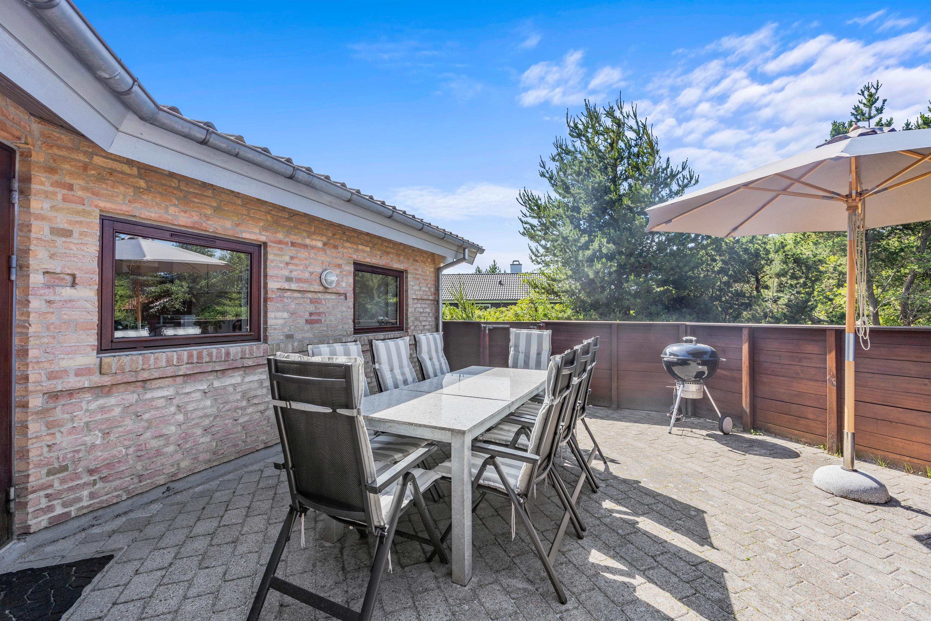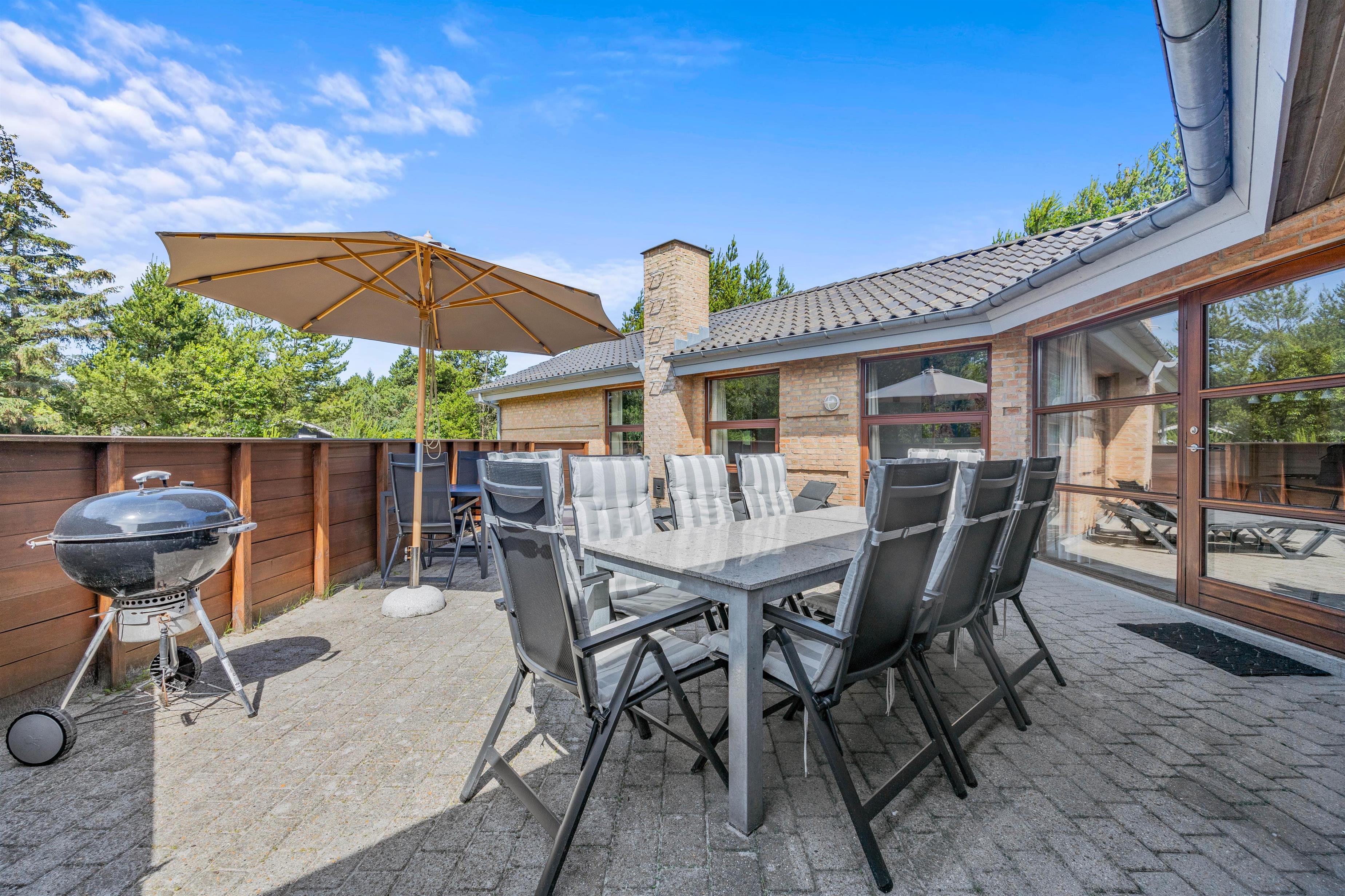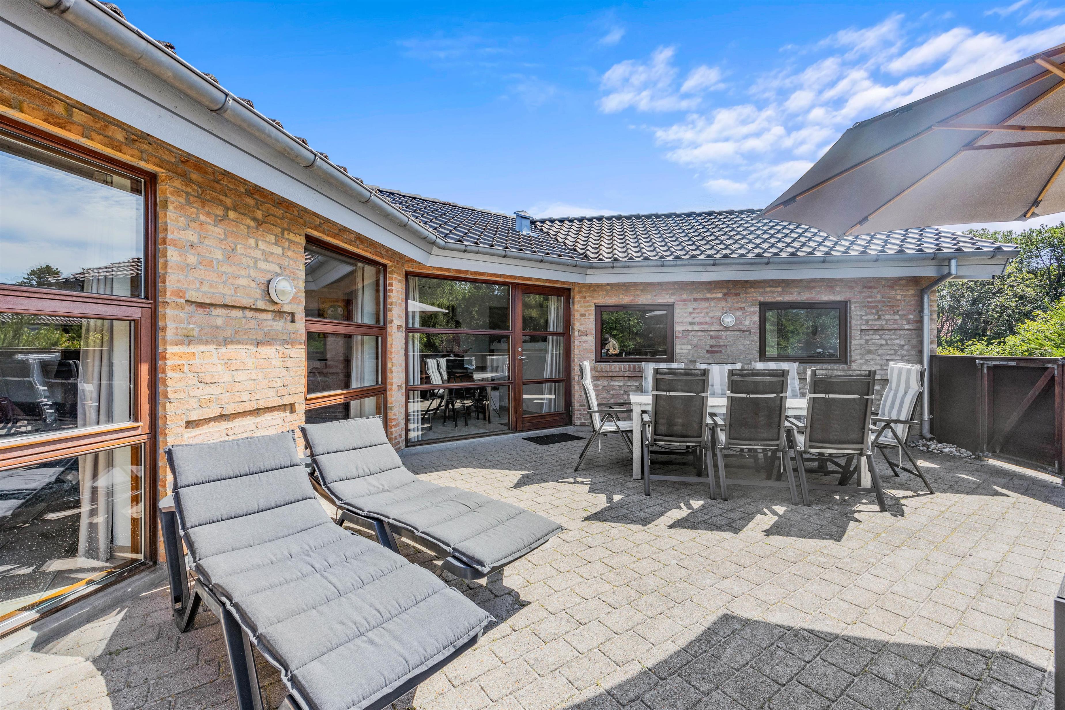 Er ferievejret i top, kan I tilbringe dagen på sommerhusets terrasse, der er lukket. Her kan I slappe af på en god plads i solen, hvor I kan læne jer tilbage i havemøbler og liggestole, mens børnene kan lege i sandkassen, hvor de kan bygge flotte sandslotte.