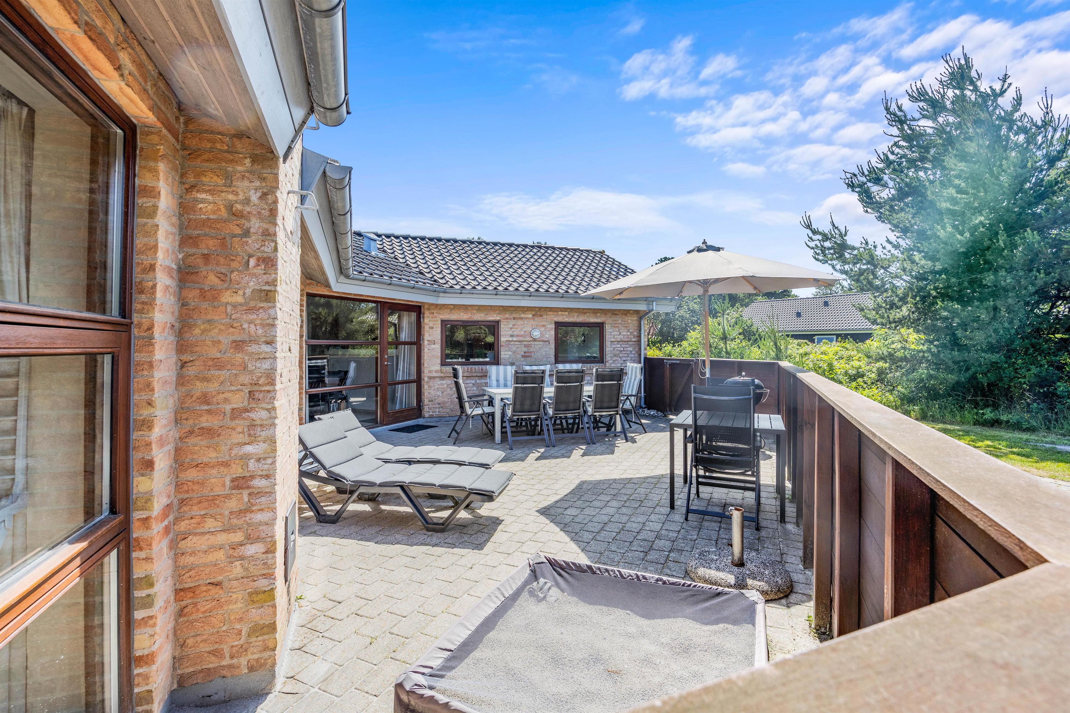 I den livlige ferieby Blåvand venter jer dette skønne, firestjernede sommerhus, der inviterer indenfor til en dejlig ferie. Sommerhuset har plads til en ferie for op til 8 personer, og dermed er det et oplagt valg, hvis I er en stor familie, to små familier eller en stor vennegruppe, der vil holde ferie sammen. I sommerhuset kan I se frem til underholdende timer i swimmingpoolen og afslappende stunder i spaen. Desuden er feriehuset på Kallesensvej 16 i Blåvand beliggende kun 600 meter fra stranden.