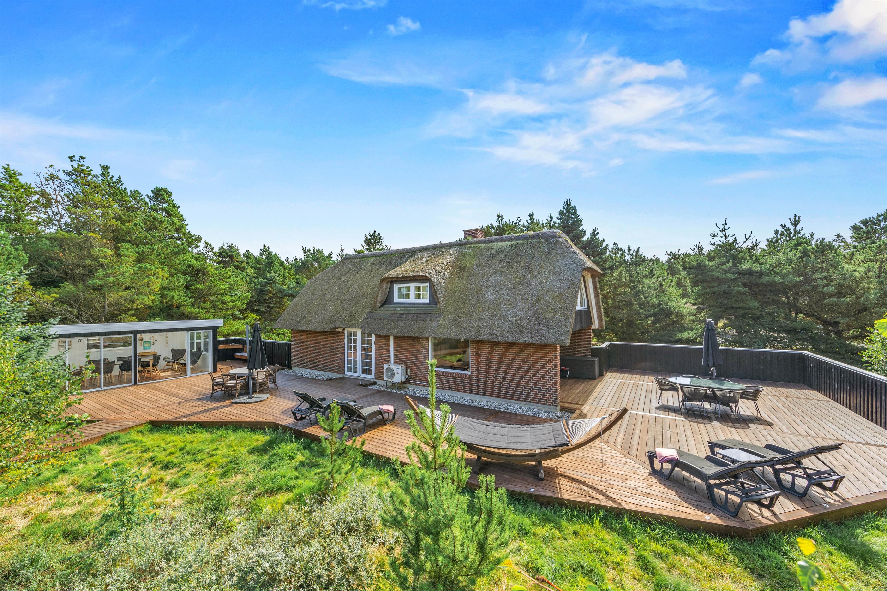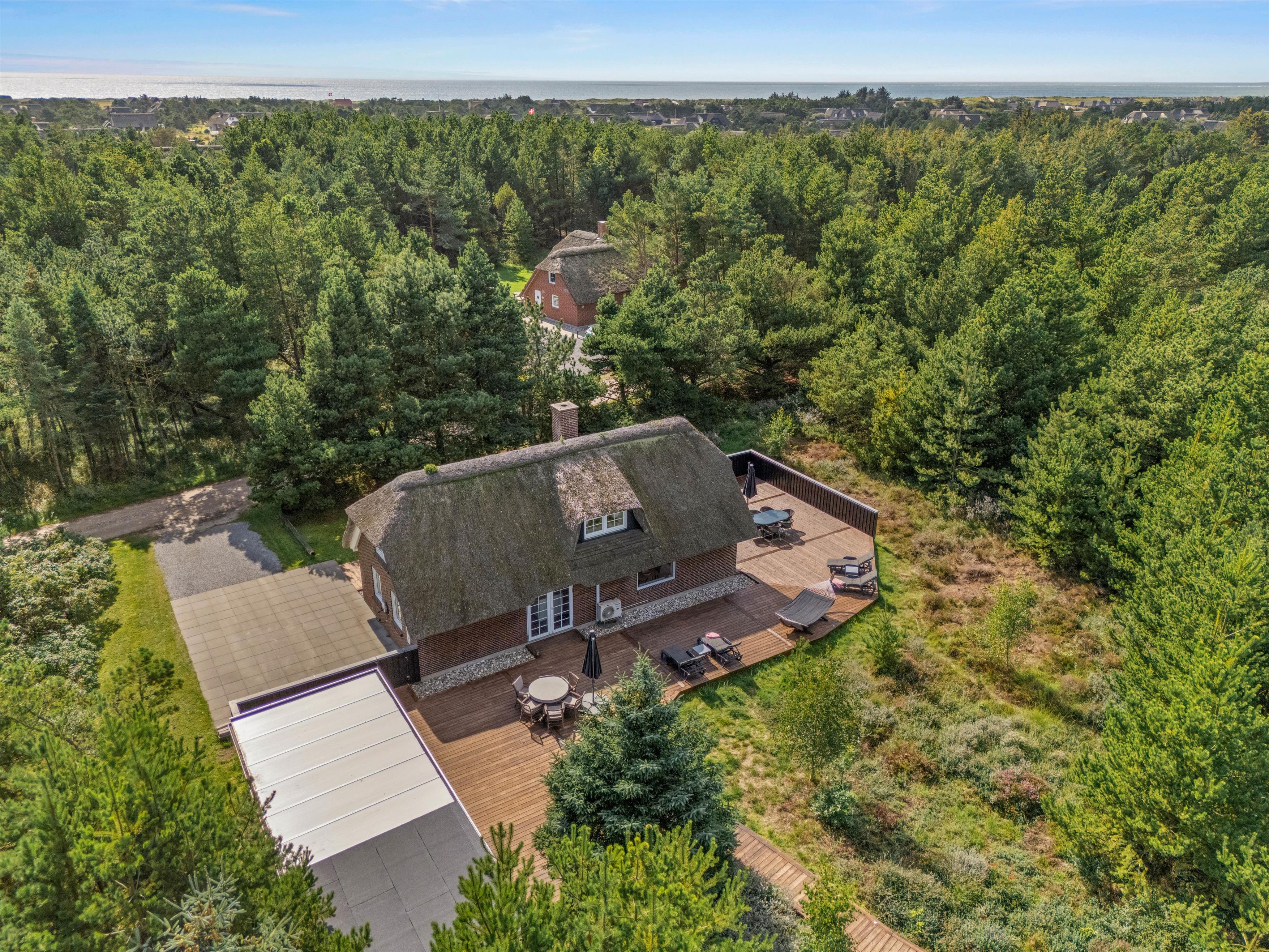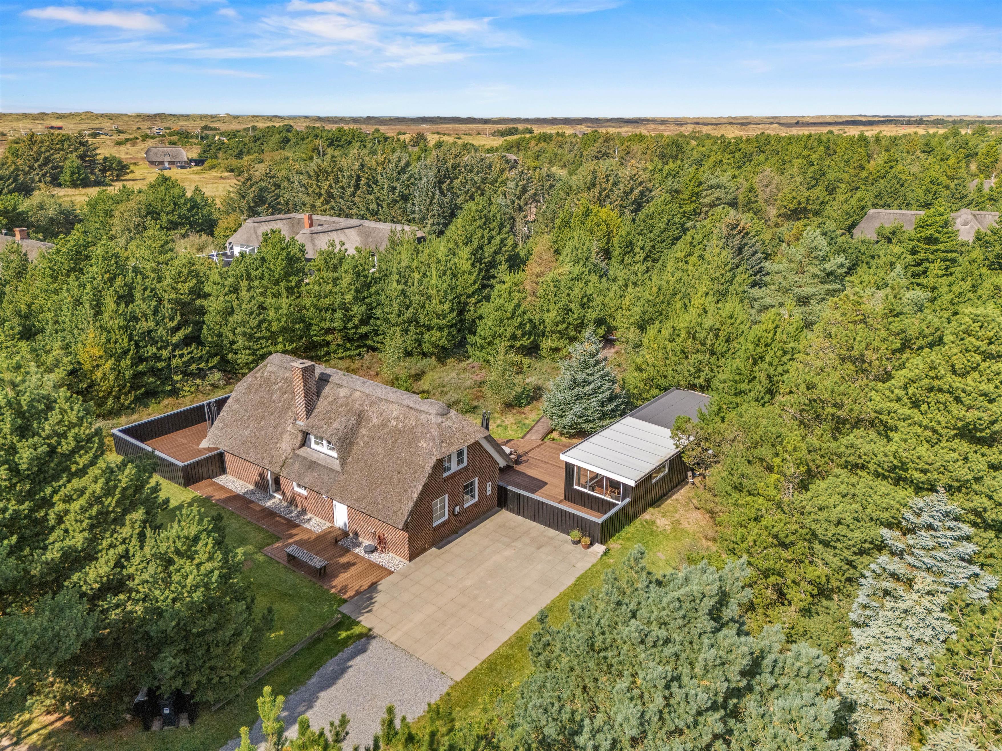 Dette skønne stråtækte feriehus er helt ideelt til en familieferie i den grønne natur. Her kan I bo med op til 6 personer, og hunden er også velkommen. Beliggenheden er helt i top - godt afskærmet hele vejen rundt af høje træer og buskads, og stadig ikke langt fra Blåvands centrum.
