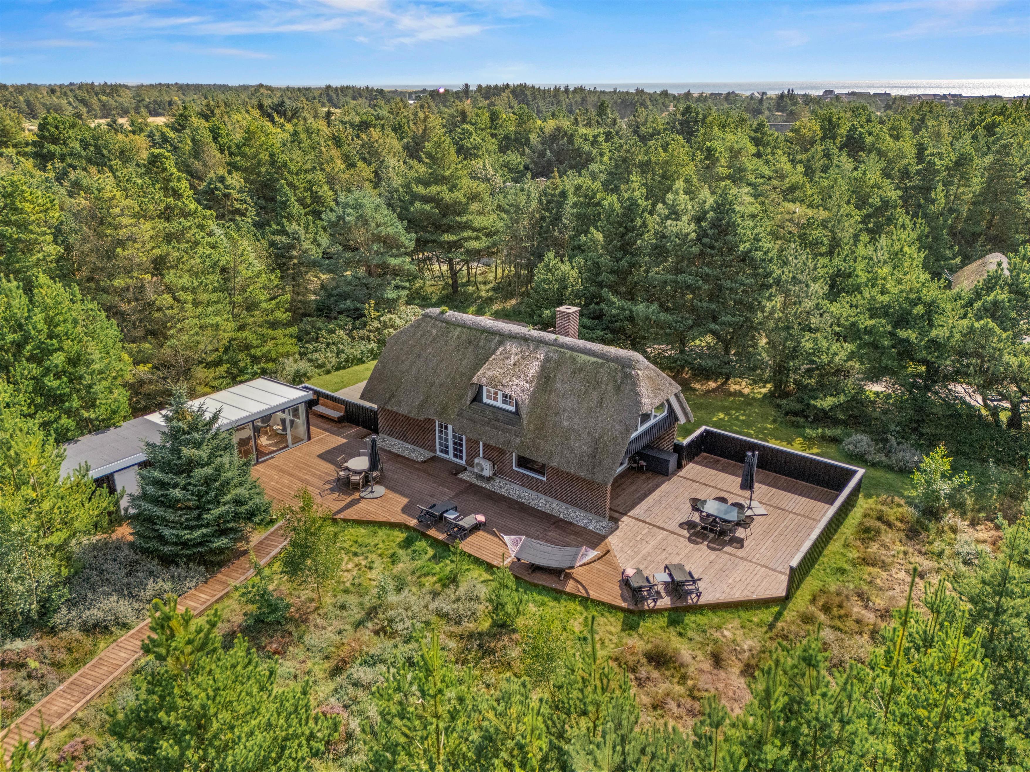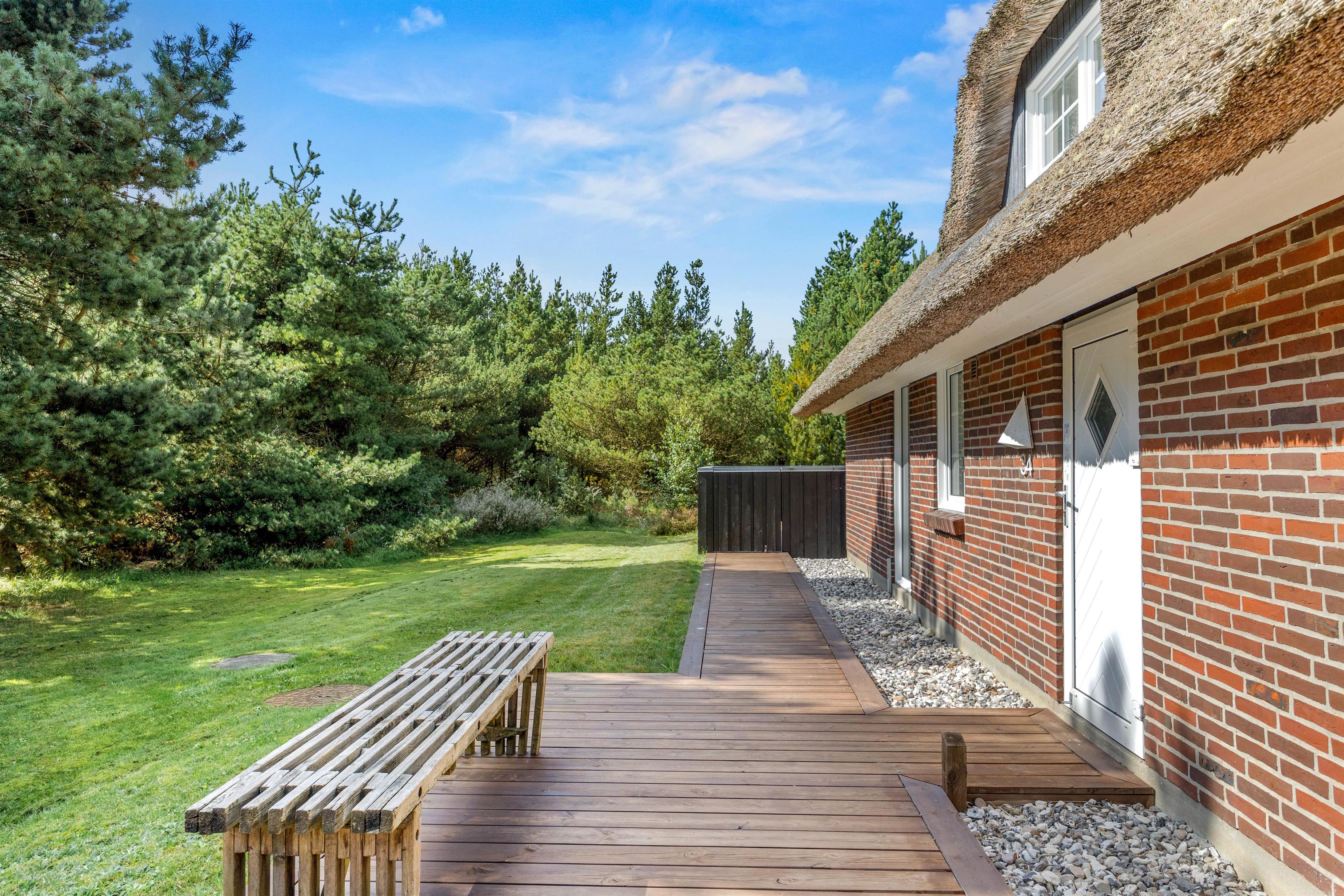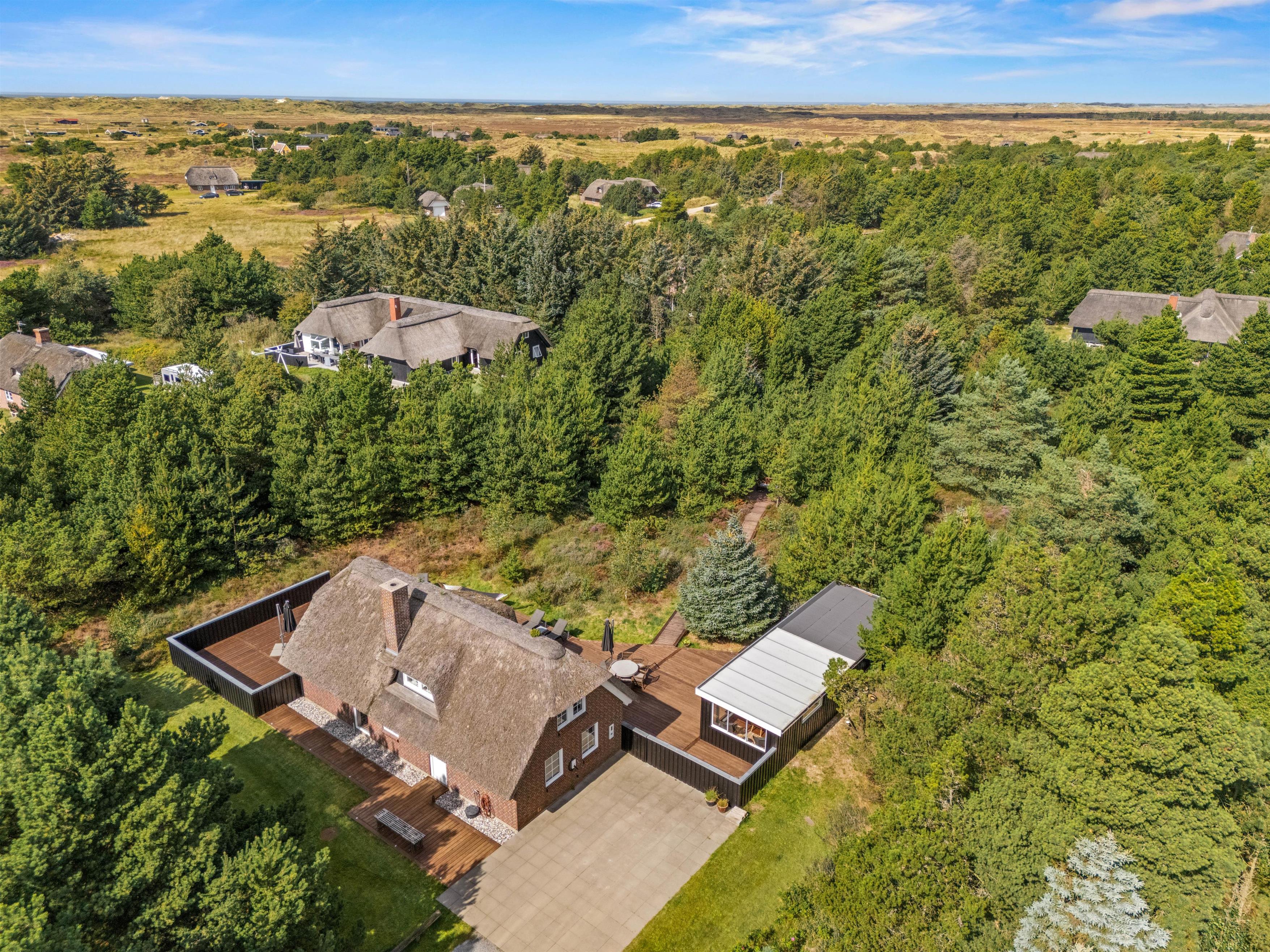 Dette skønne stråtækte feriehus er helt ideelt til en familieferie i den grønne natur. Her kan I bo med op til 6 personer, og hunden er også velkommen. Beliggenheden er helt i top - godt afskærmet hele vejen rundt af høje træer og buskads, og stadig ikke langt fra Blåvands centrum.