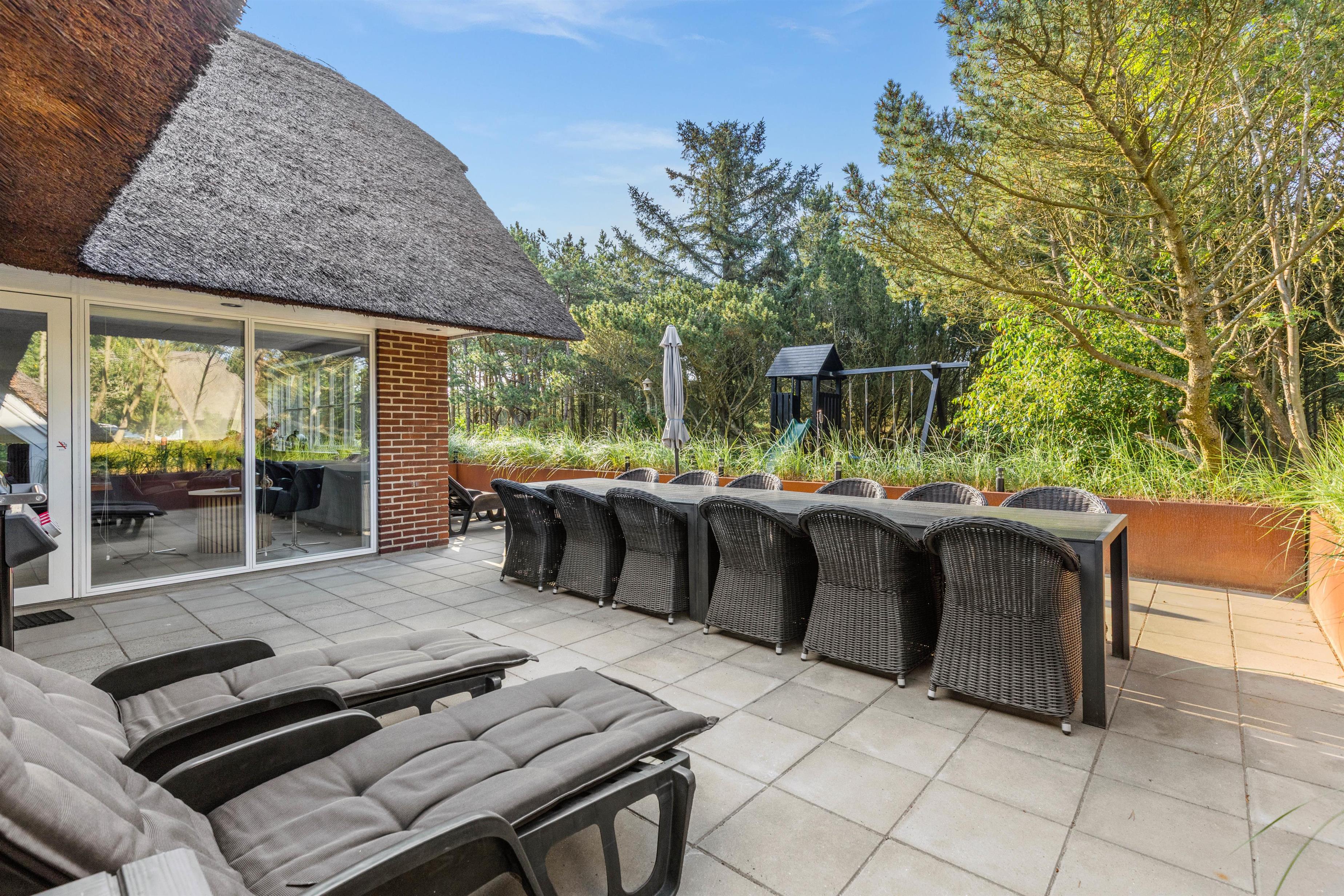Den smukke naturgrund byder på mange aktiviteter for store og små. På den afskærmede terrasse står havemøbler og solvogne klar, så I her kan nyde de solrige sommerdage omgivet af den unikke natur på den danske vestkyst, alt imens familiens mindste og jeres hund kan lege med bold på plænen, hoppe på trampolinen eller hygge sig på legetårnet med rutsjebane og gynge.