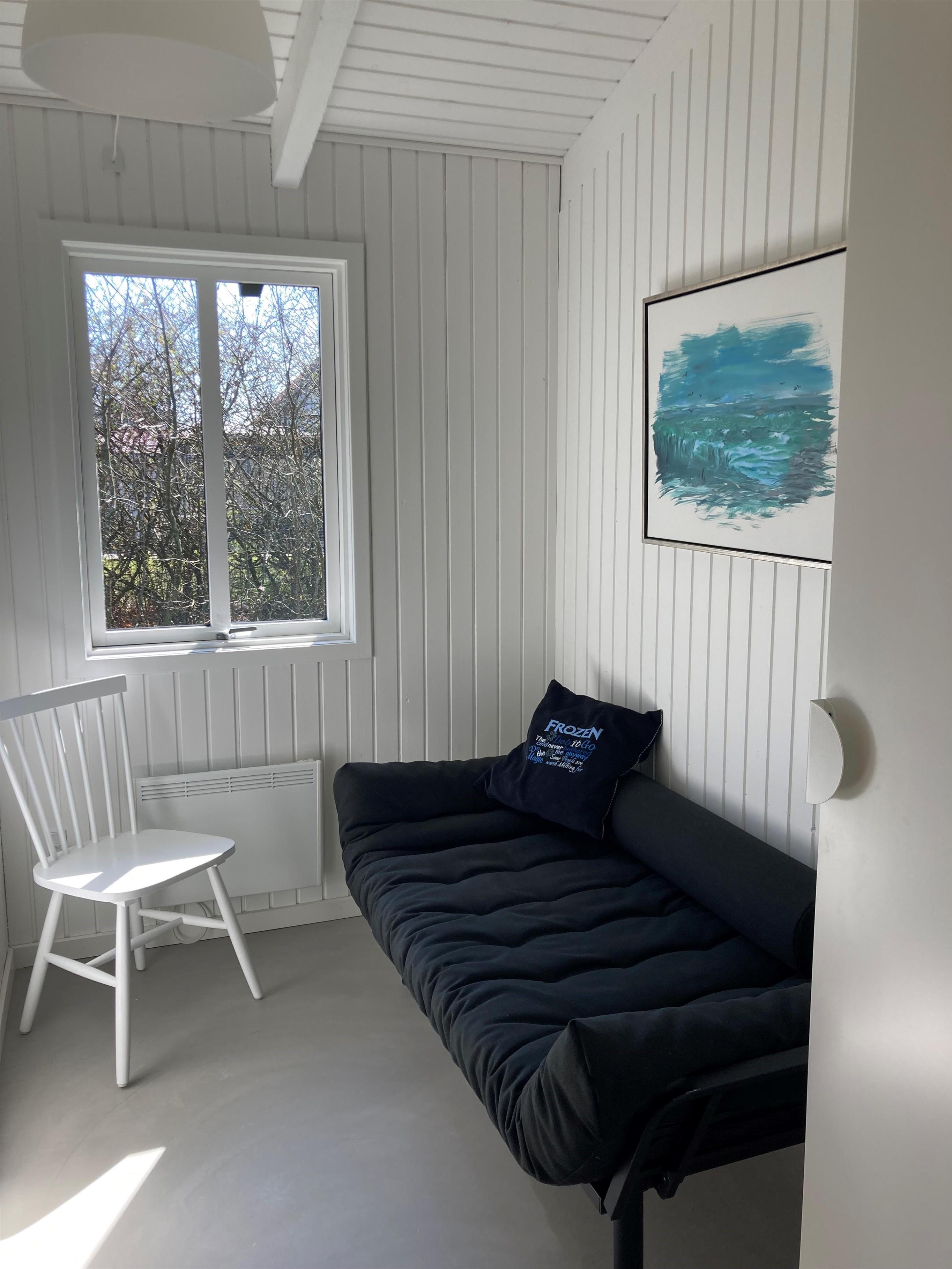 To-somhed i et renoveret sommerhus – med brændeovn og rene linjer