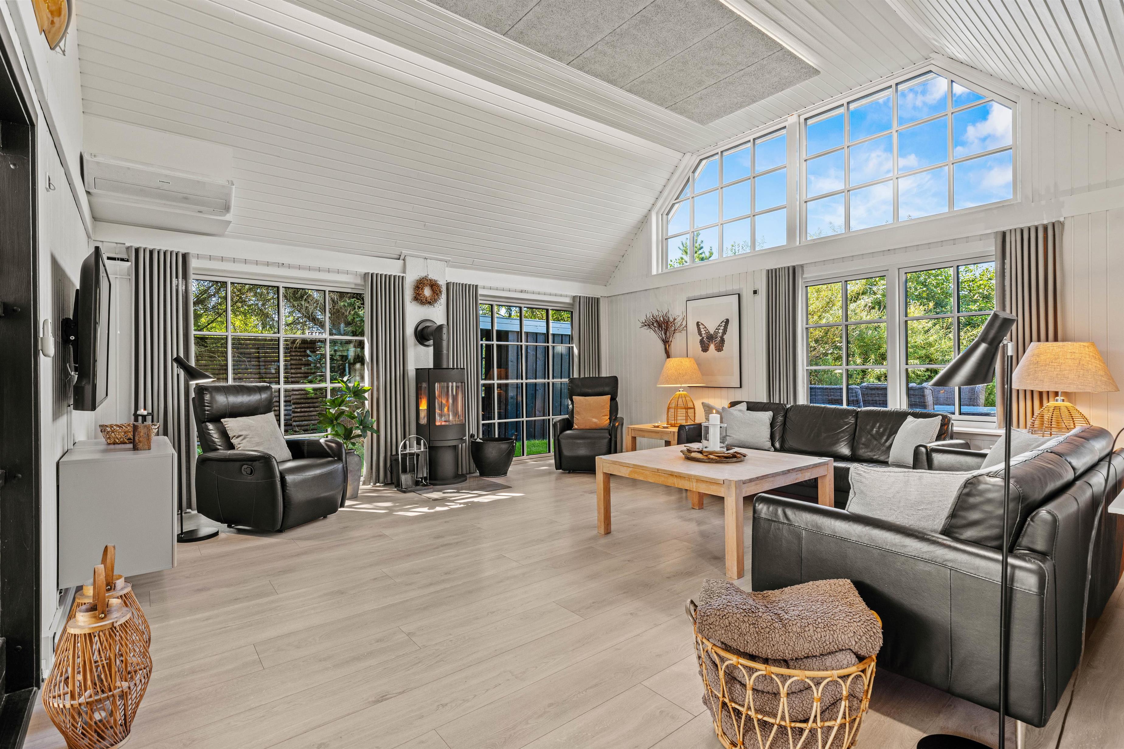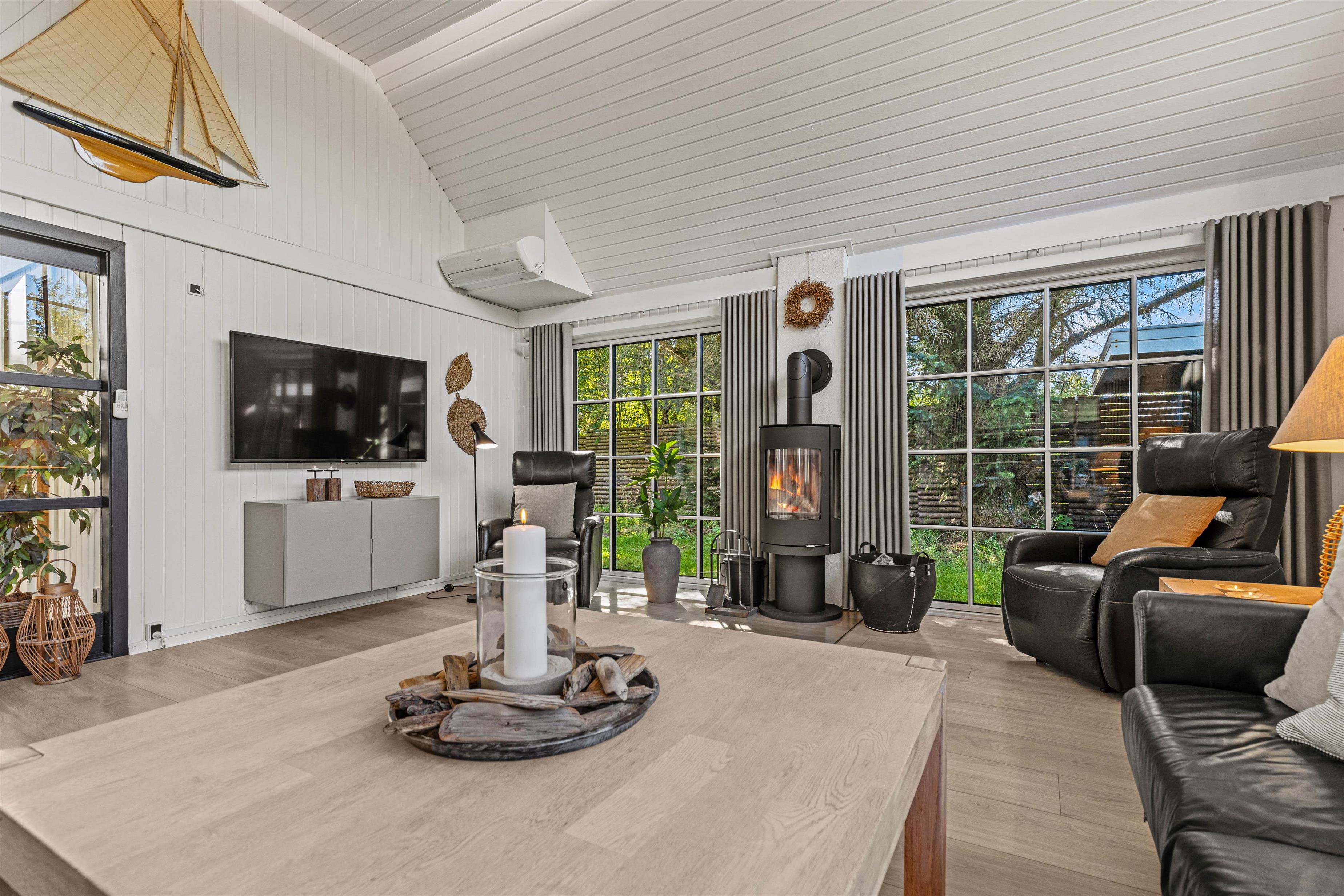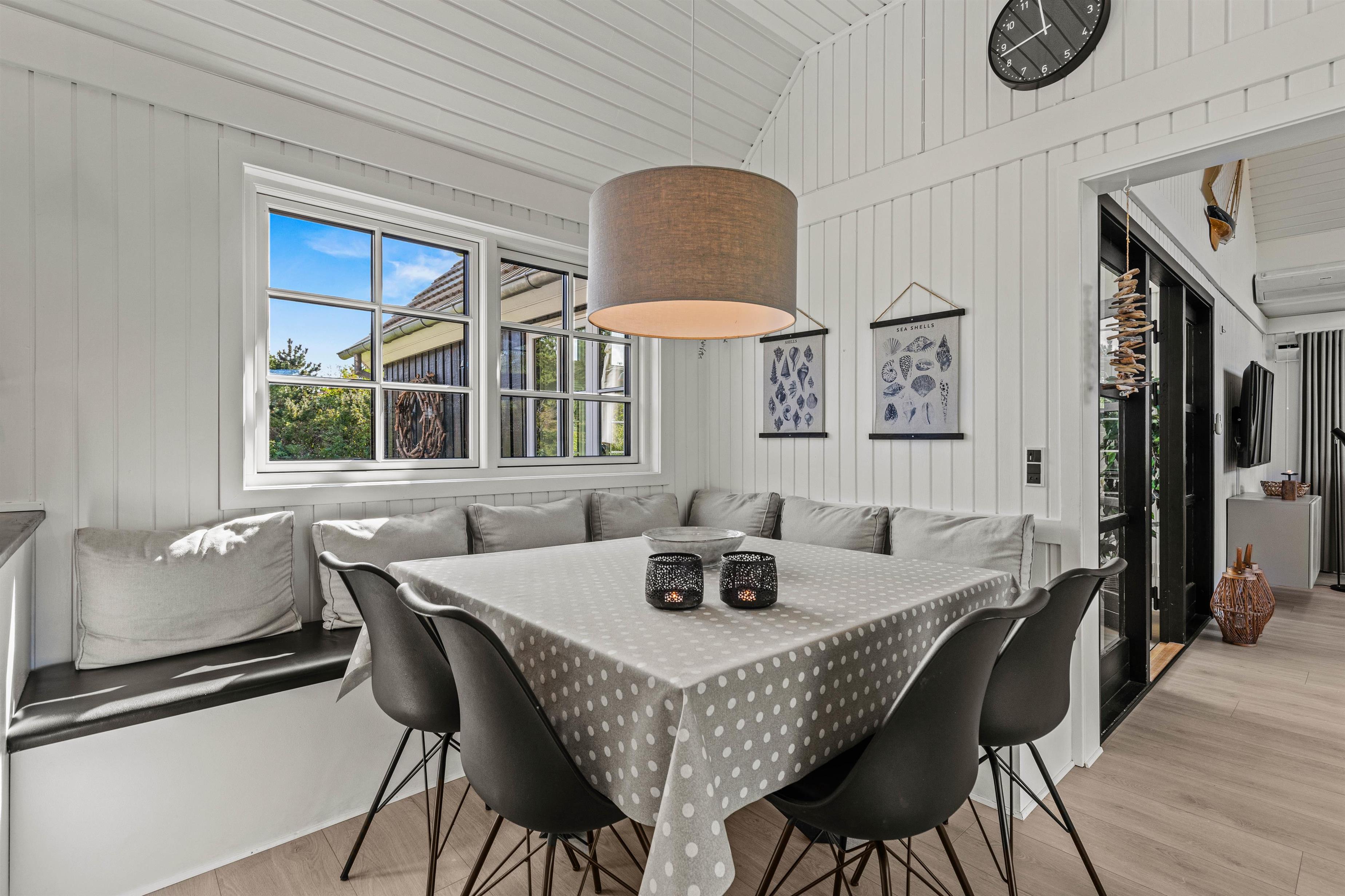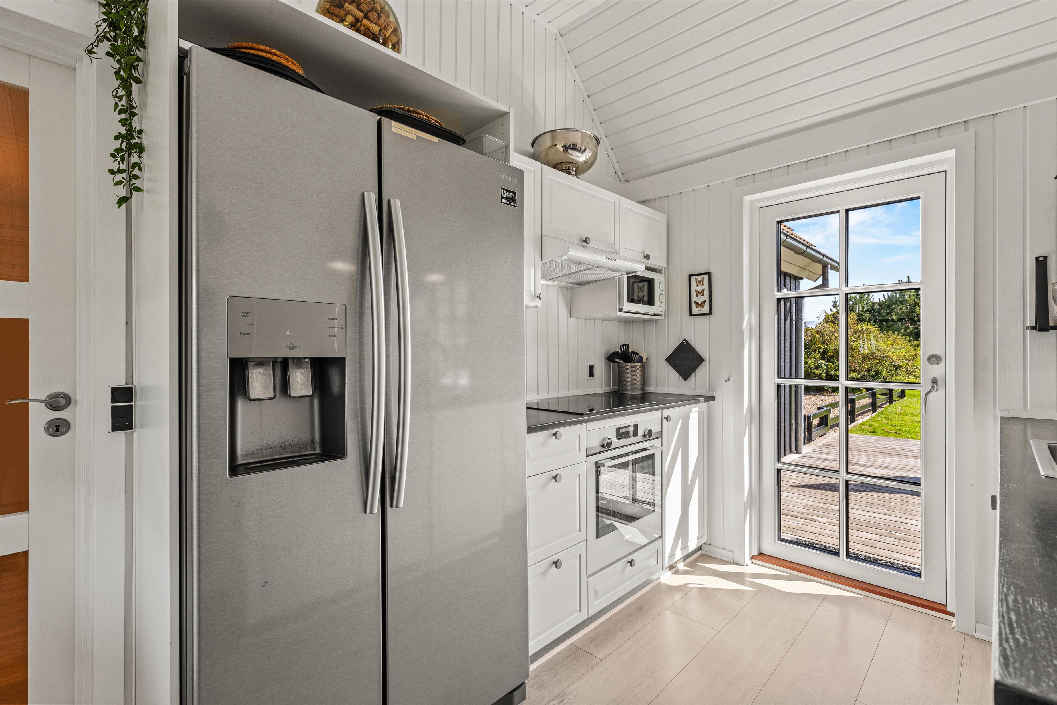 Det 172 m2 store flotte hus er stilfuldt indrette og rummer alle vigtige faciliteter og mere til. De store lyse fællesrum – det moderne køkken og stuen med brændeovnen og et opholdsrum med pool billard, air hockey eller bordtennis lover masser af fælles feriehygge. Her føler hele familien sig godt tilpas, og en regnvejrsdag kan sagtens blive til feriens hyggeligste! I det moderne køkken er der naturligvis opvaskemaskine og det store køleskab lover kolde drinks med masser af is på varme dage. Naturligvis er huset udstyret med både vaskemaskine og tørretumbler.