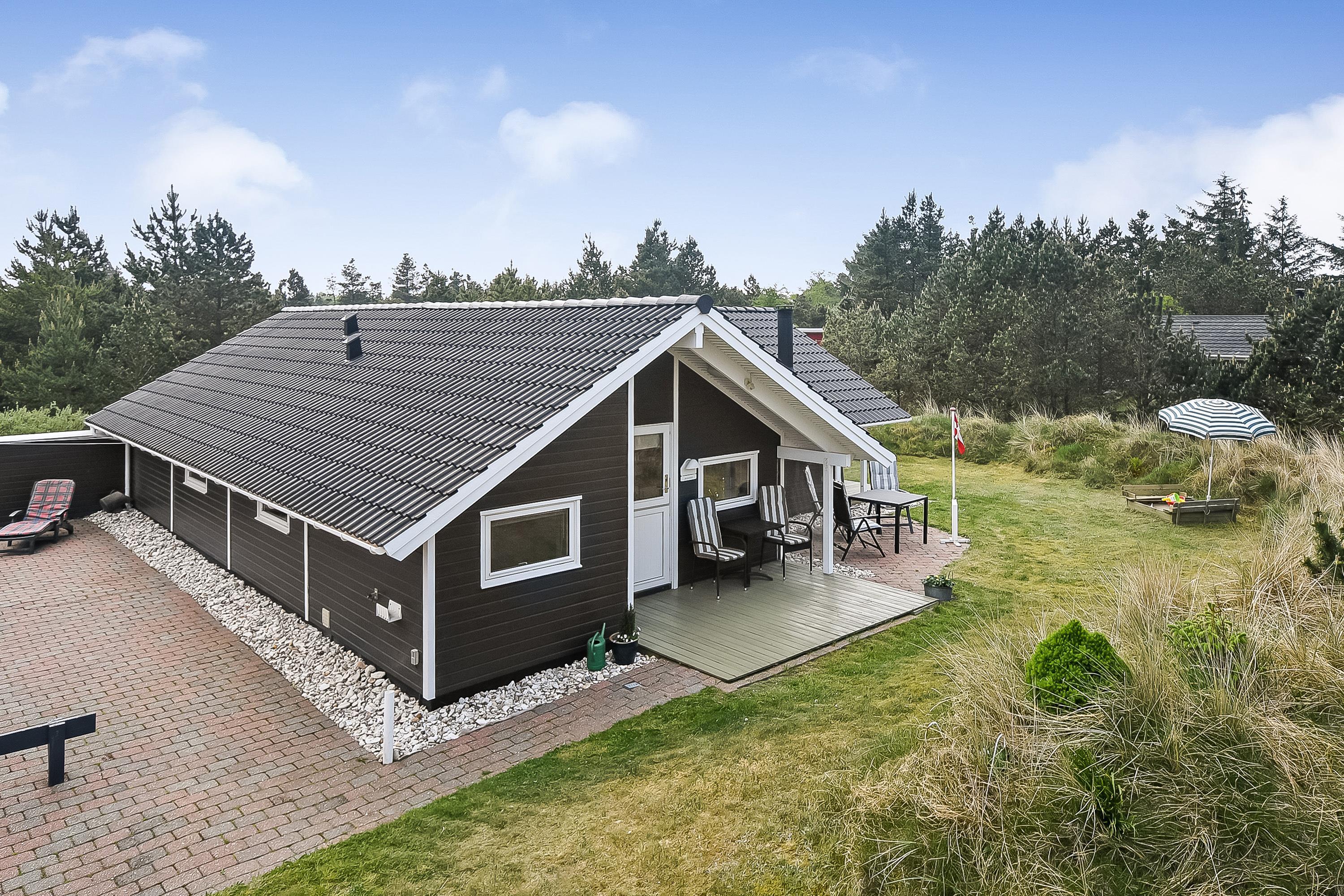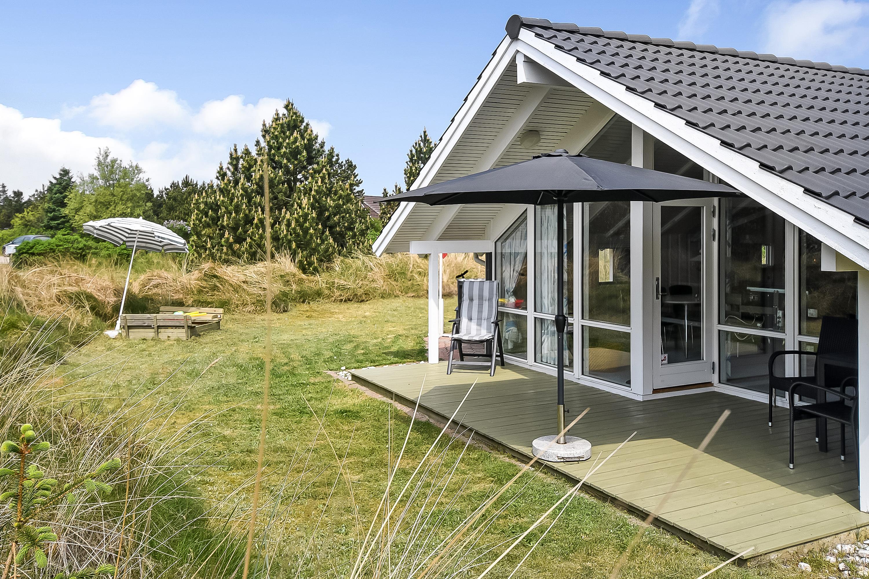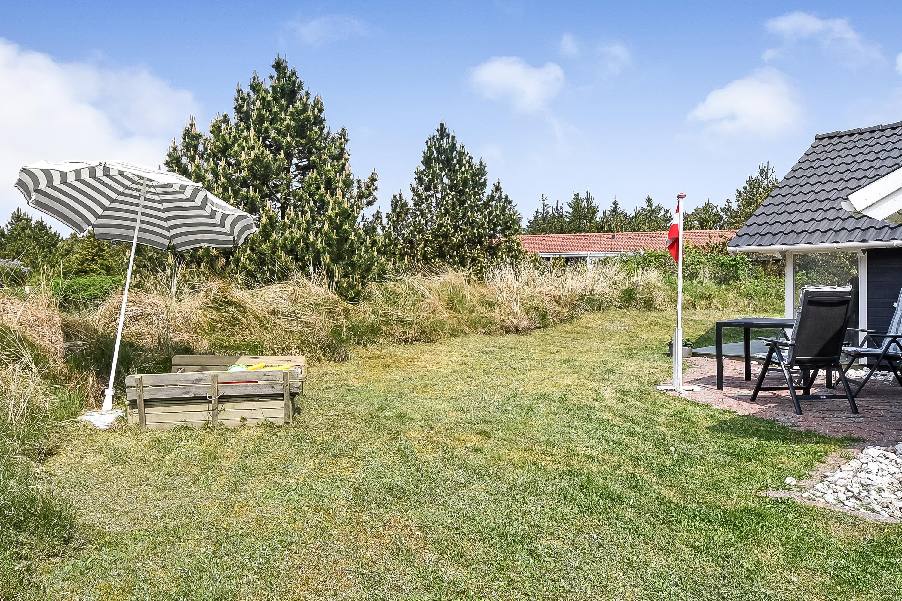 Beliggenheden er skøn og idyllisk, og hele grunden er rammet ind af grønne træer. De naturskønne omgivelser med grøn græsplæne og lyngklædt hede sætter prikken over i'et. Til de små gæster er der sørget for en sandkasse, så de ikke kommer til at kede sig, mens I soler jer på terrassen.