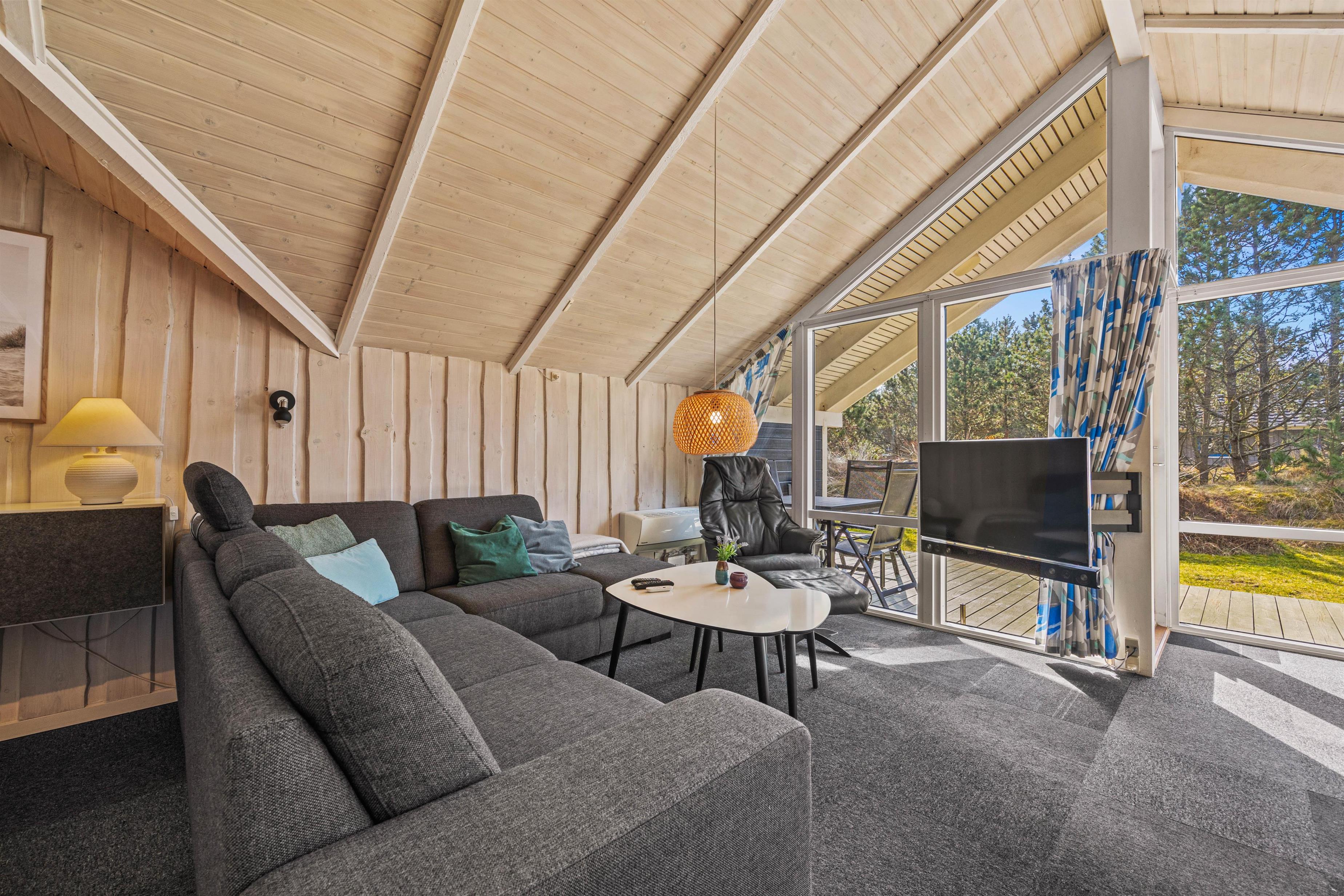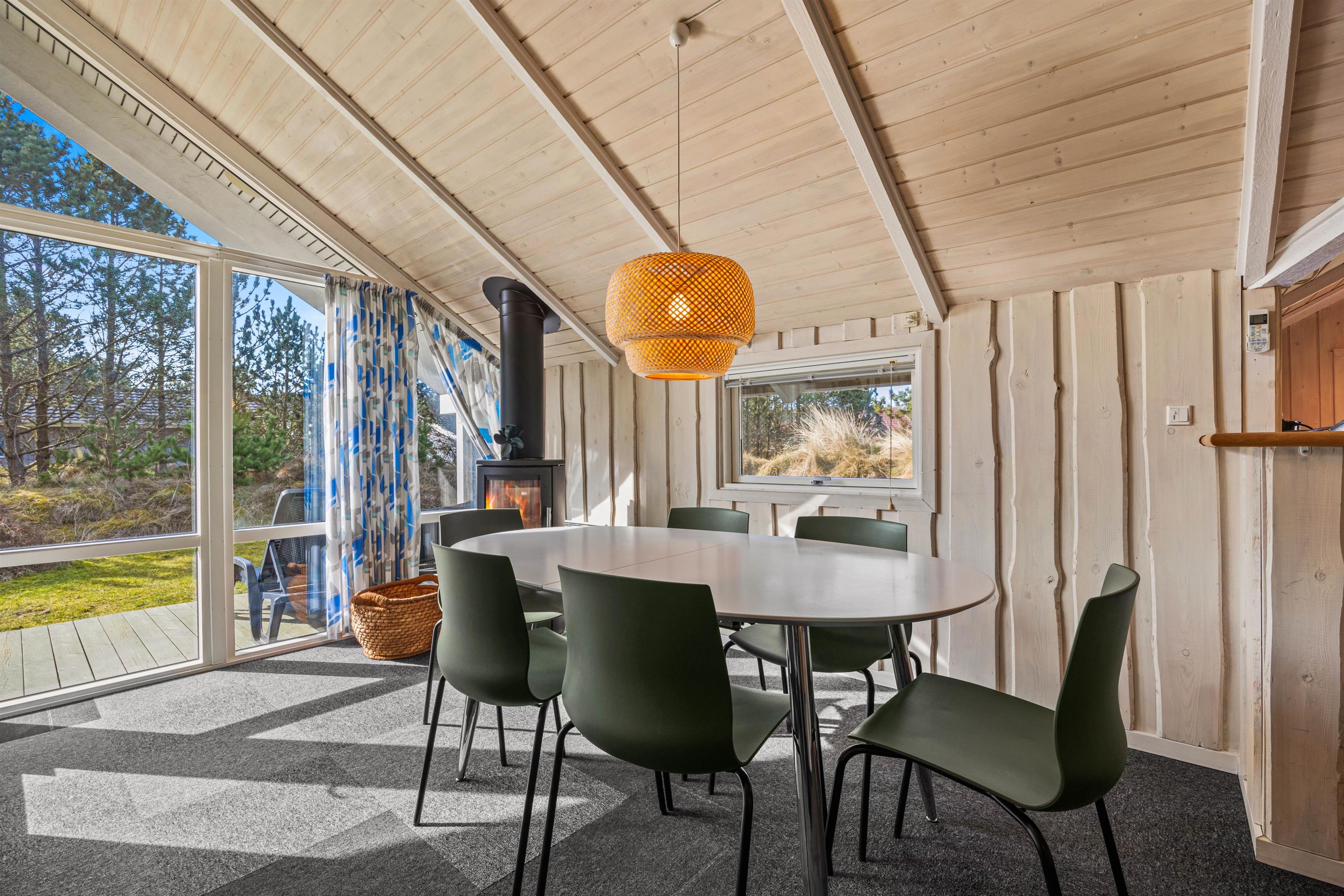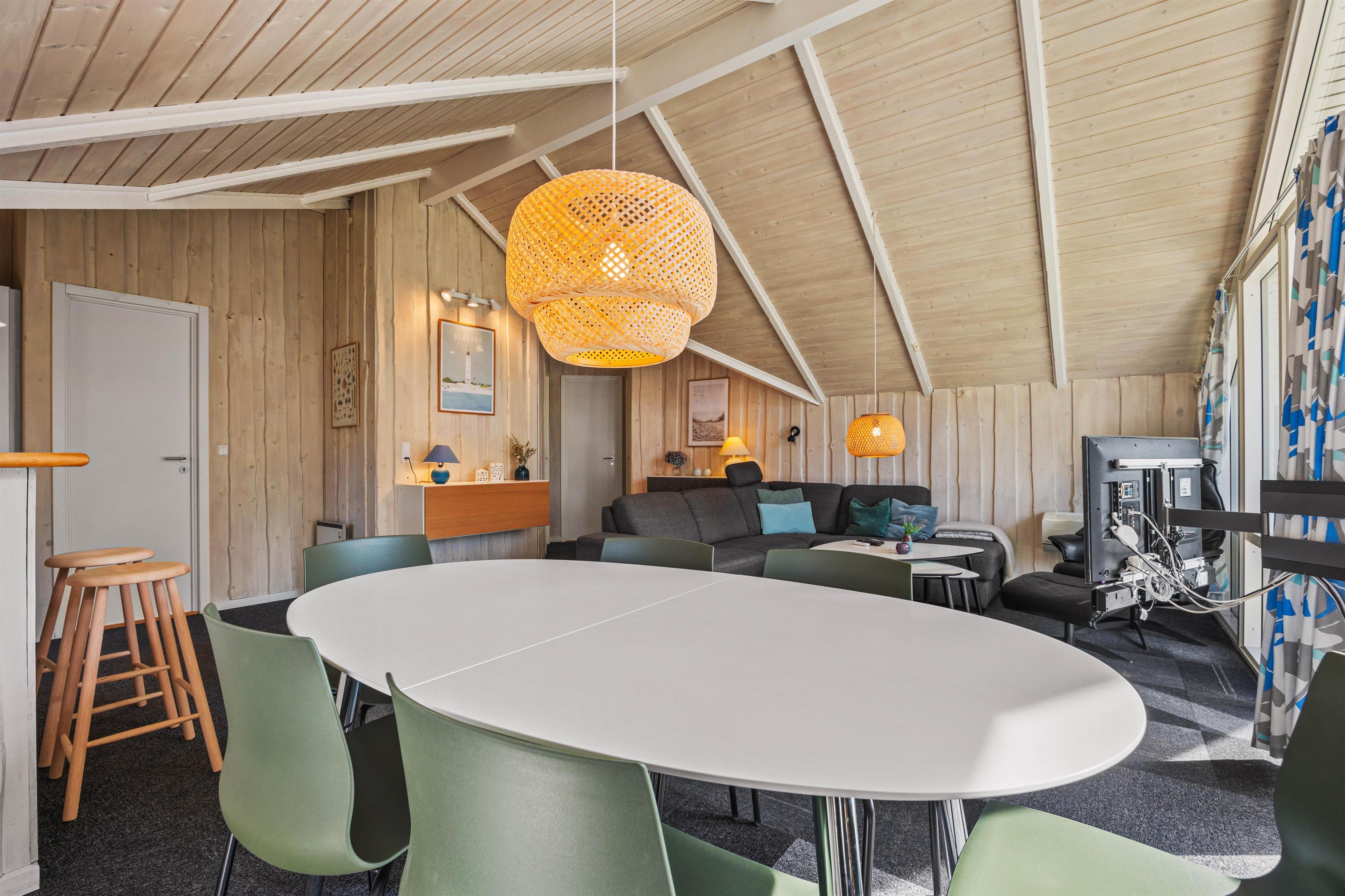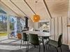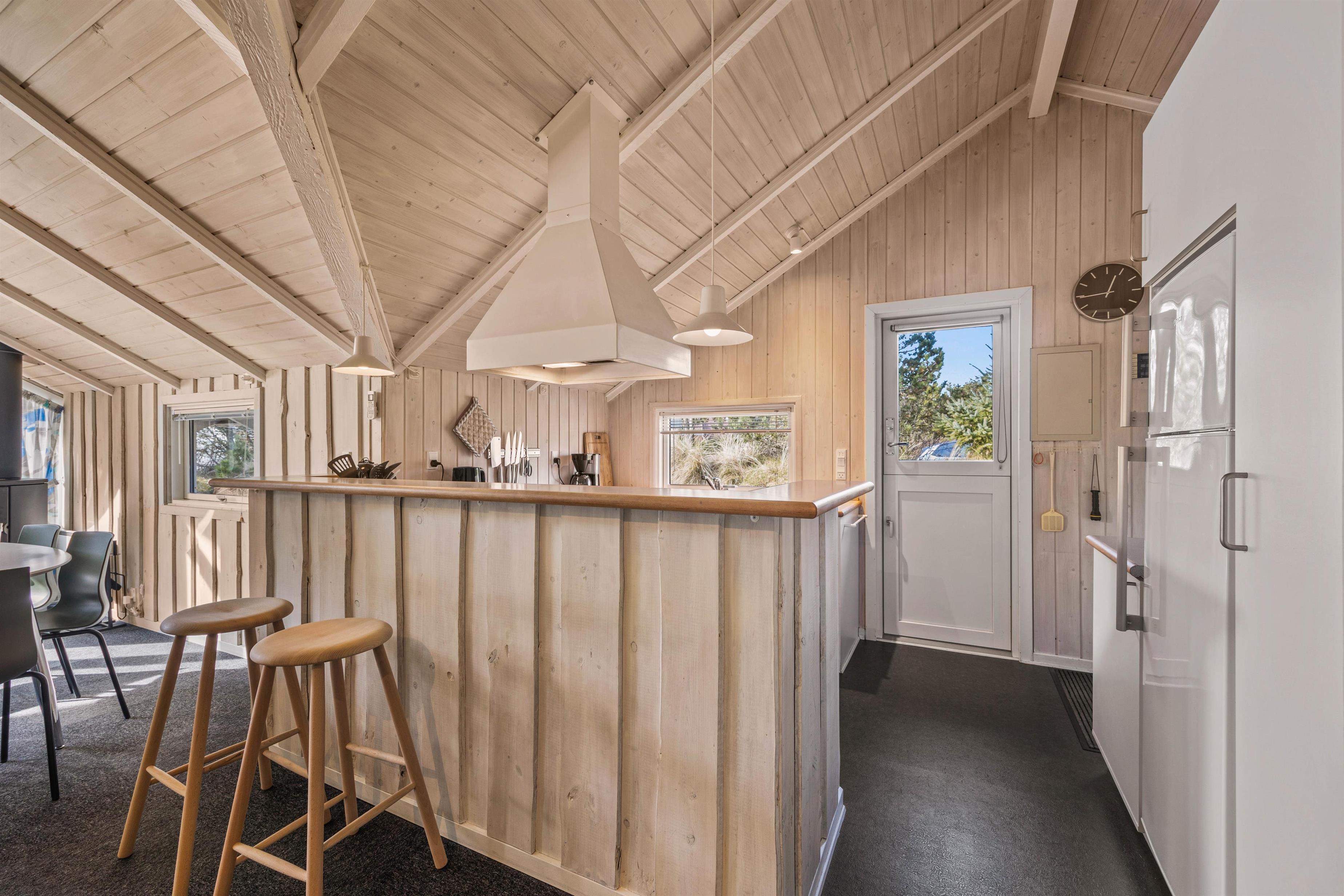 Køkken og stue er slået sammen i opholdsrummet, som er husets hjerte. Her vil der helt sikkert blive skabt masser af nye ferieminder med hyggelige kortspil og sene filmaftener, mens brændeovnen knitrer i baggrunden.
