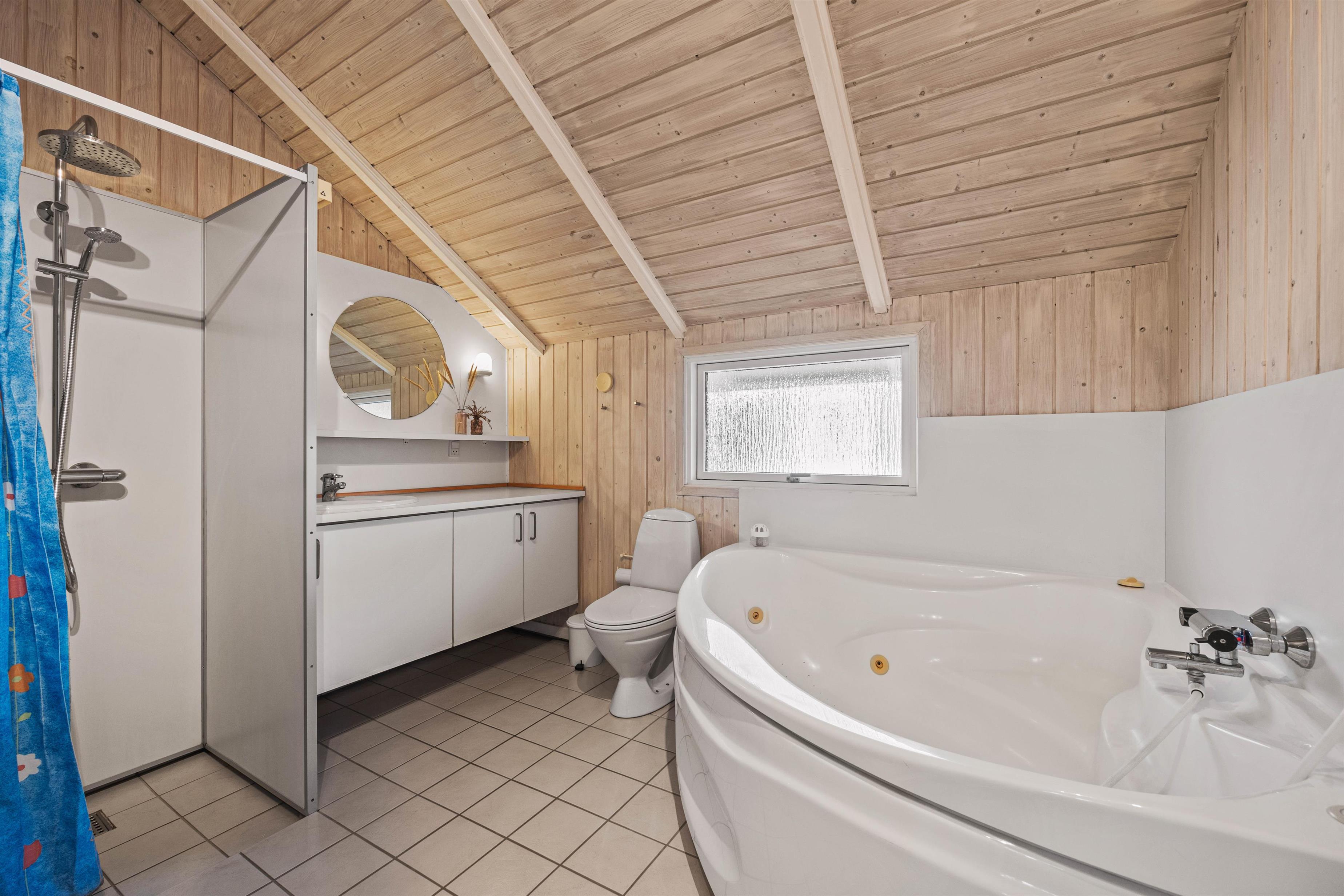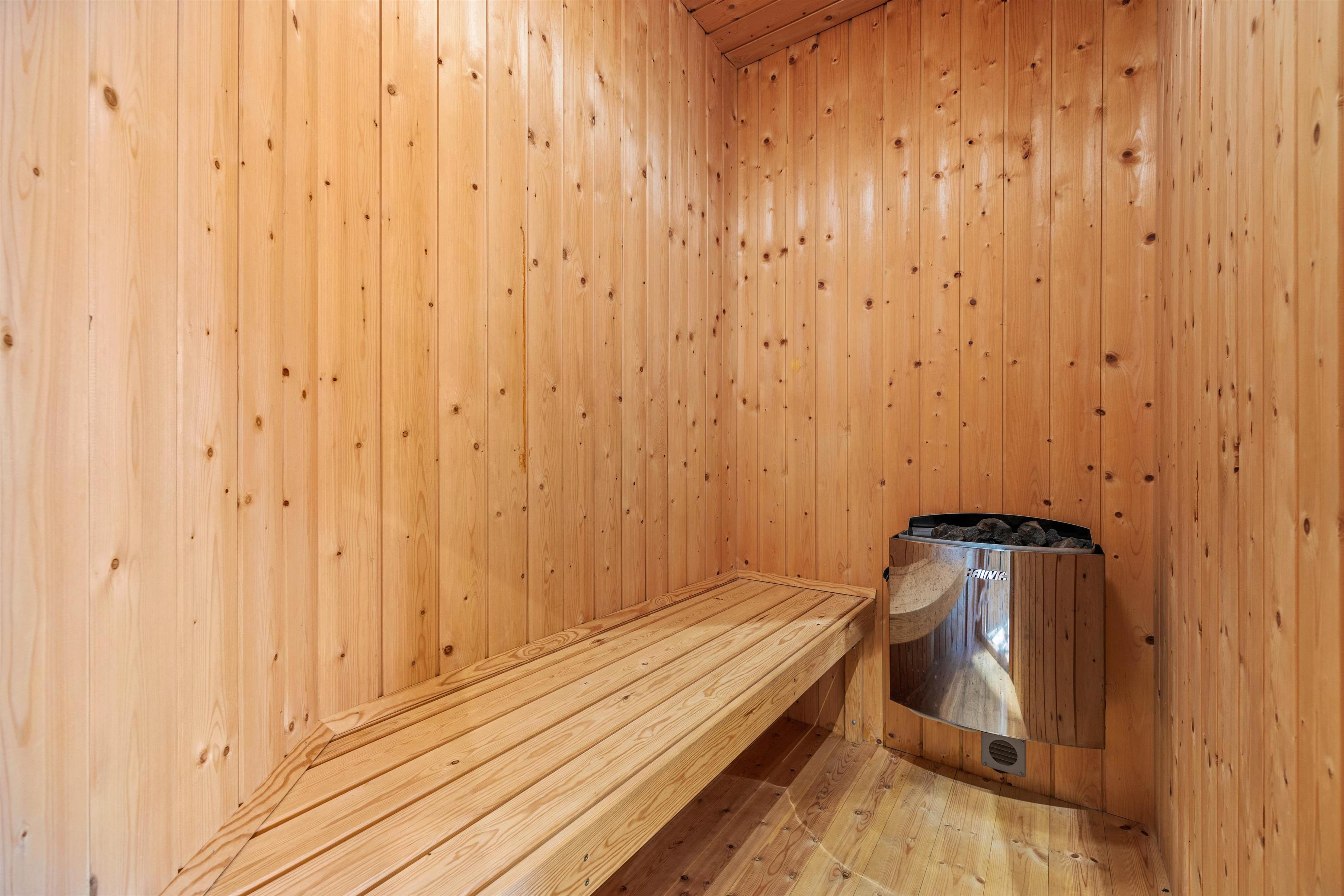 På badeværelset har I adgang til jeres egen lille wellnessafdeling med sauna og spabad, hvor I kan tanke nye kræfter og slappe af i varmen. Også de praktiske faciliteter er i top, og med både opvaskemaskine, vaskemaskine, tørretumbler og en hurtig internetforbindelse bliver ferien så ukompliceret som muligt.