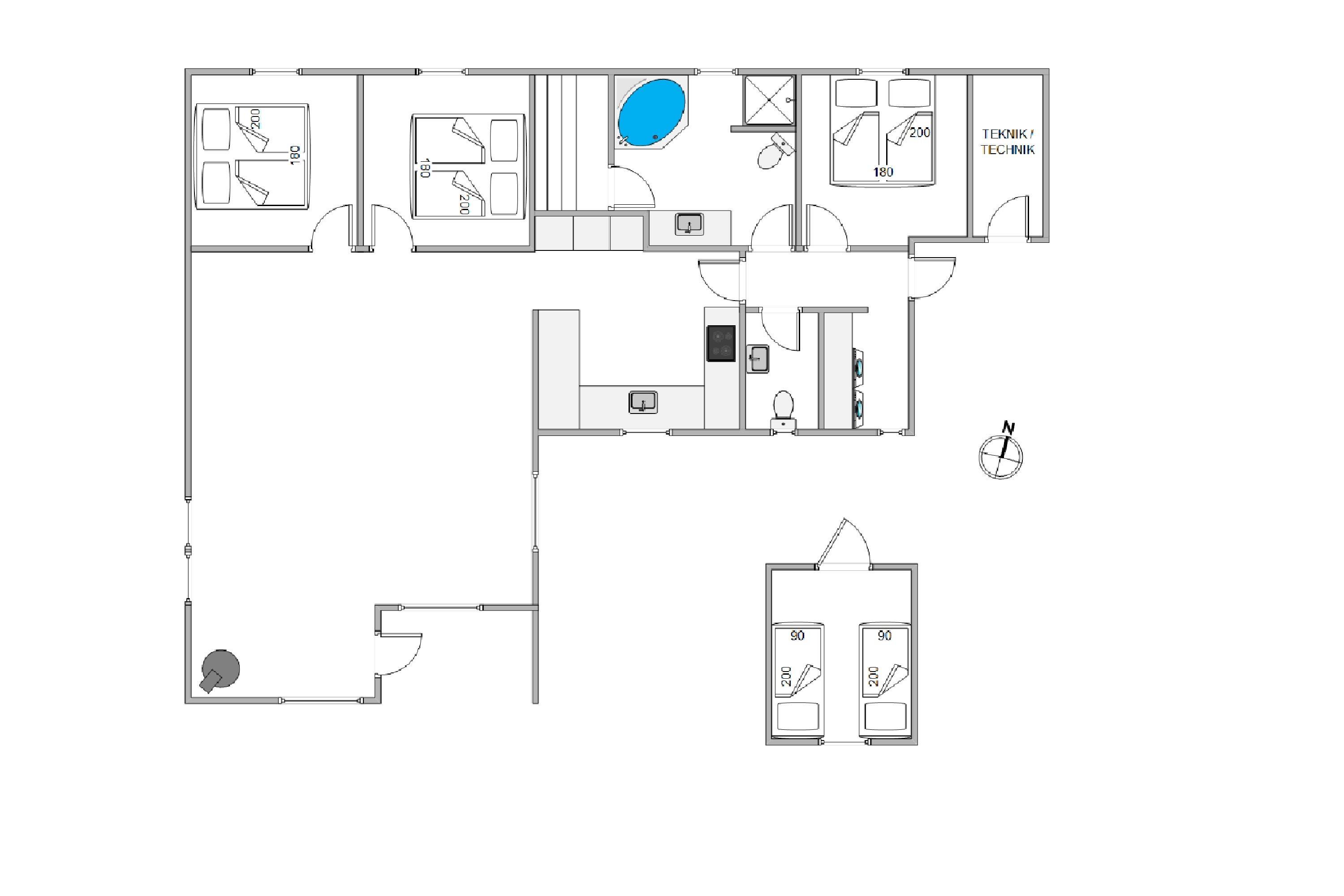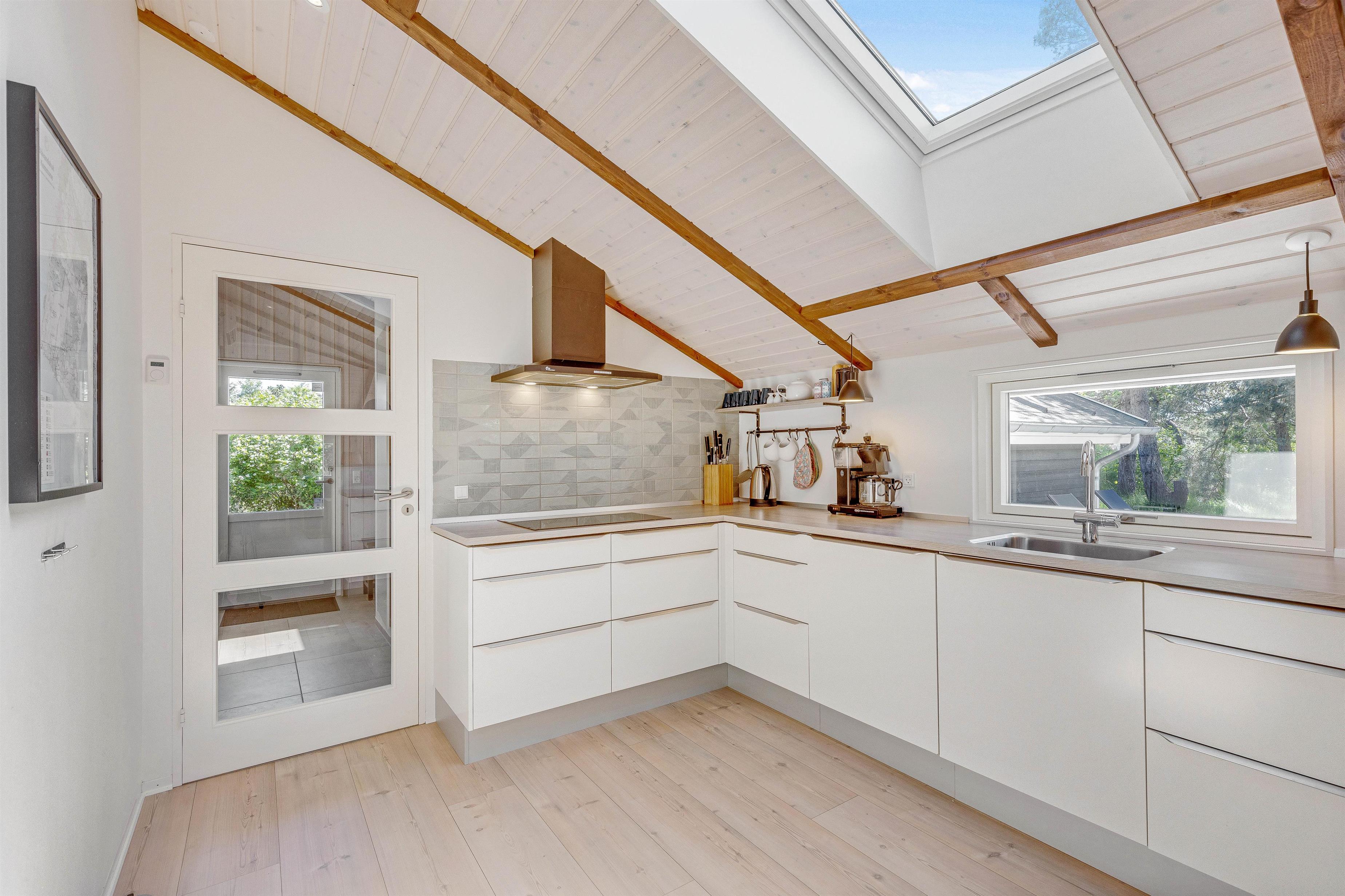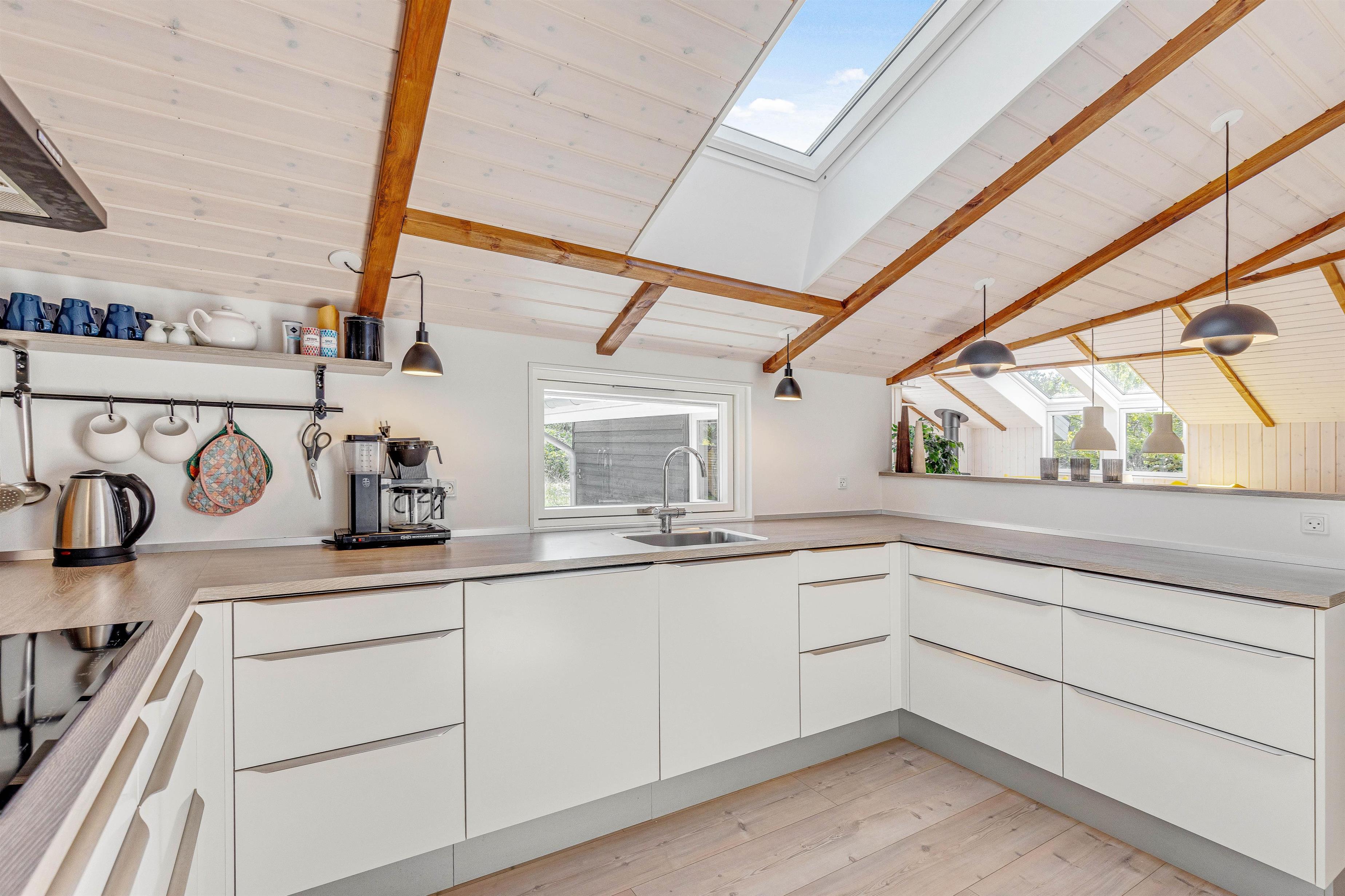 I sommerhuset er der 3 soveværelser med dobbeltsenge og i annekseter der 2 enkeltsenge – hvor I kan få jer en god nats søvn, så I er veludhvilede til de spændende ting, jeres feriedage byder på. I køkkenet har I alt, I har brug for til at kokkerere lækre måltider på ferien, og opvaskemaskinen sørger naturligvis for opvasken.