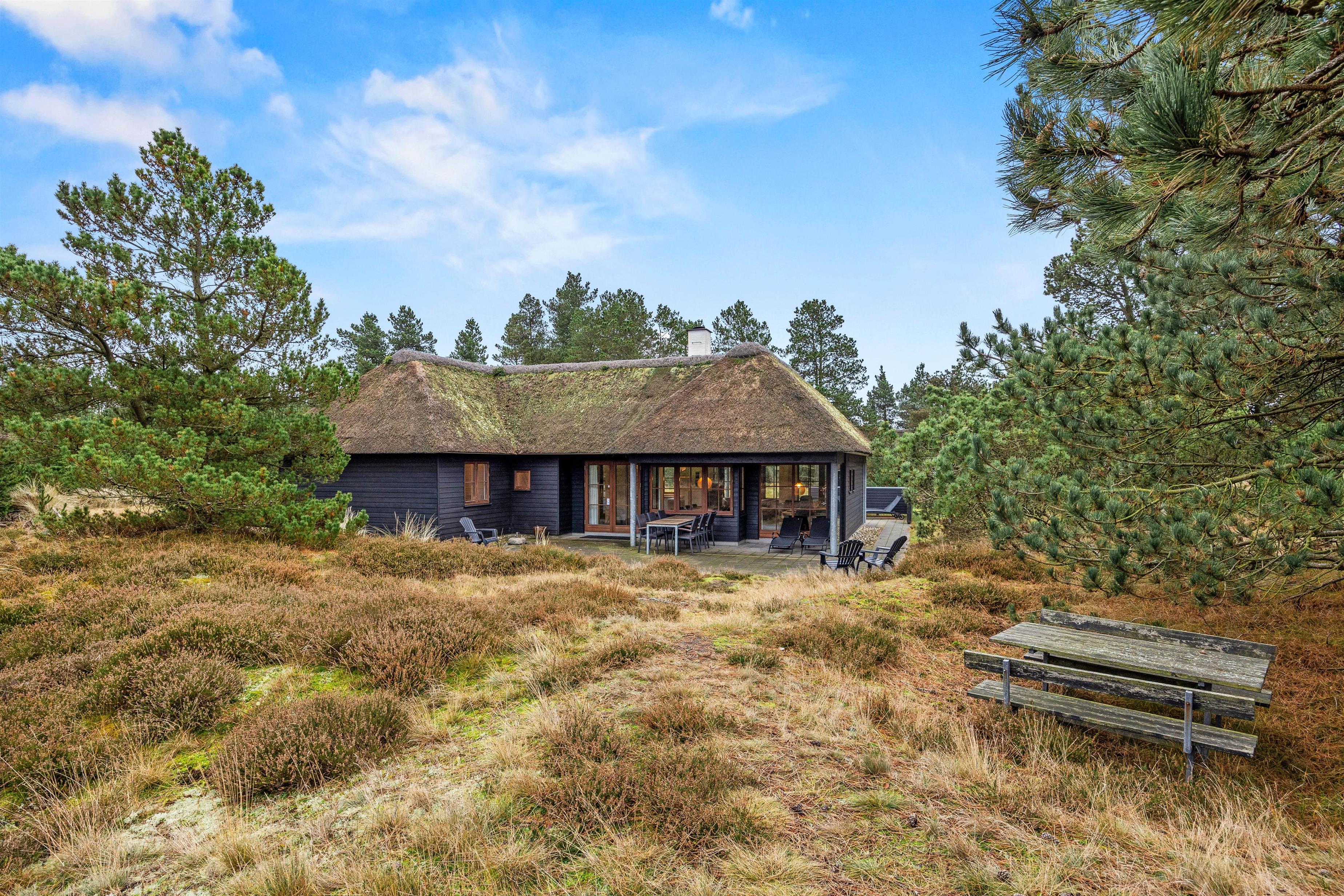 Nyd jeres velfortjente ferie i det maleriske Blåvand på adressen Sandageren 12. Dette flotte sommerhus med stråtag i Blåvand har plads til 8 personer og tilbyder jer og jeres familie eller venner et godt fristed med masser af komfort.