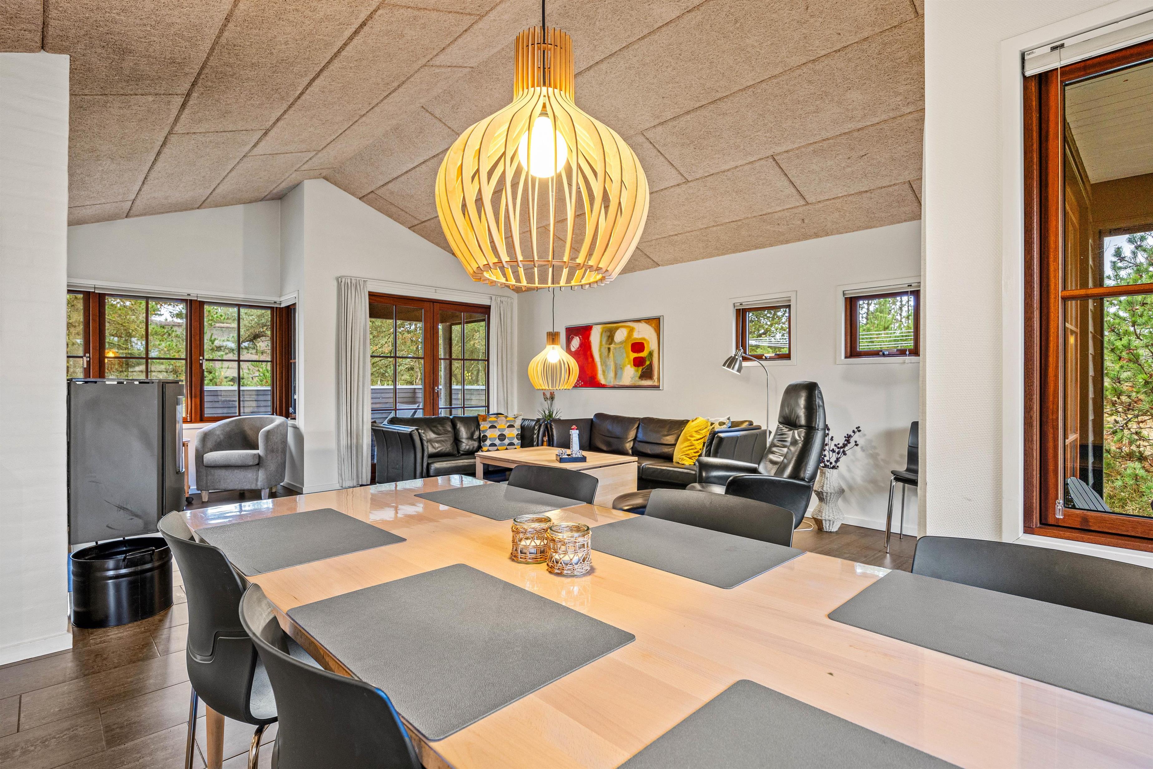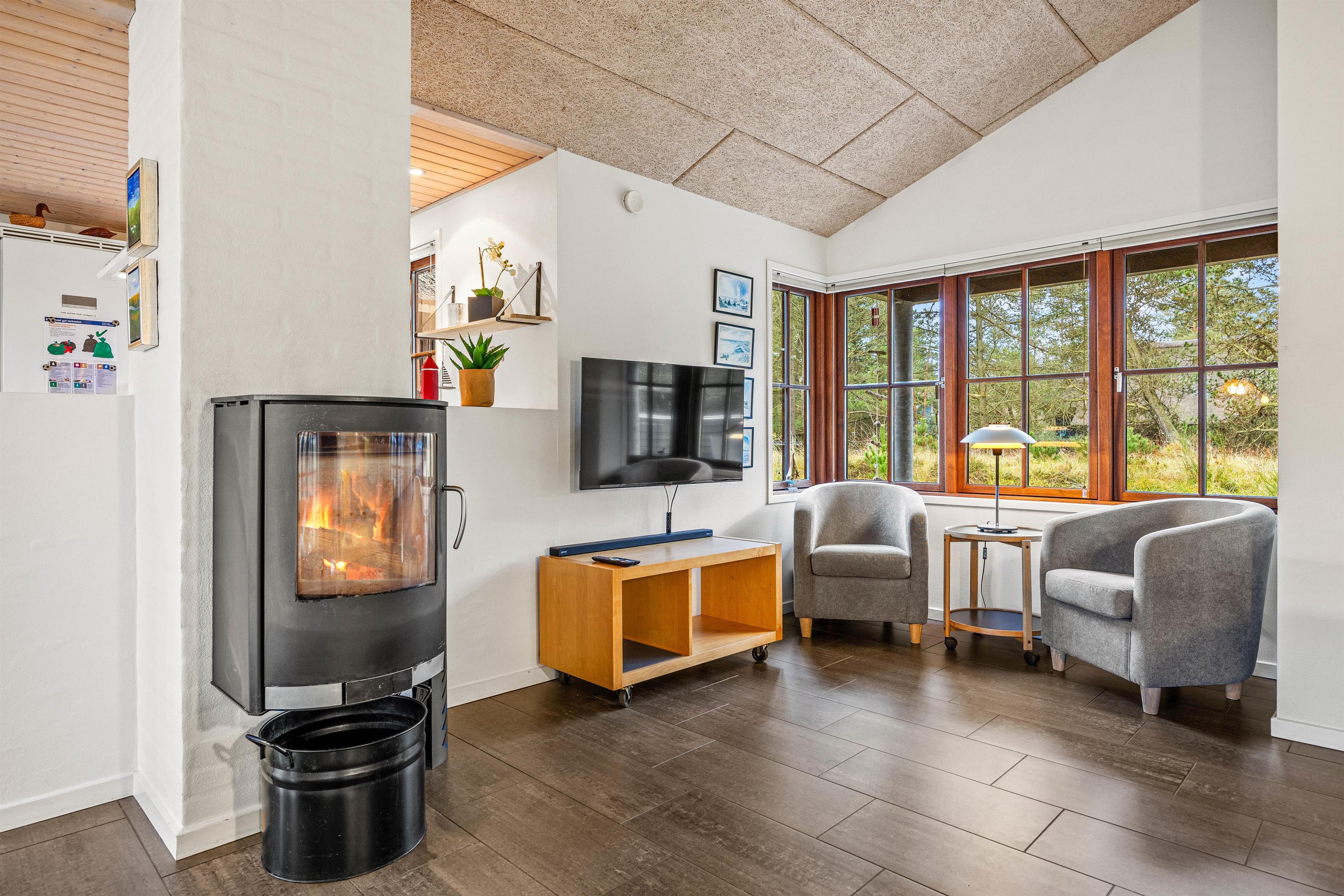 På et større boligareal på 124 m2 får I her et idéelt hjem til jeres ferie. Huset har 4 hyggelige soveværelser, der alle er udstyret med en dobbeltseng, og det rummelige, åbne opholdsområde indbyder til afslappede aftener med den hyggelige brændeovn.