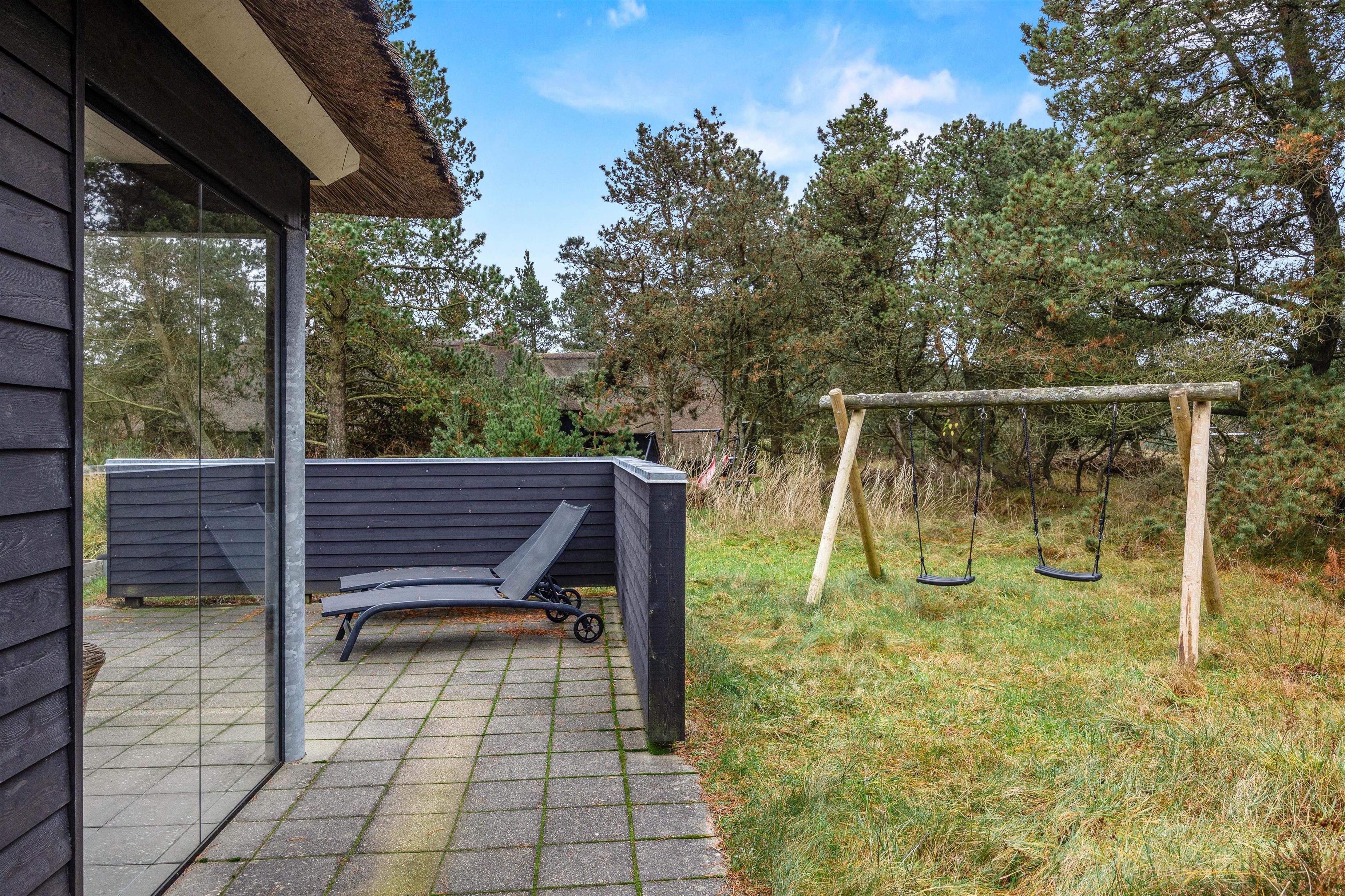 De små vil have det sjovt på den 11282 m2 store grund med gynge og sandkasse, mens I kan slappe af på den åbne eller overdækkede terrasse. Med havemøbler og grill står intet i vejen for afslappende aftener udendørs. Supplér med et godt glas vin eller en god, lokal øl...