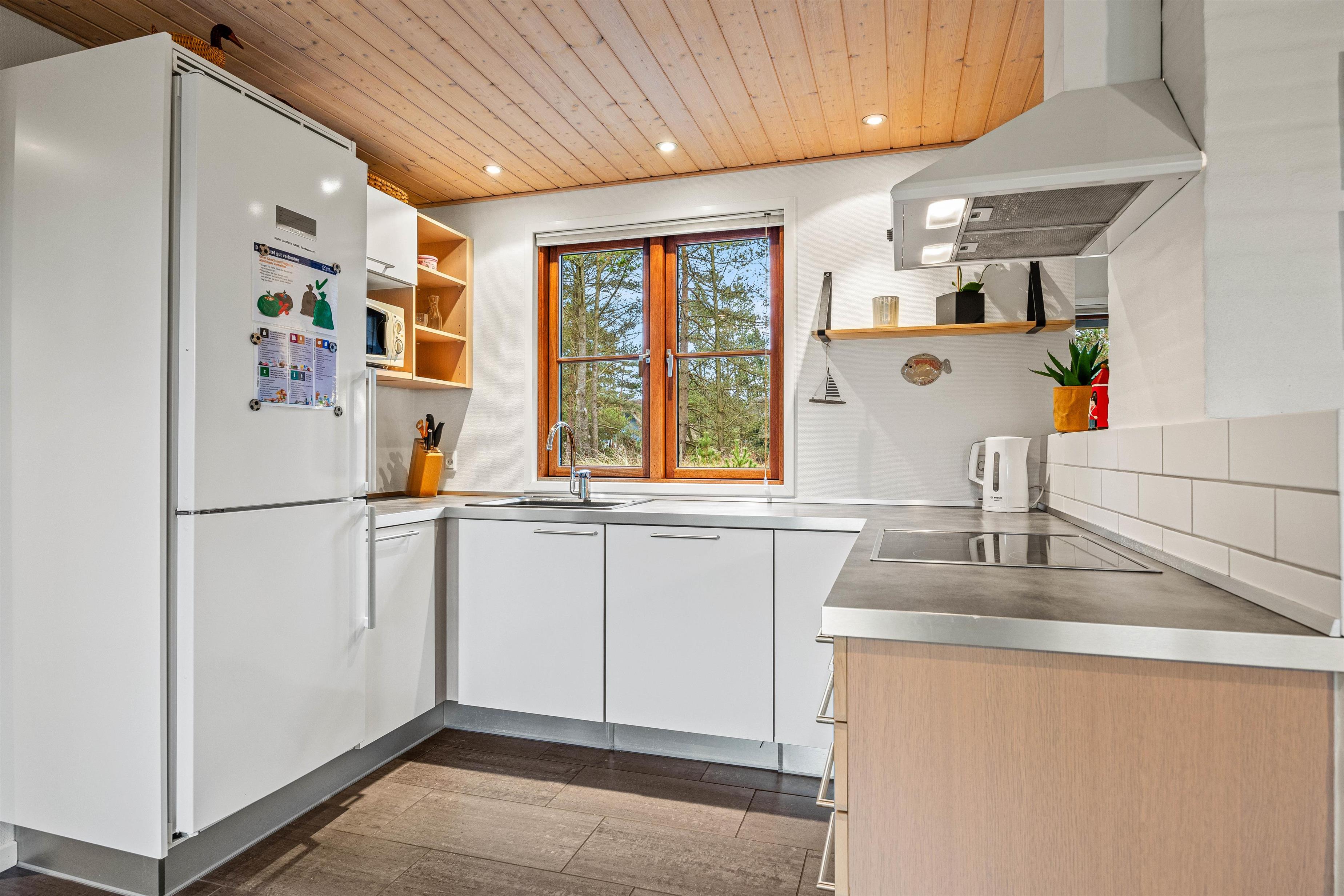 Et lyst køkken med opvaskemaskine, mikroovn og en 90 liters fryser gør det nemt at tilberede måltider sammen, hvorefter I kan hygge jer i sofaerne. Nyd den velgørende varme i saunaen, måske efter en frisk gåtur på stranden, og bliv godt masseret igennem og blødt op i spabadet efter en aktiv dag i naturen, og glem hverdagen.