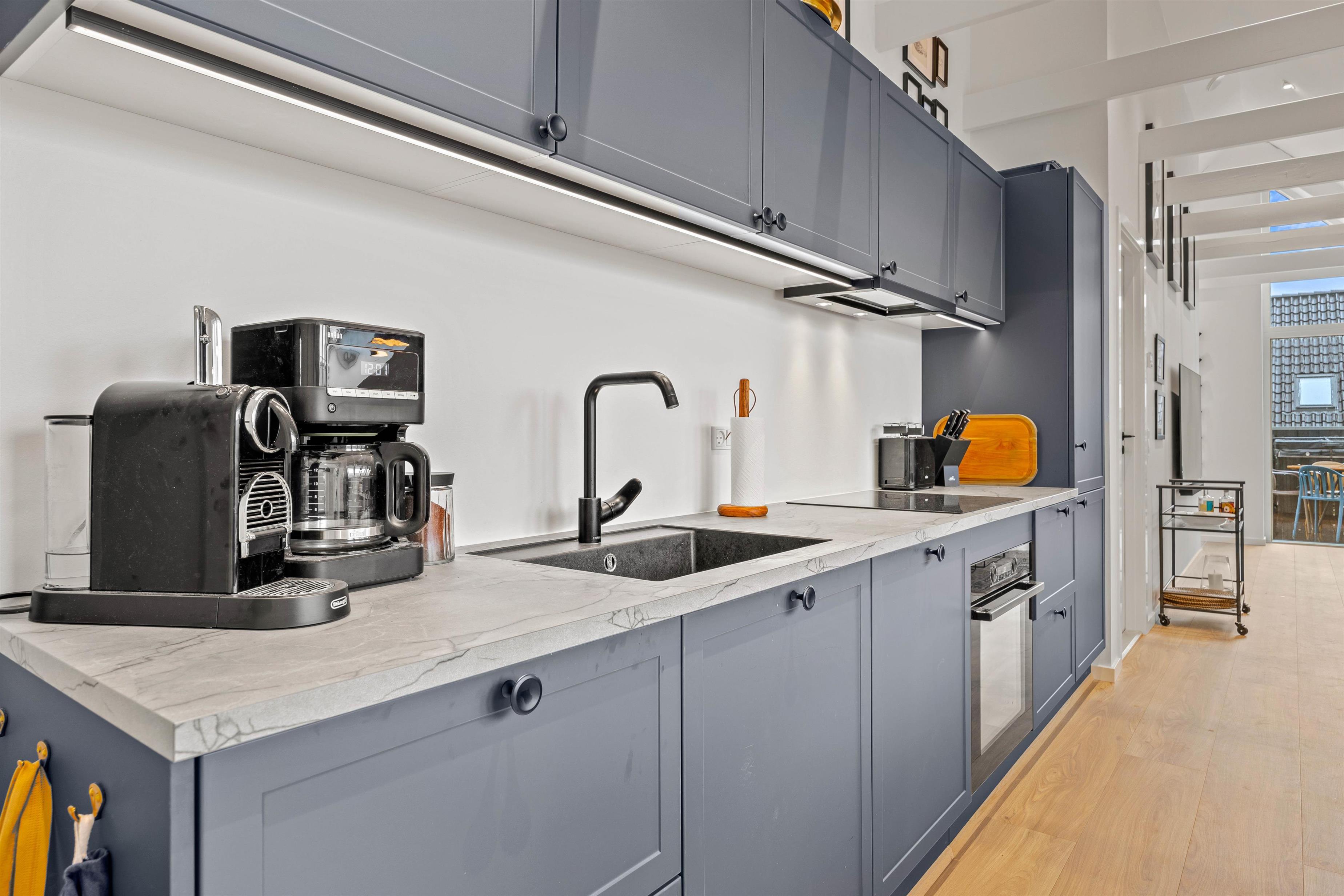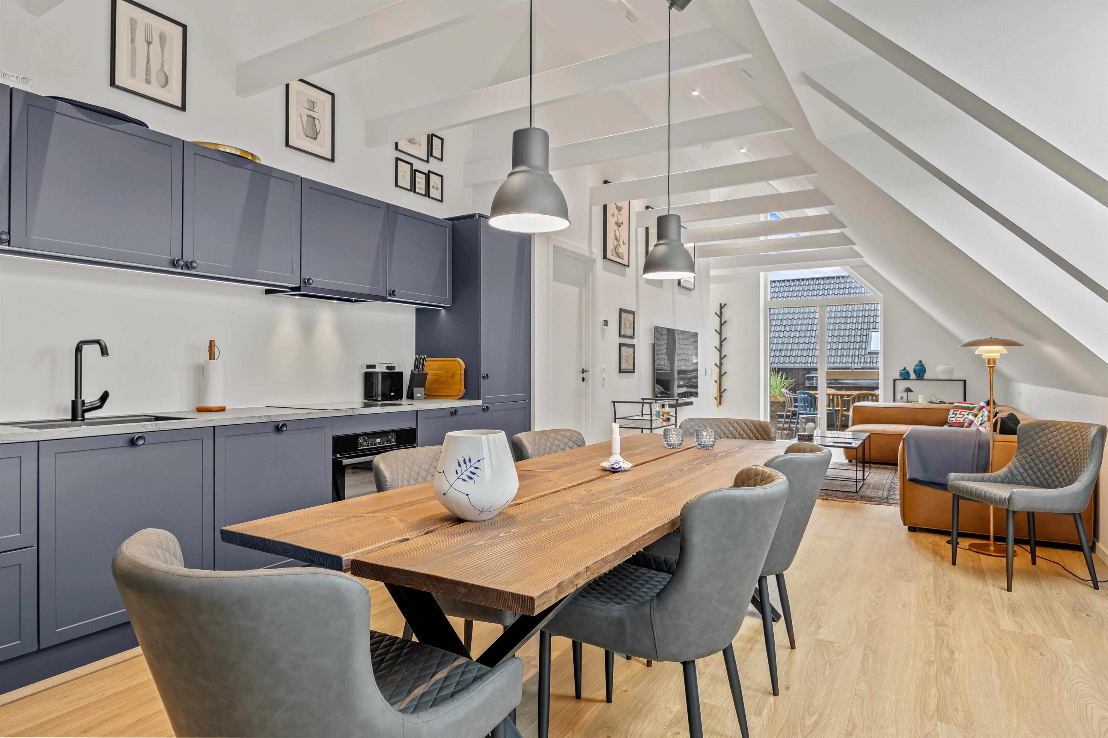 Det moderne og flotte køkken er veludstyret med alt, hvad I har brug for. Her kan I lave alverdens madretter og nyde dem sammen rundt om spisebordet. Om aftenen kan I fortsætte hyggen med kort- eller brætspil rundt om spisebordet, eller slå jer ned i den behagelige sofa og se en sjov familiefilm sammen.