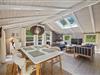 Der er dømt ægte sommerhusstemning på Hedetoftvej 38. I vil med det samme føle jer hjemme i den hyggelige indretning, hvor lyse og varme naturmaterialer pryder både overflader og interiør. Der er skabt en rummelig og indbydende atmosfære med loft til kip i samtlige rum og masser af vinduer, der inviterer solens lys og den grønne natur helt med indenfor.