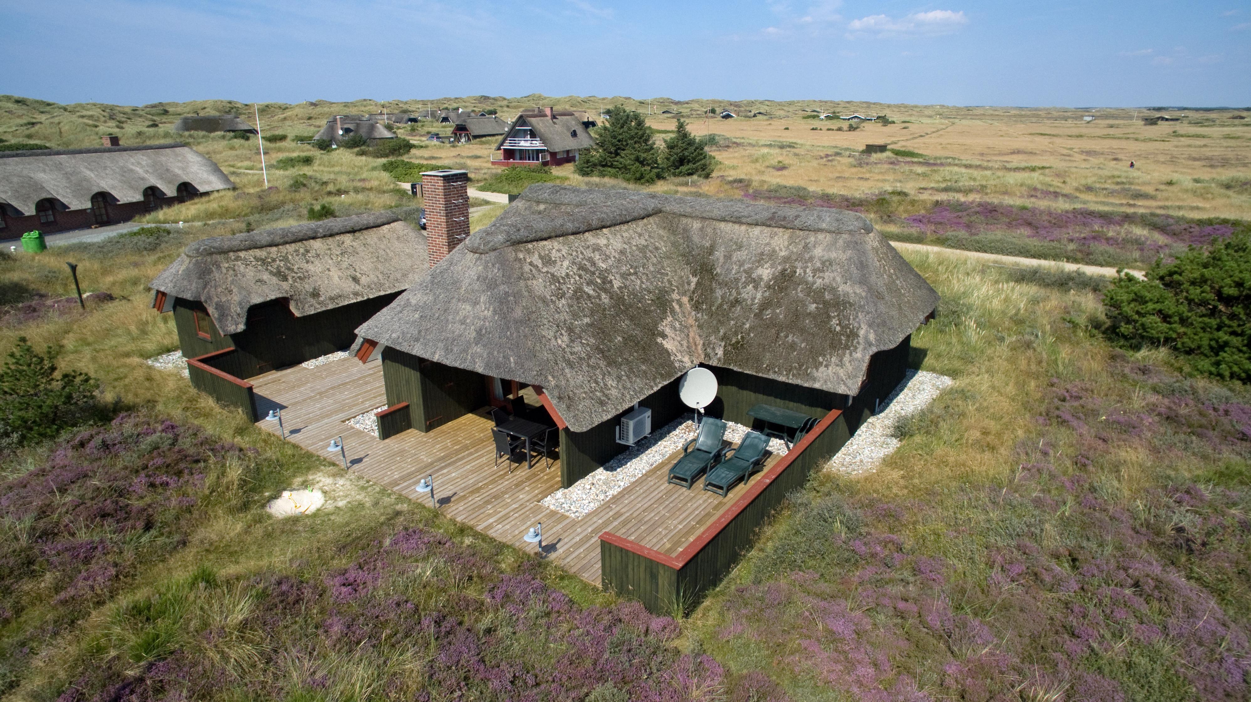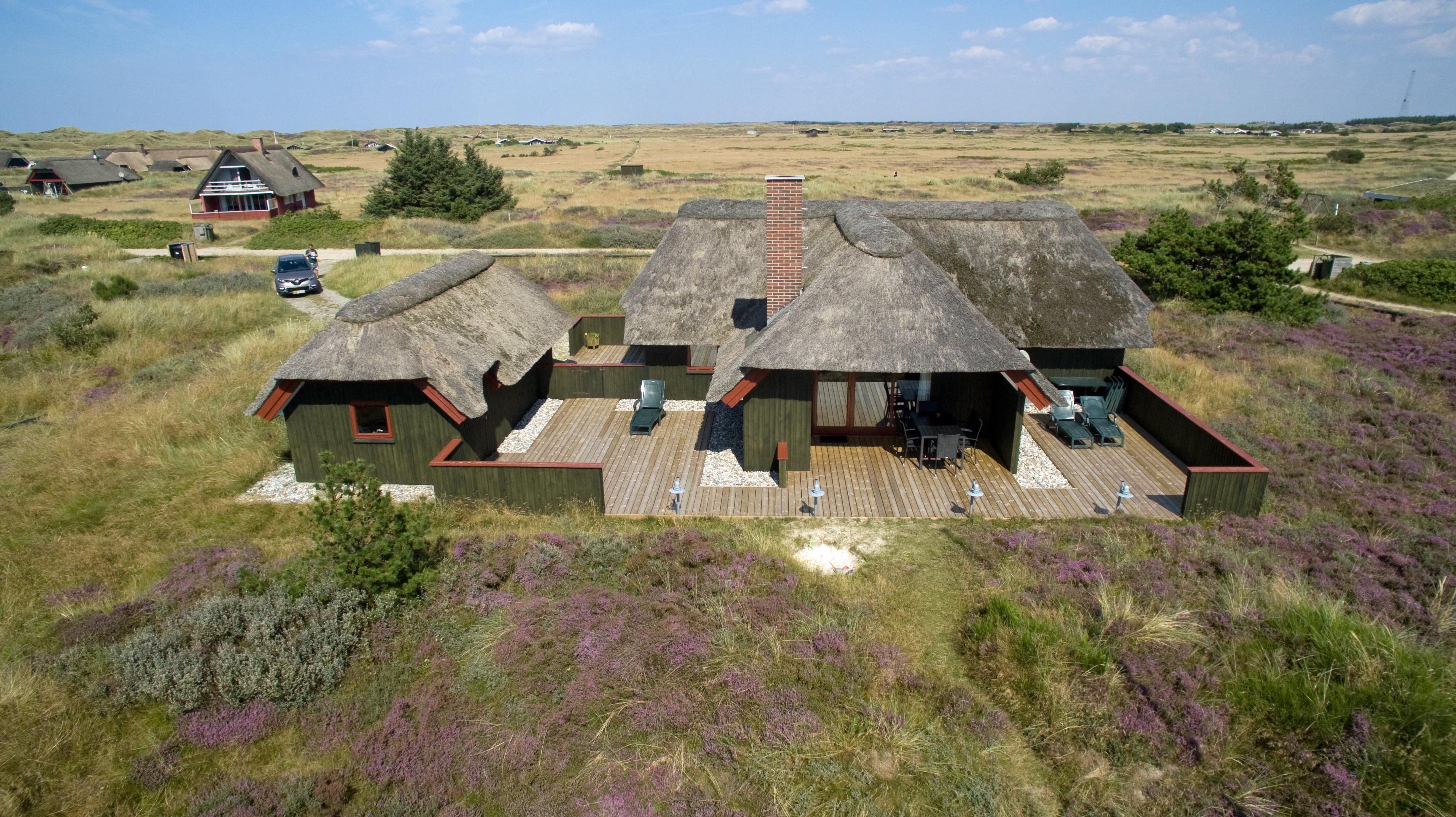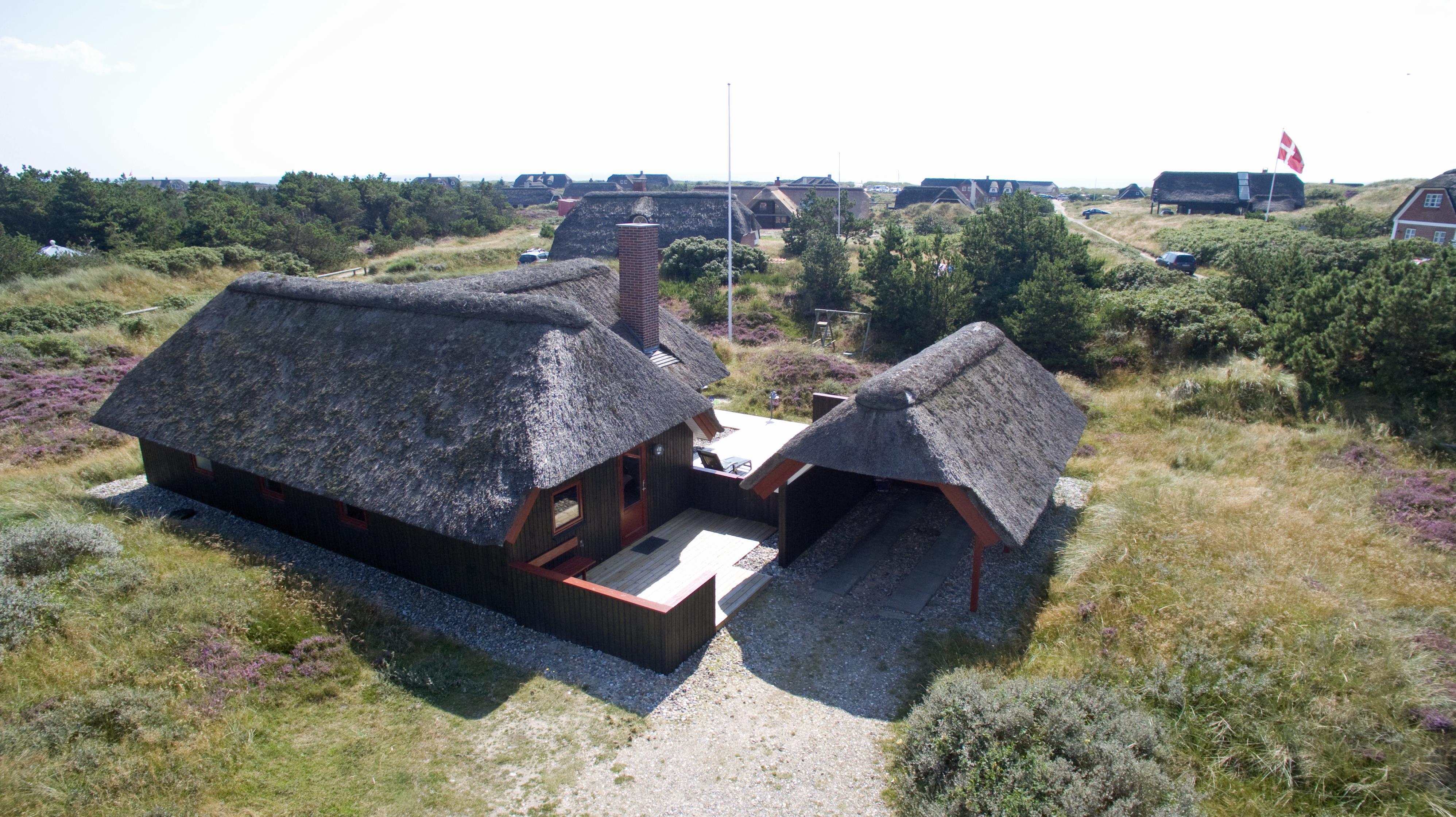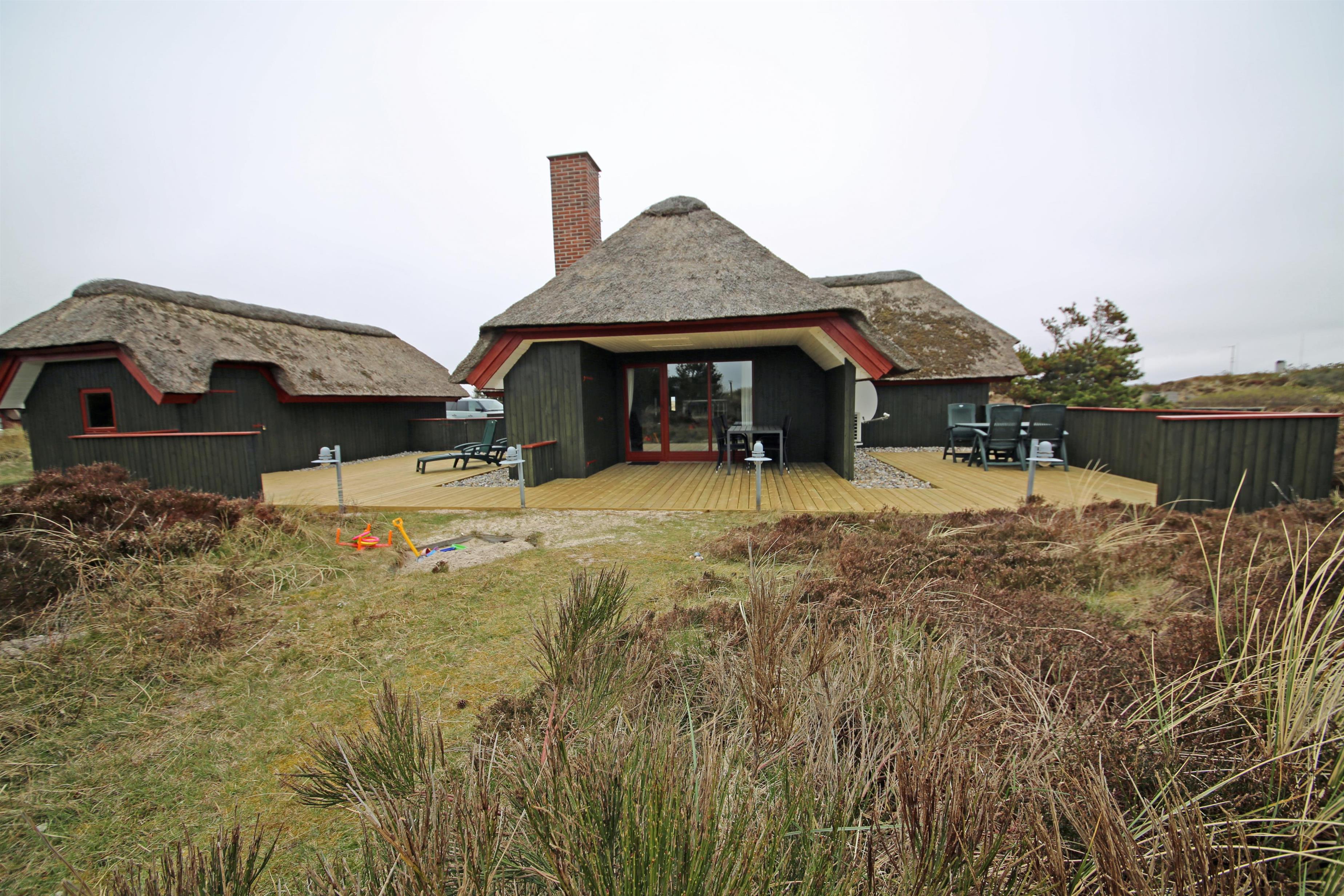 Hyggeligt stråtækt sommerhus til 6 personer, beliggende i klitterne, ca. 250 meter fra stranden. Stue med brændeovn, fjernsyn og parabol (DR programmer). Køkken med opvaskemaskine, mikroovn og køle-/frysekombination. Der er 3 sove rum: DS + 3/4 seng + 3/4 seng. Badeværelse med bruser/wc. Derudover har huset sauna, vaskemaskine og tørretumbler. Trådløs internet. Varmepumpe. Adgang til Oksbøl Badeland 2026. Stor delvis overdækket terrasse. Gynge og sandkasse. Husdyr er ikke tilladt! Husdyr er ikke tilladt! Byggeår 1986.