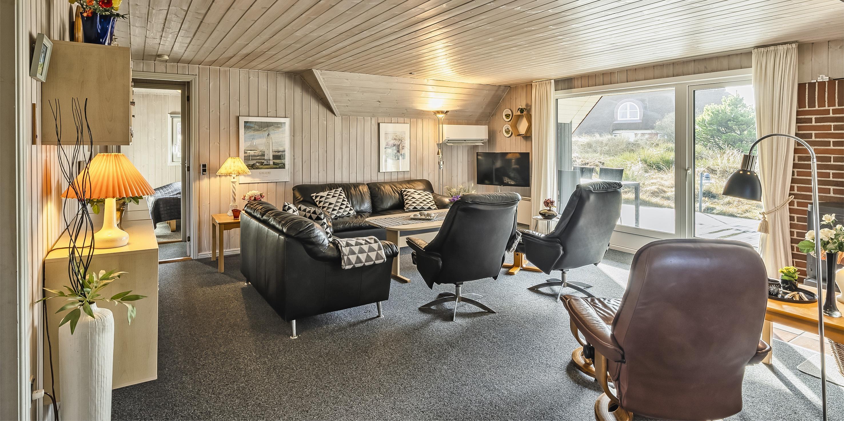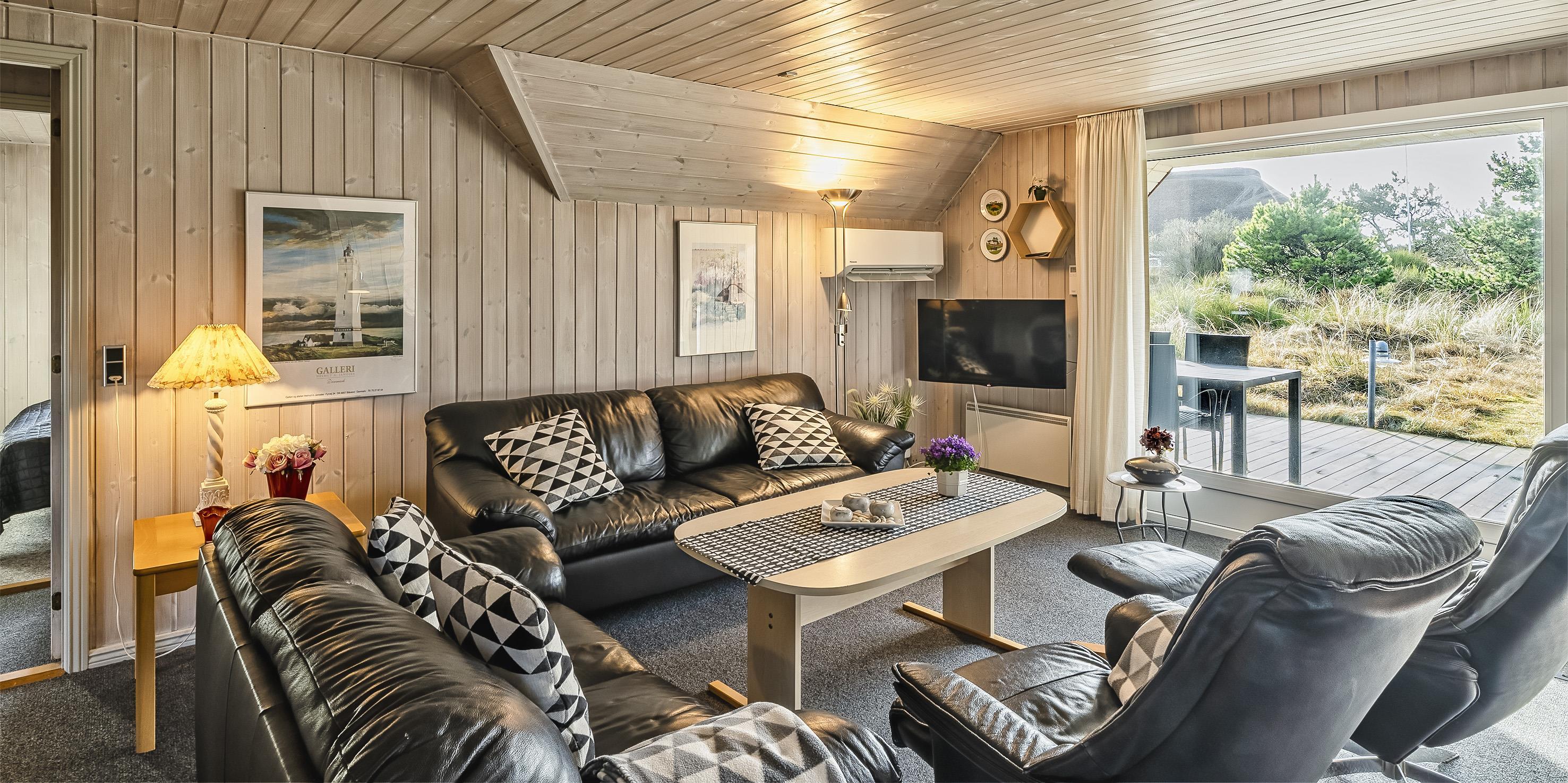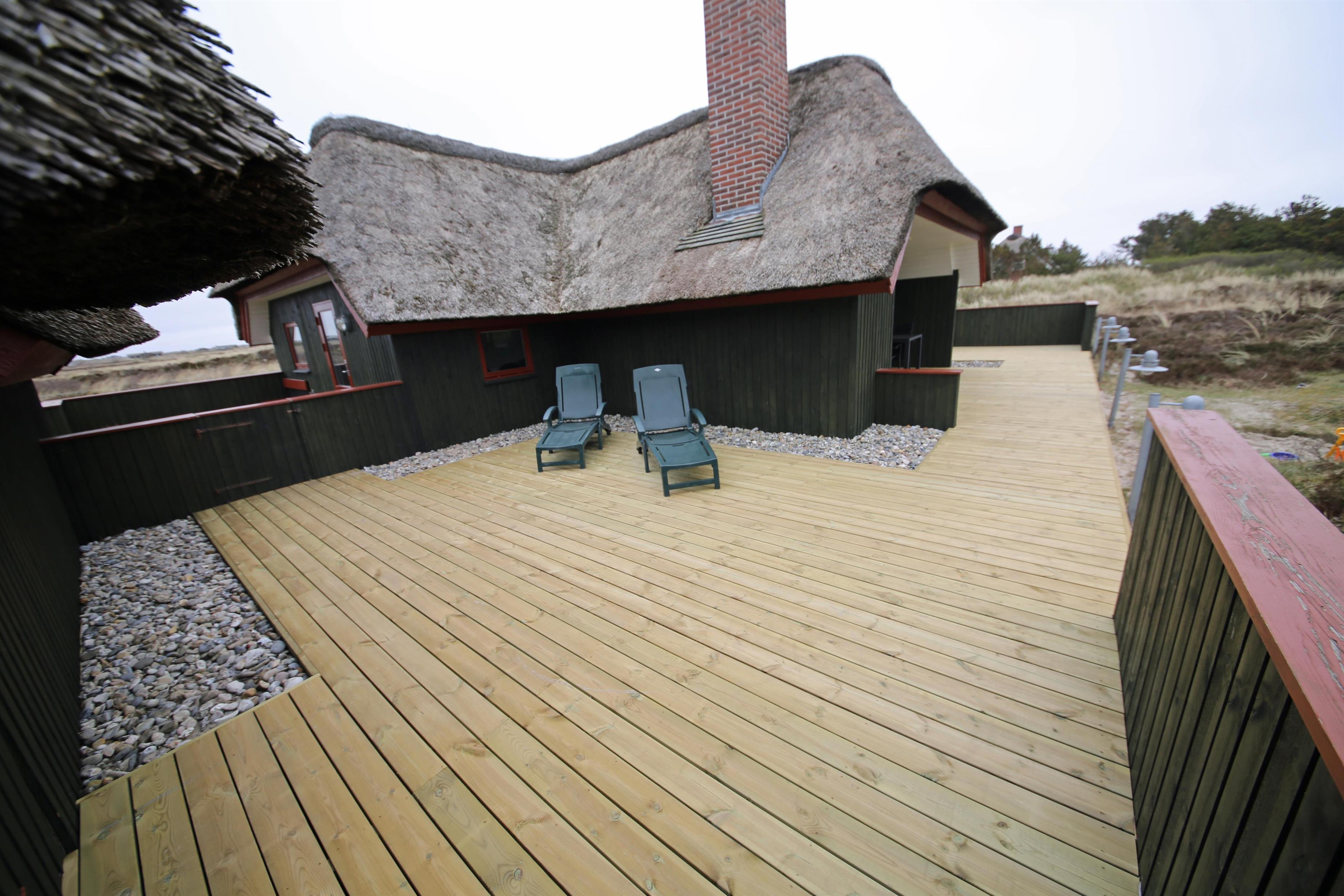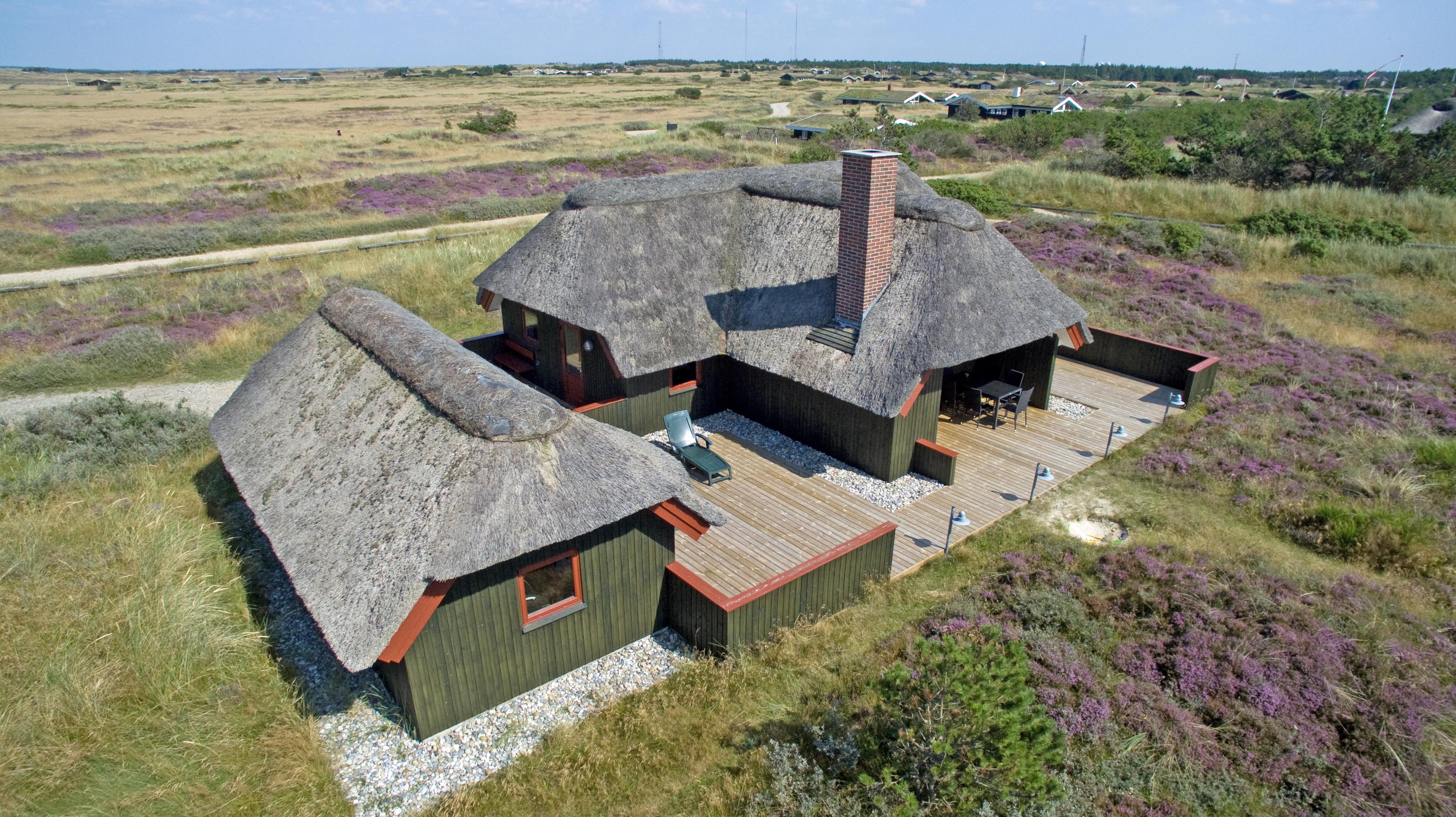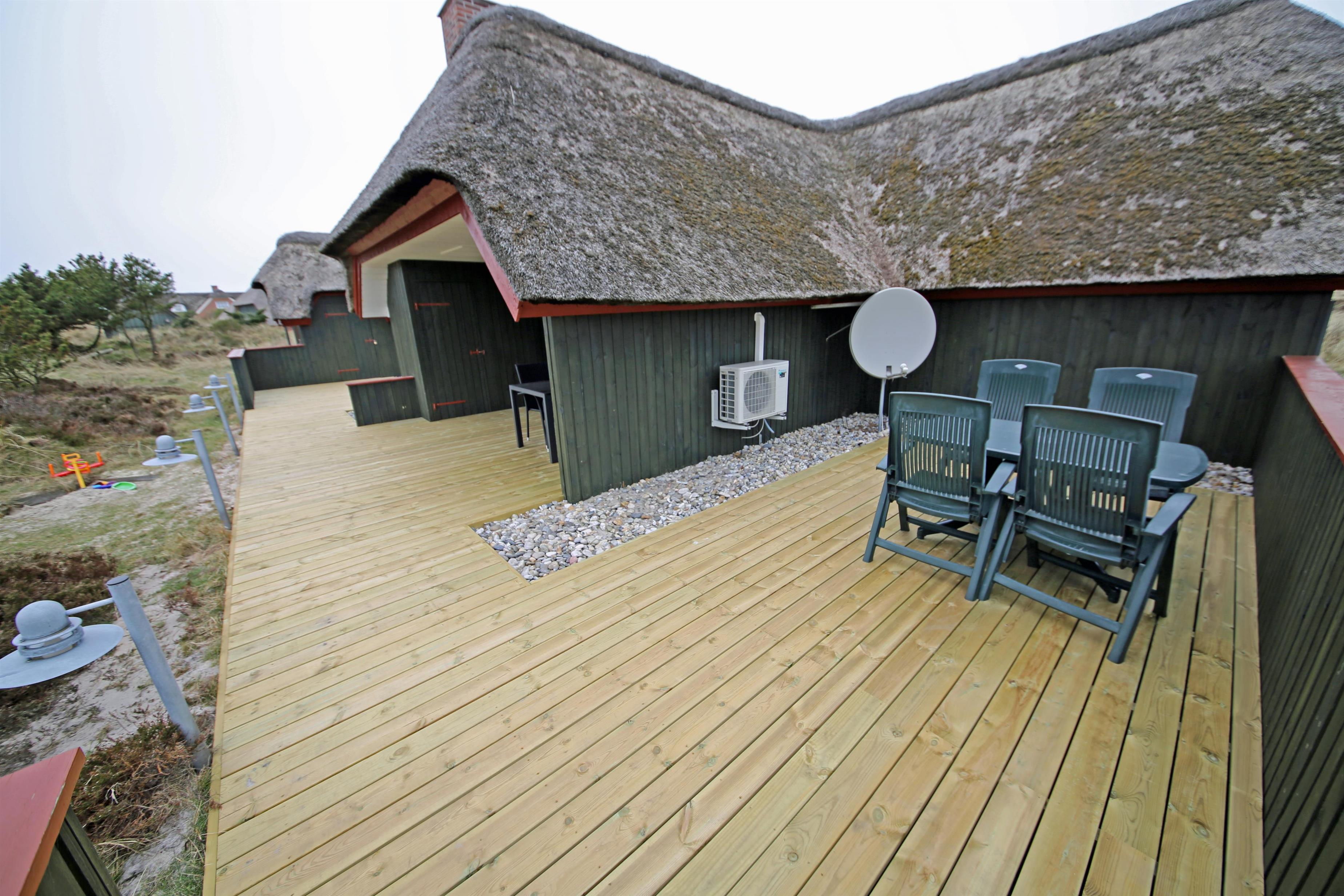 Hyggeligt stråtækt sommerhus til 6 personer, beliggende i klitterne, ca. 250 meter fra stranden. Stue med brændeovn, fjernsyn og parabol (DR programmer). Køkken med opvaskemaskine, mikroovn og køle-/frysekombination. Der er 3 sove rum: DS + 3/4 seng + 3/4 seng. Badeværelse med bruser/wc. Derudover har huset sauna, vaskemaskine og tørretumbler. Trådløs internet. Varmepumpe. Adgang til Oksbøl Badeland 2026. Stor delvis overdækket terrasse. Gynge og sandkasse. Husdyr er ikke tilladt! Husdyr er ikke tilladt! Byggeår 1986.