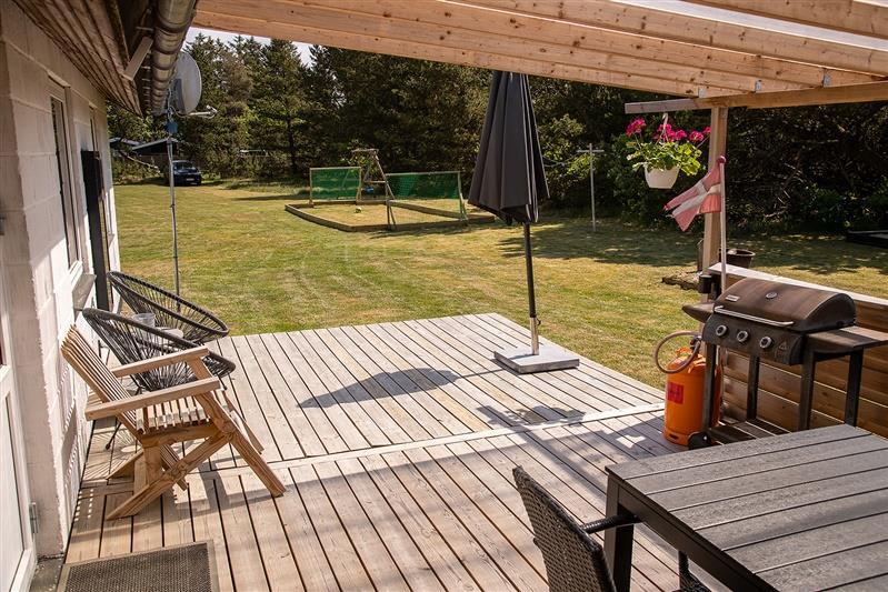 Desuden har huset en privat lille fodboldbane på 8 x 4 M og en hyggelig brændeovn, perfekt til kølige aftener.