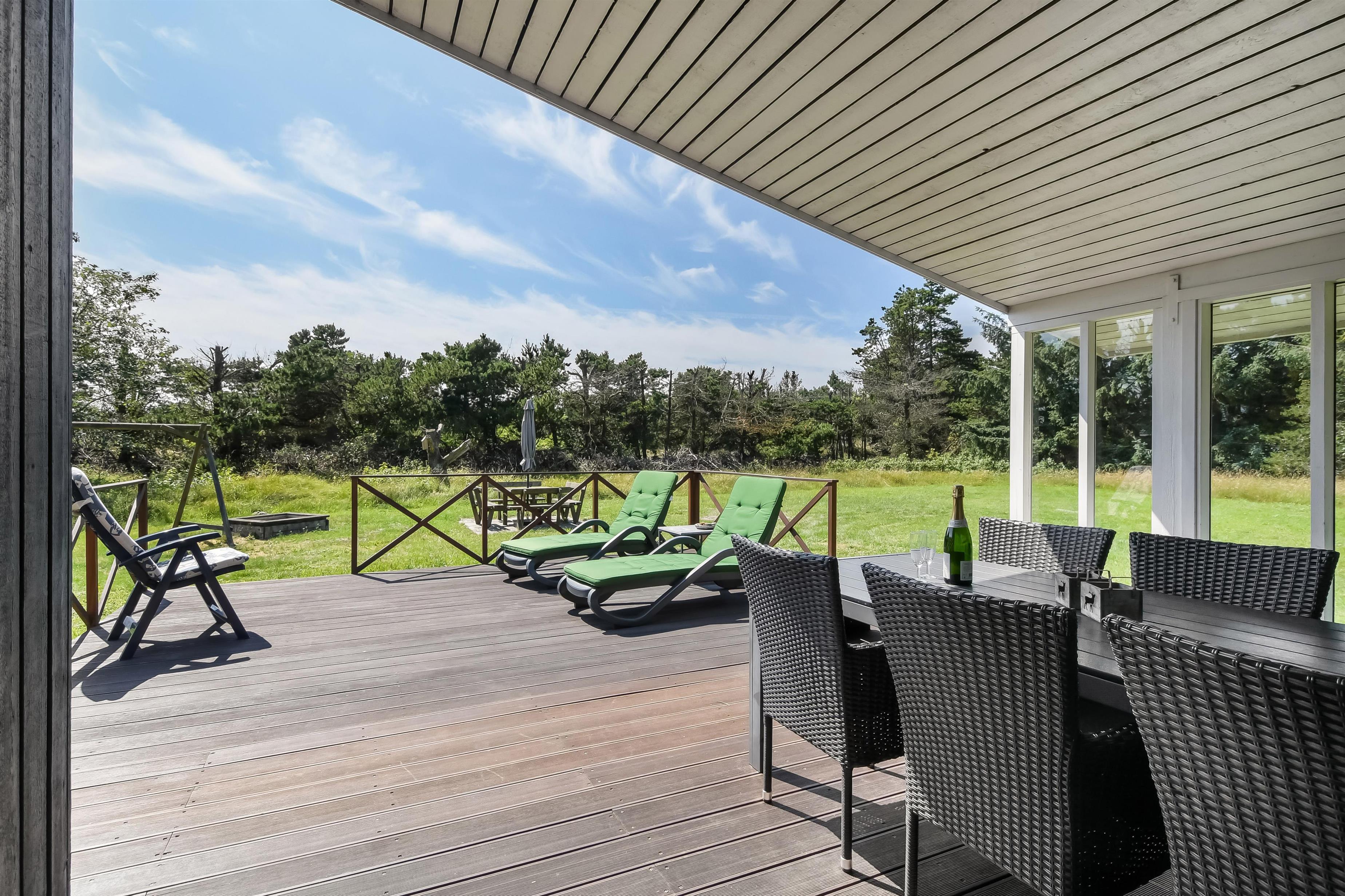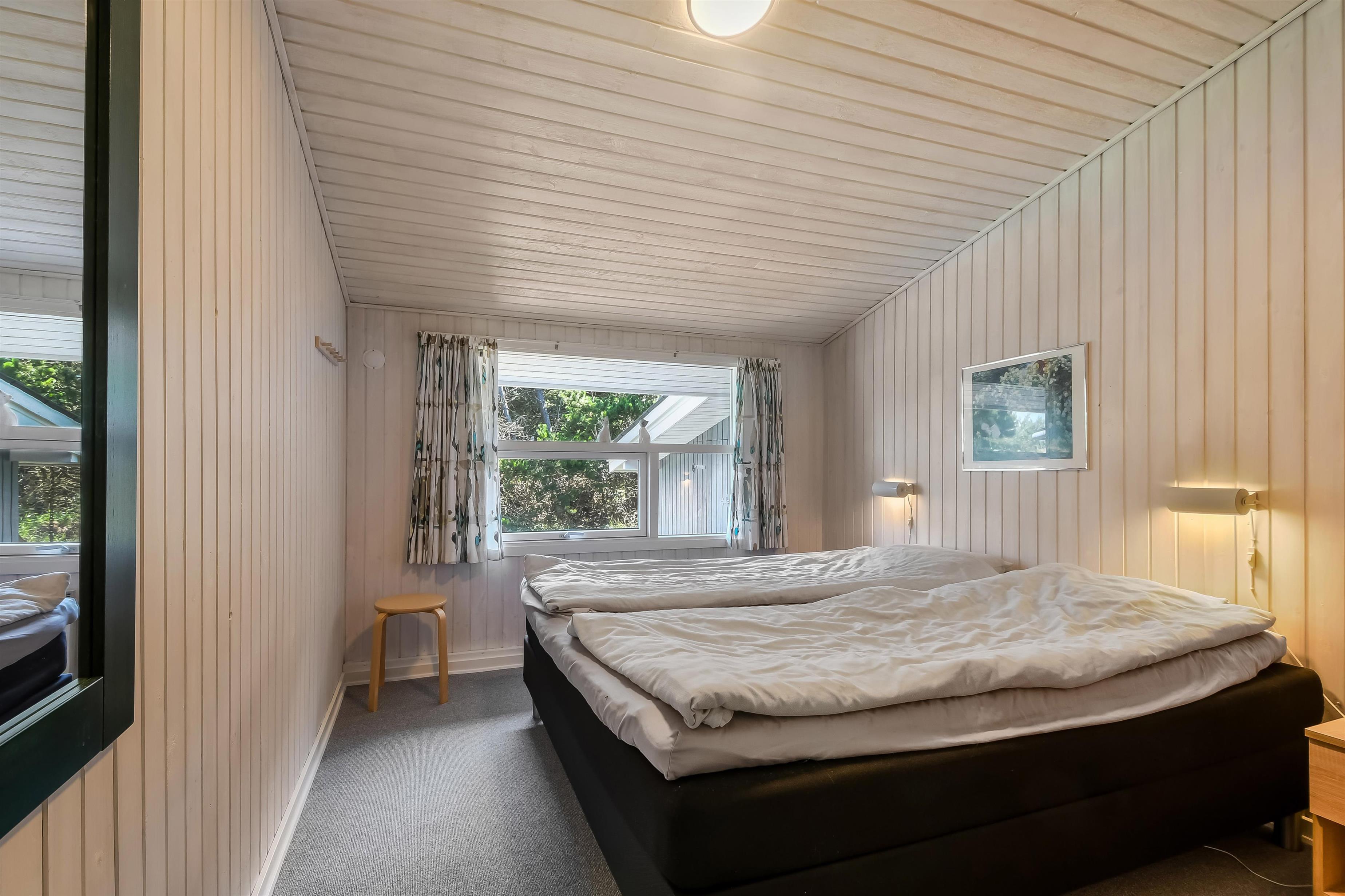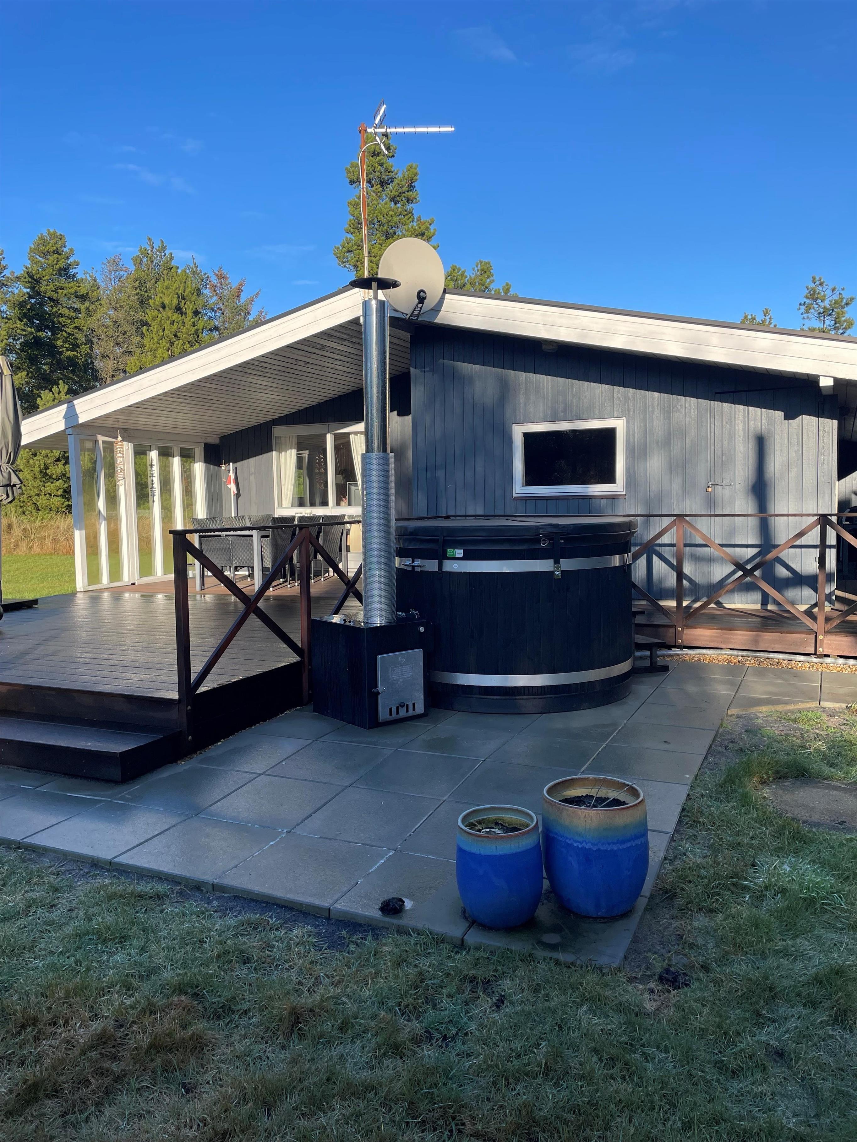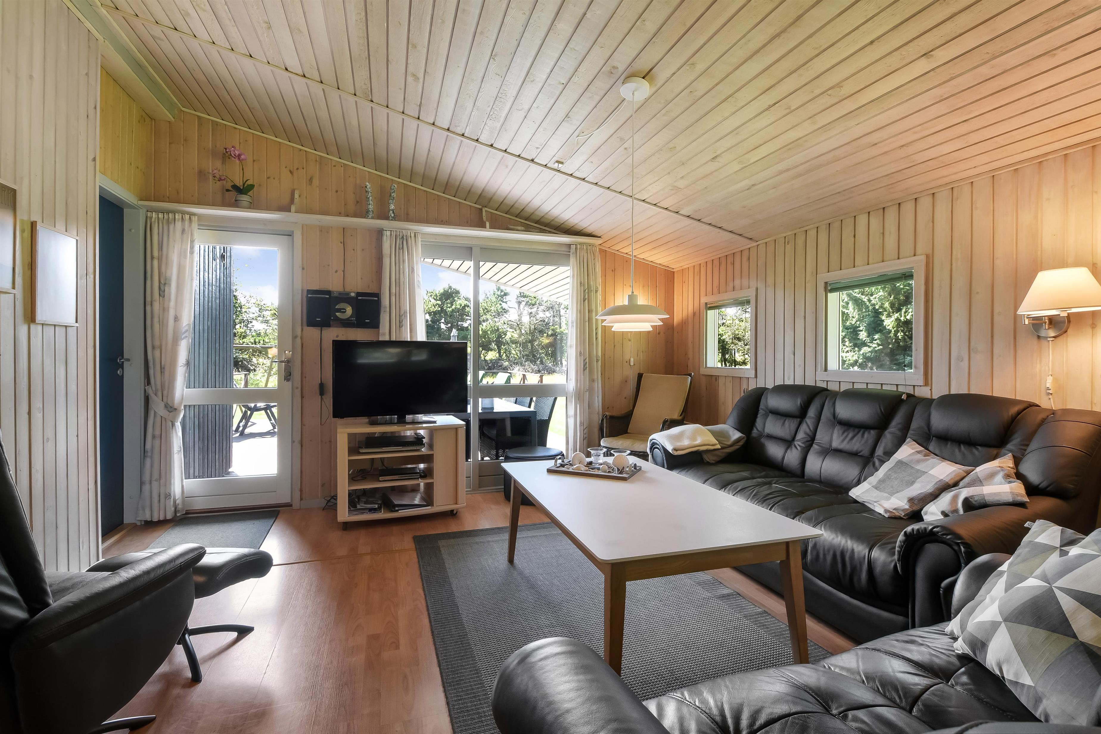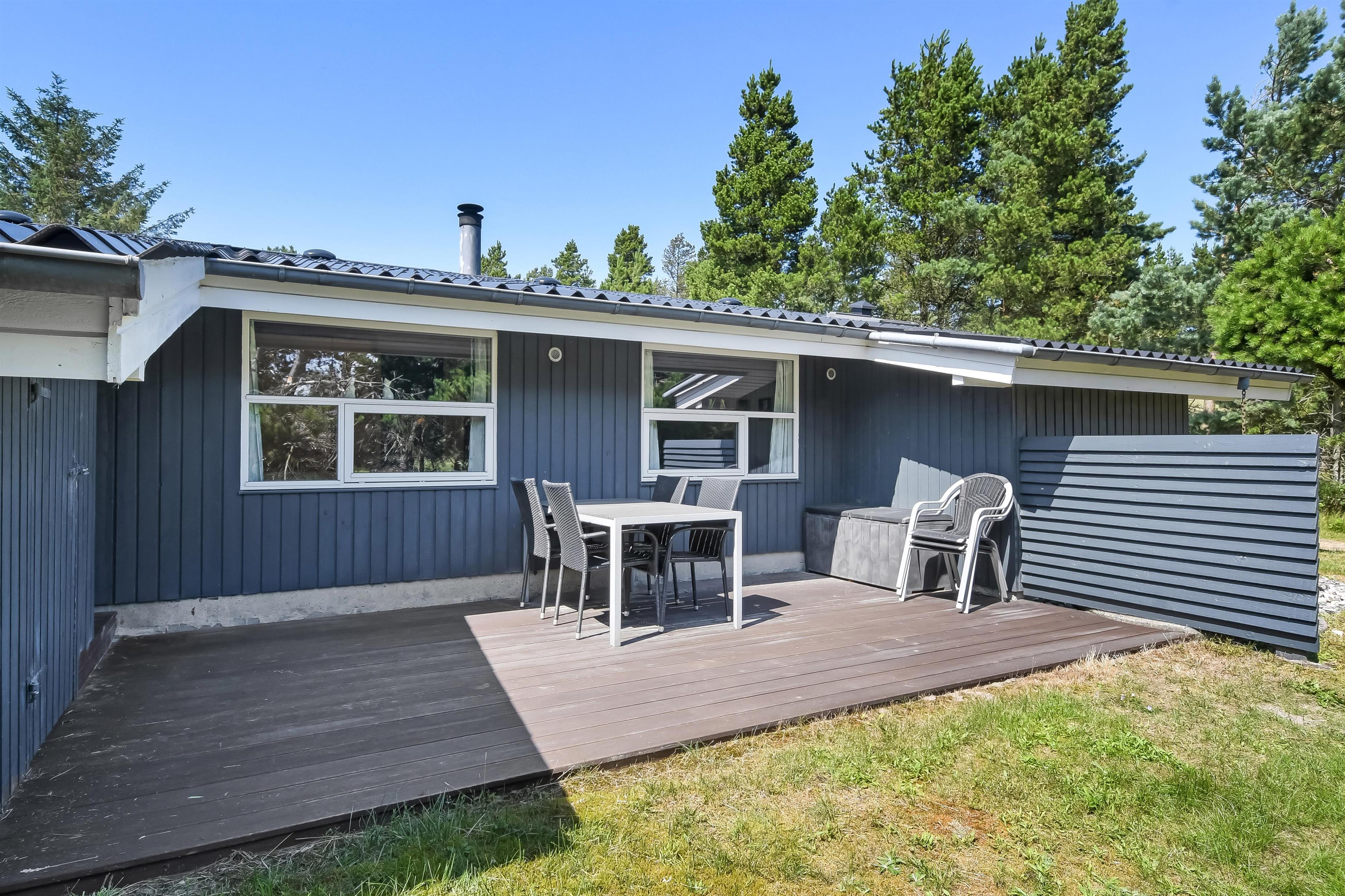 Dejligt træhus beliggende på naturgrund 2 km fra Blåvand by, og ikke langt fra Blåvand Zoo og det nye spændende Tirpitz museum. Huset er lyst og venligt, med gode udendørs arealer, overdækket terrasse, vildmarksbad hængekøjer og gynge til de mindste. Huset er godt udstyret og har bl.a separat fryser og trådløst internet. 1 dobbeltseng. 1 dobbeltseng. 2 enkeltsenge. Byggeår 1977, træhus, IKKE RYGER, varmepumpe, Overdækket terrasse, barnestol, barneseng. Mikroovn, opvaskemaskine, separat fryser. Vaskemaskine, sauna, gulvvarme i bad. DVD-afspiller, farve-TV , crome cast og parabol, brændeovn, radio. Gynge, hængekøjer.