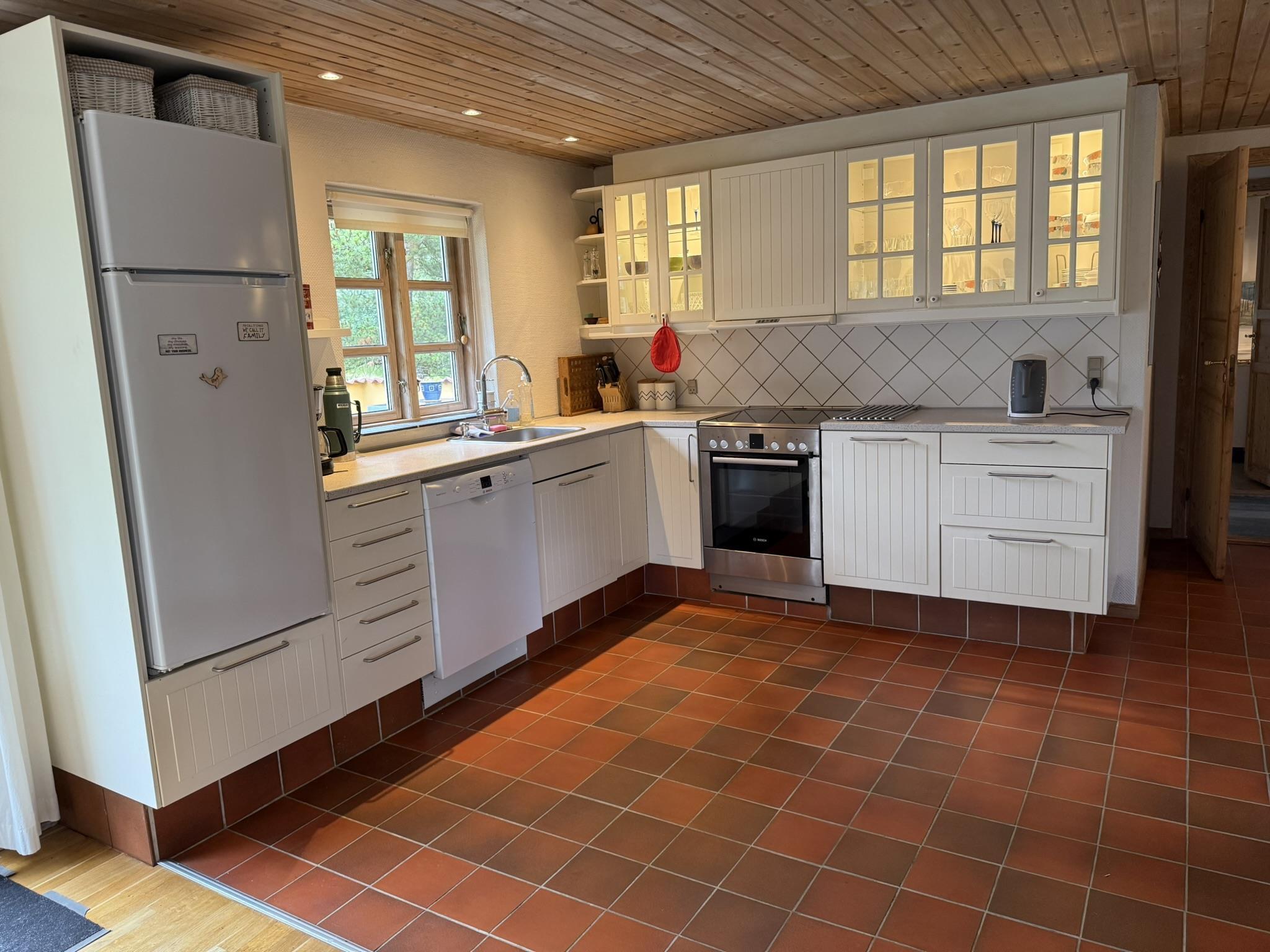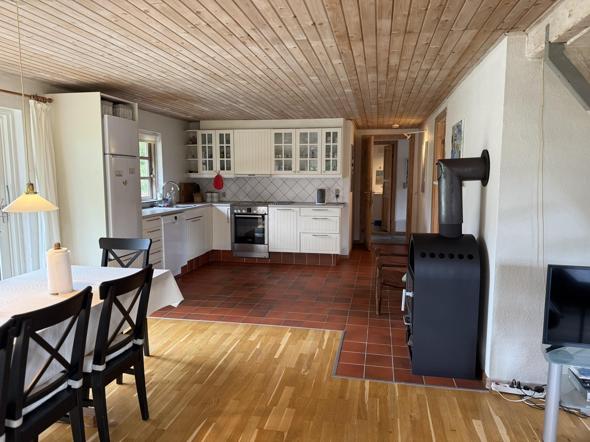 I stuen sørger brændeovnen for hygge hvis vejret skulle blive lidt køligt. I det veludstyrede køkken er der opvaskemaskine. Huset råder også over en vaskemaskine.