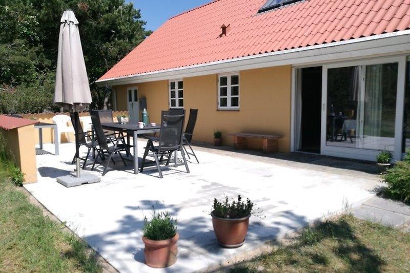 Godt indrettet hus med dejlig terrasse i gåafstand fra byen. Der er to badeværelser, den ene med spa. Huset er smagfuldt og hyggeligt indrettet. Det har to soveværelser med dobbeltseng og en soveværelse med fire køjer.