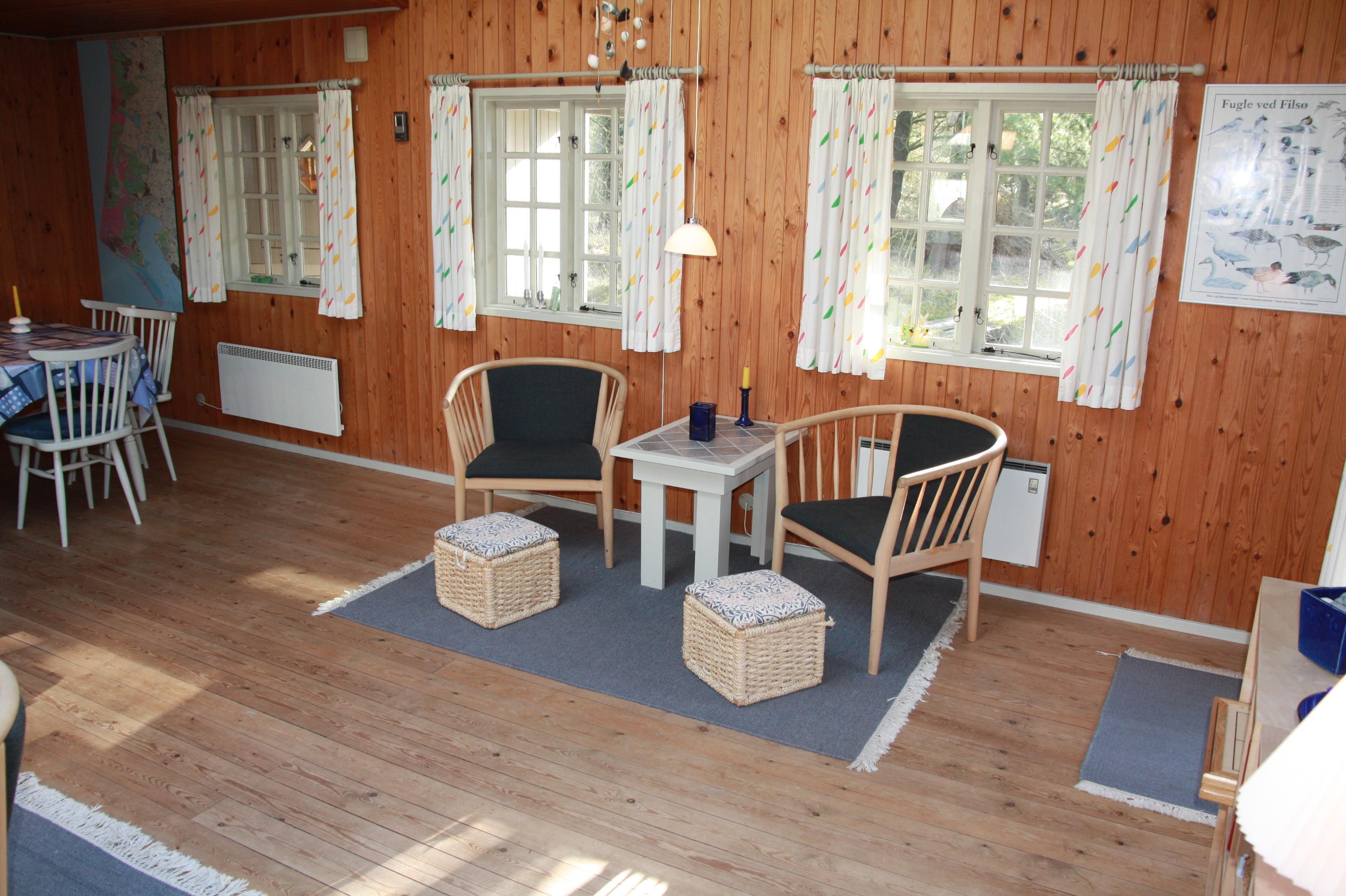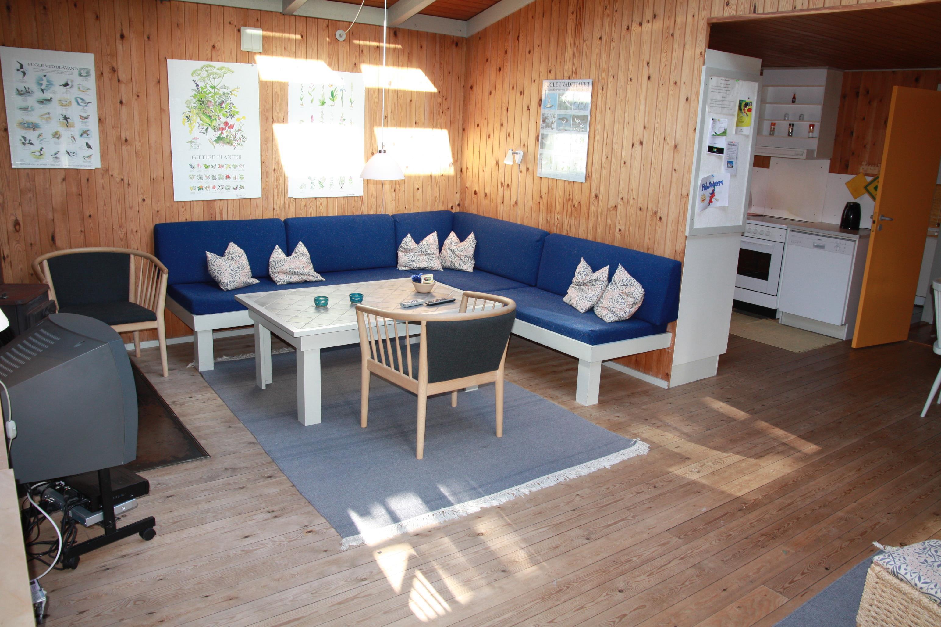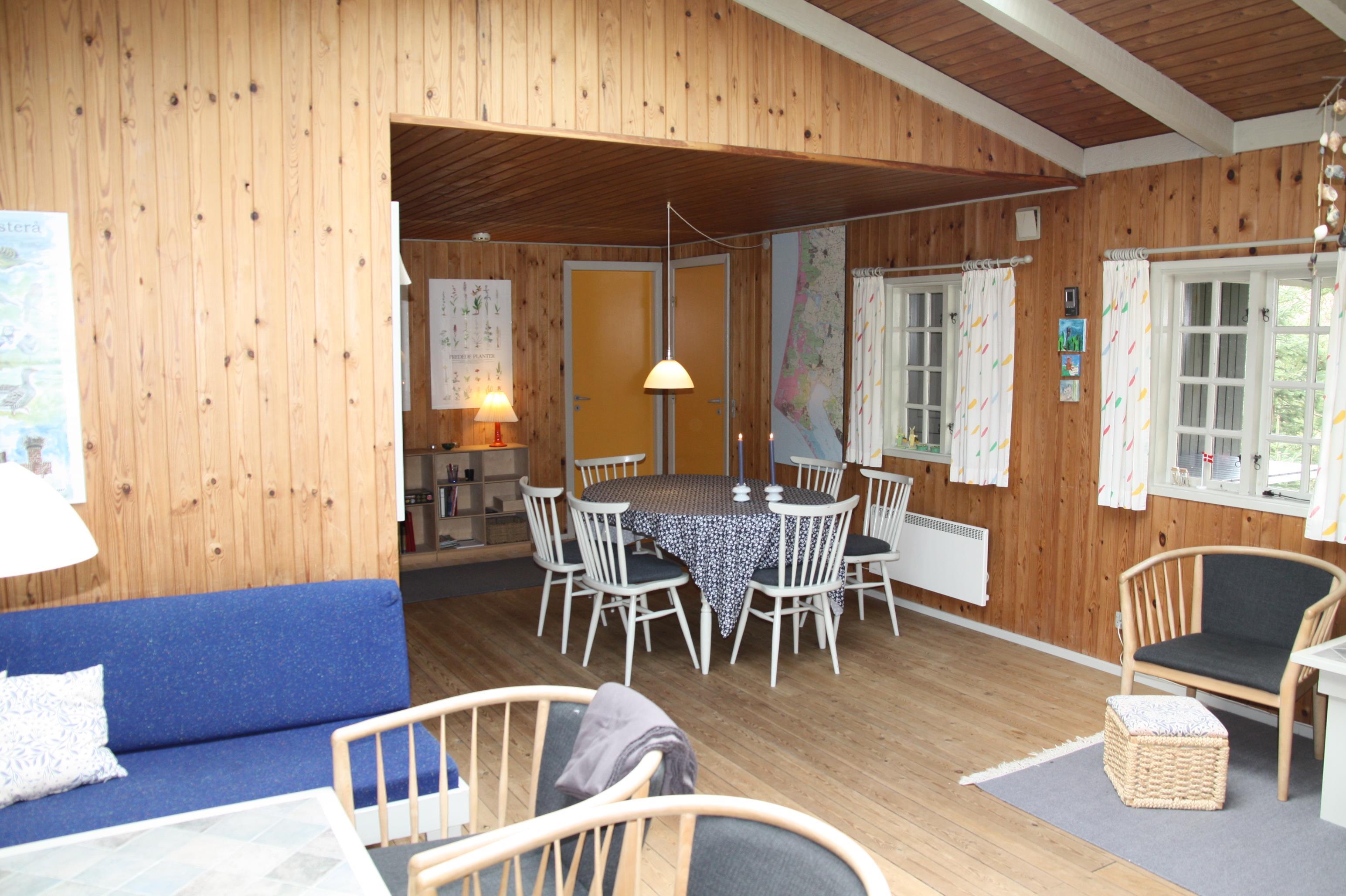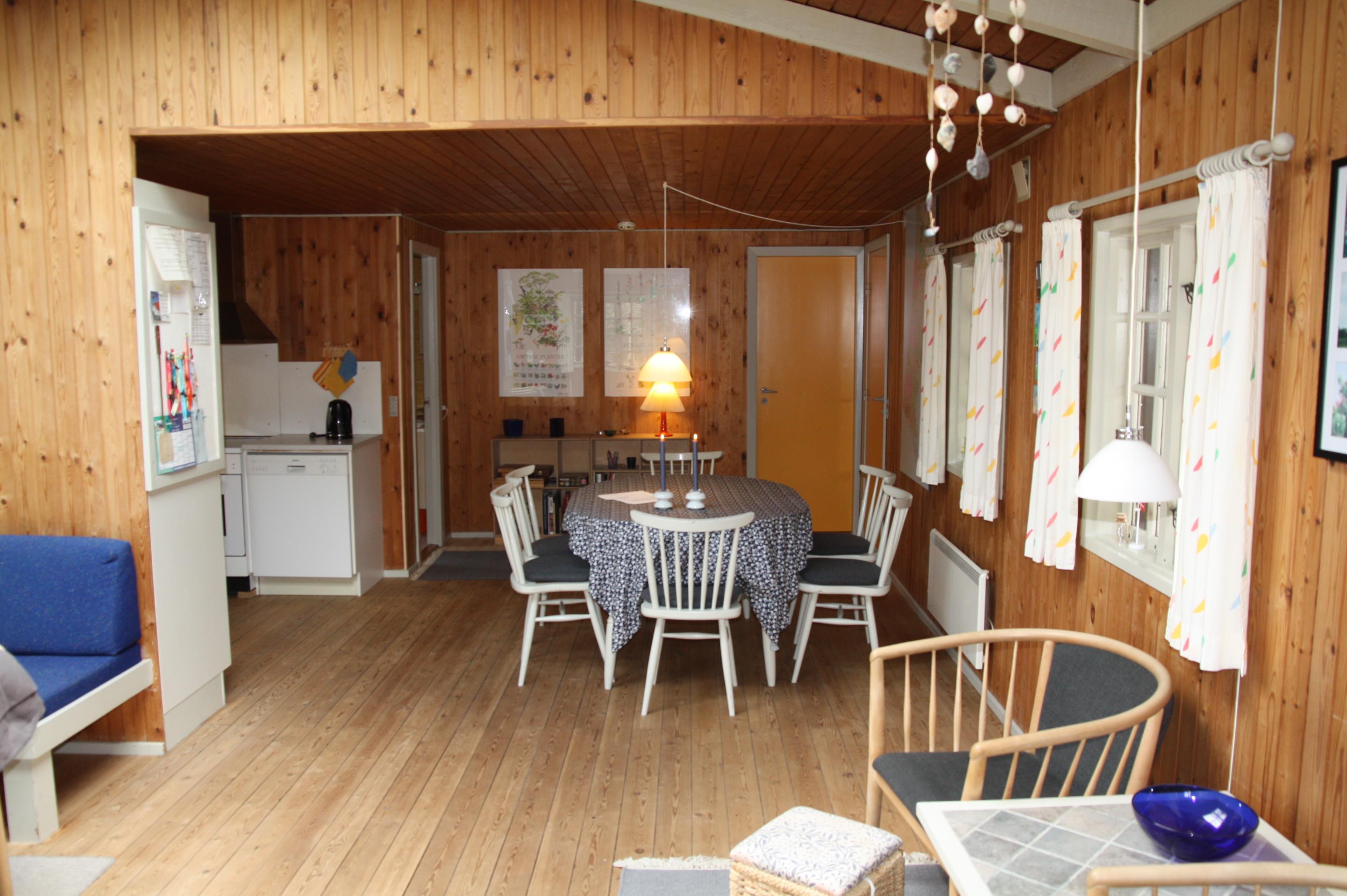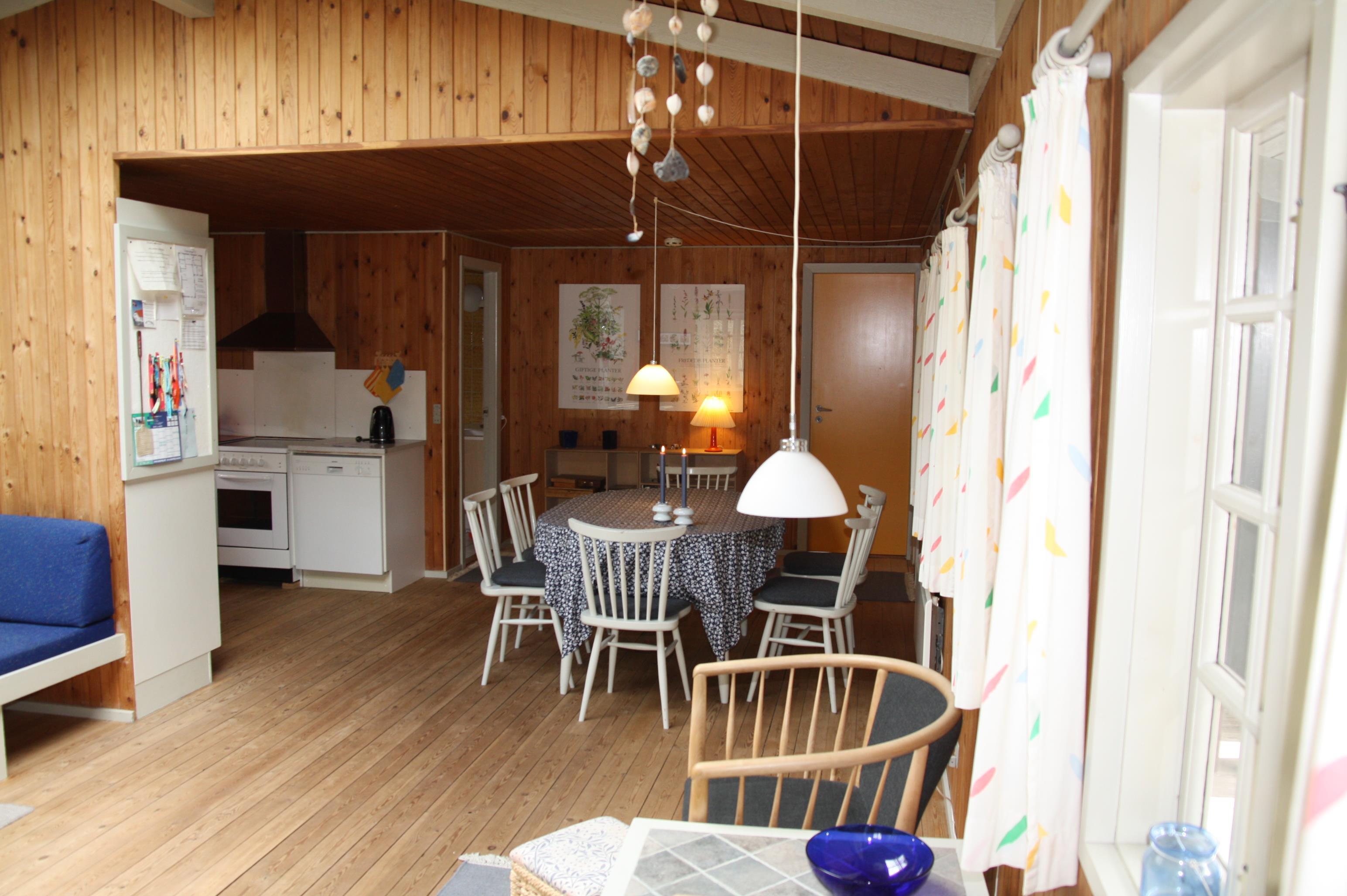 Lyst og rummeligt træhus på stor, ugenert naturgrund med rig mulighed for både sol og skyggepå dejlig sydvestvendt terrasse. Huset er moderne indrettet med åbent køkkenalrum og stue med brændeovn samt stort ovenlysvindue, der giver et dejligt lysindfald. Nyd freden og roen fra den overdækkede terrasse, eller oplev naturen helt tæt i Ho Klitplantage eller Vesterhavet ved Skallingen og Ho Bugt få kilometer væk. Eller gå på oplevelse i nærområdet, der byder på både gourmetkro, fiskesø, islænderheste, golfbane, bowlinghal og badeland. Det er mange gode cykelstier og mountainbikestier i området og med bil nåes både shopping, historiske steder, museer og zoo indenfor 15 min. Prisen er excl. vand. 1 dobbeltseng. 1 dobbeltseng. 2 enkeltsenge. Byggeår 1973, træhus, Overdækket terrasse. Opvaskemaskine. 1.500 Afstand til golfbane. Vaskemaskine. DVD-afspiller, farve-TV og parabol, brændeovn. Gynge, sandkasse, naturgrund med træer.