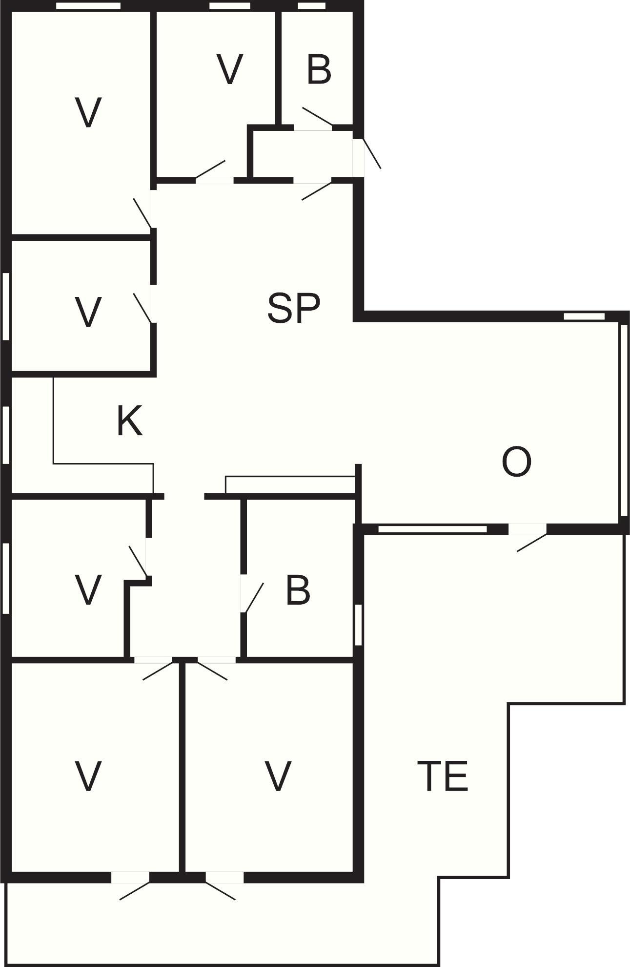 6 Soveværelser: (2S)+(1DS)+(1DS)+(1DS)+(1DS+2K)+(1DS)