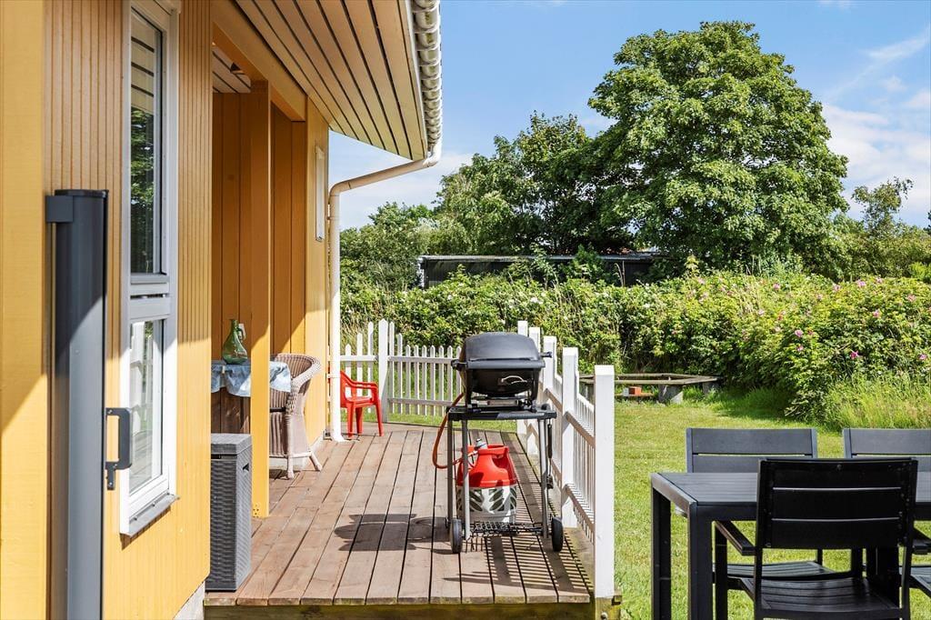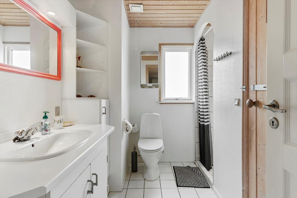 Feriehuset indeholder en stor entré med vaskemaskine, skabe og mikroovn. Derudover er der en opholdsstue med brændeovn, energibesparende varmepumpe, en integreret alkove med 2 sovepladser samt udgang til en stor delvist overdækket terrasse. Der er 2 gode værelser med henholdsvis 1 og 2 sovepladser, et godt og lyst badeværelse med gulvvarme samt et stort og veludstyret køkken med opvaskemaskine, spiseplads og udgang til haven samt ikke mindst den skønne udsigt til vandet.