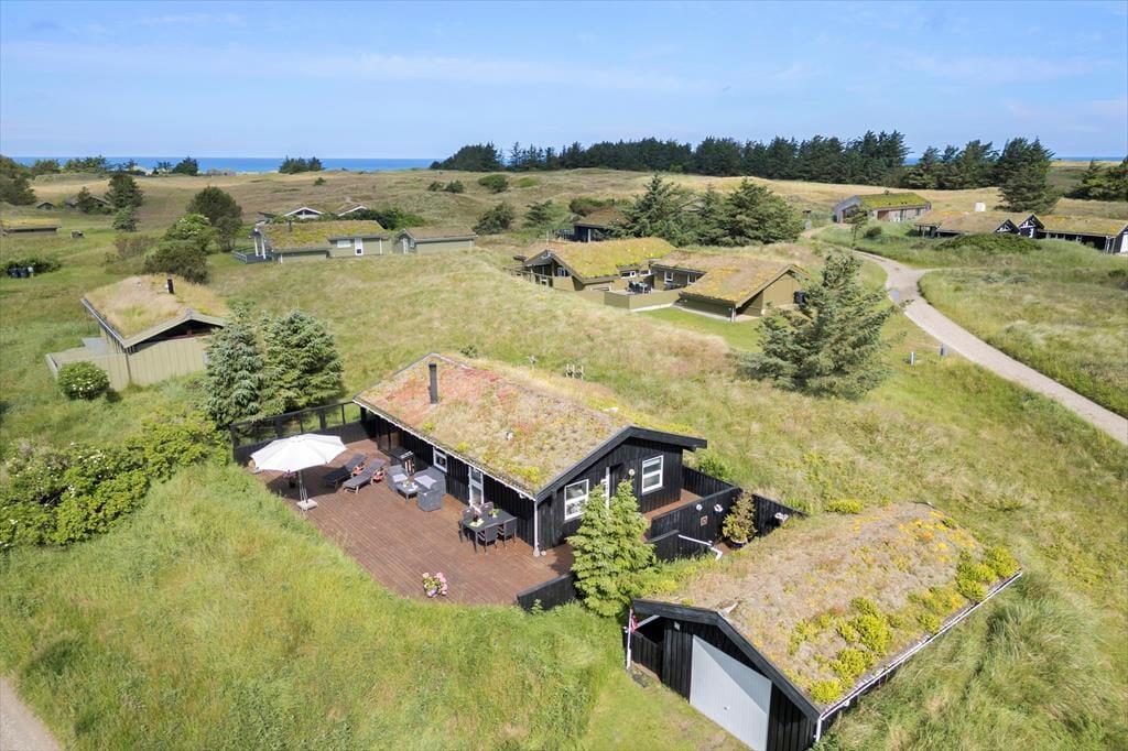 Velkommen til dette charmerende sommerhus, der ligger skønt placeret på en ugeneret naturgrund i Kryle Klit. Vejen er lukket, så I bor dejligt roligt, og I har nem adgang til Vesterhavet og fredede naturområder såvel som Blokhus by og Fårup Sommerland. Kort sagt et skønt sted at holde ferie for hele familien.