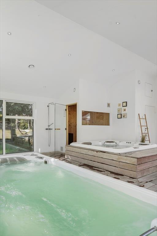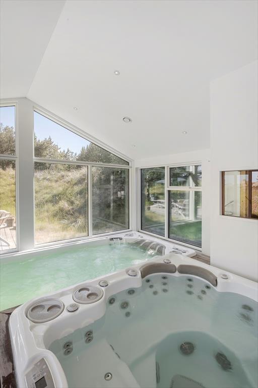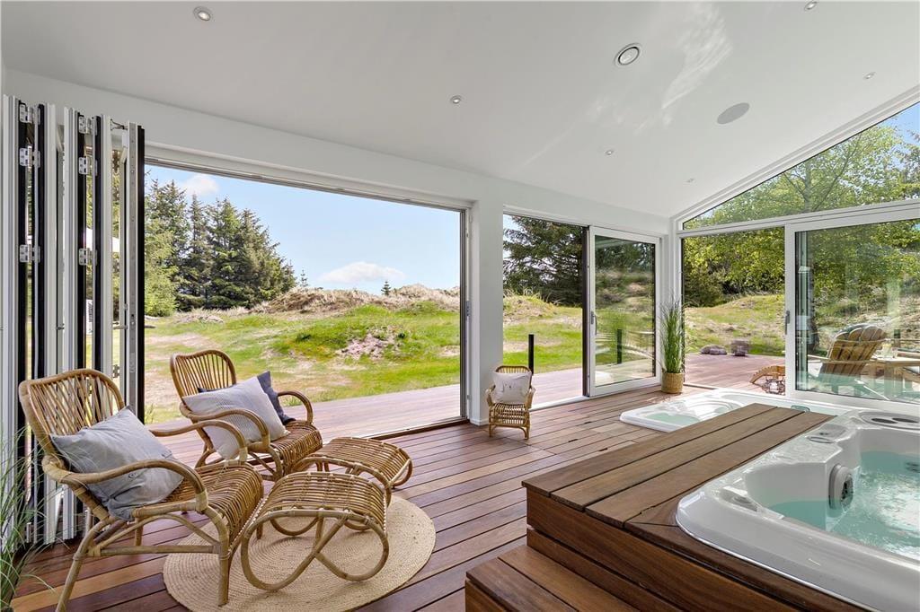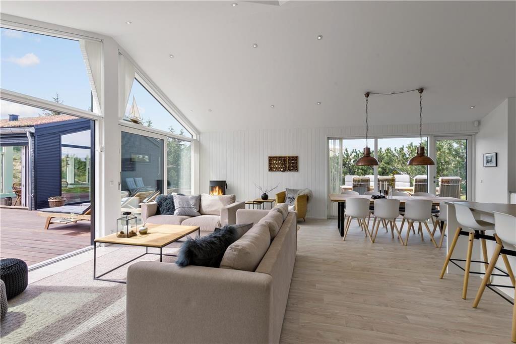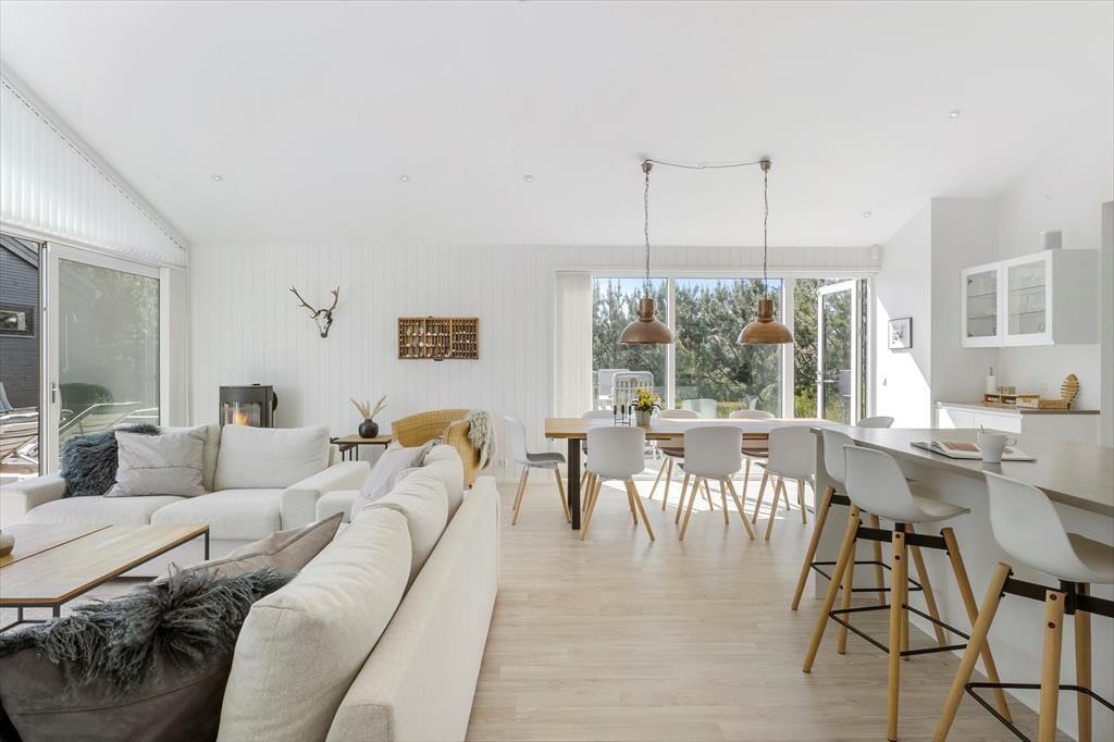 Som du træder indenfor, mødes du af en indbydende og moderne indretning, hvor stil og komfort går hånd i hånd. Husets åbne opholdsområde giver plads til at samle sig hele familien, og de store vinduer sikrer masser af naturligt lys, der skaber en lys og luftig atmosfære. Den moderne indretning er præget af stilrene møbler og elegante detaljer, som gør det til et fornøjelse at være i. Efter en dag fyldt med aktivitet kan du nyde roen i den hyggelige stue med brændeovn, som indbyder til afslapning og hygge. Huset byder desuden på en lækker wellness-afdeling med både sauna og spabad, hvor du kan forkæle dig selv og lade op til endnu en dag i Blokhus.
