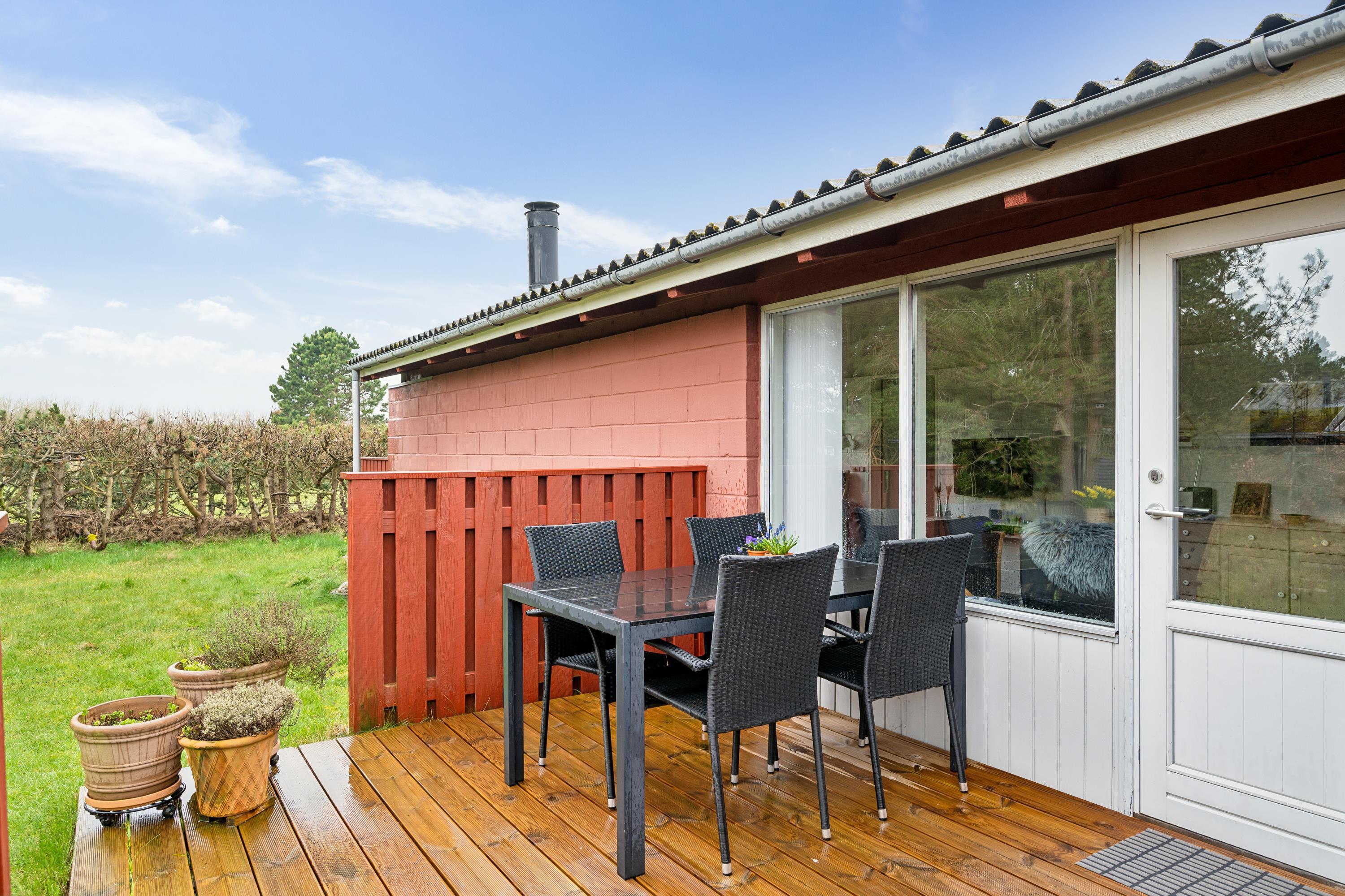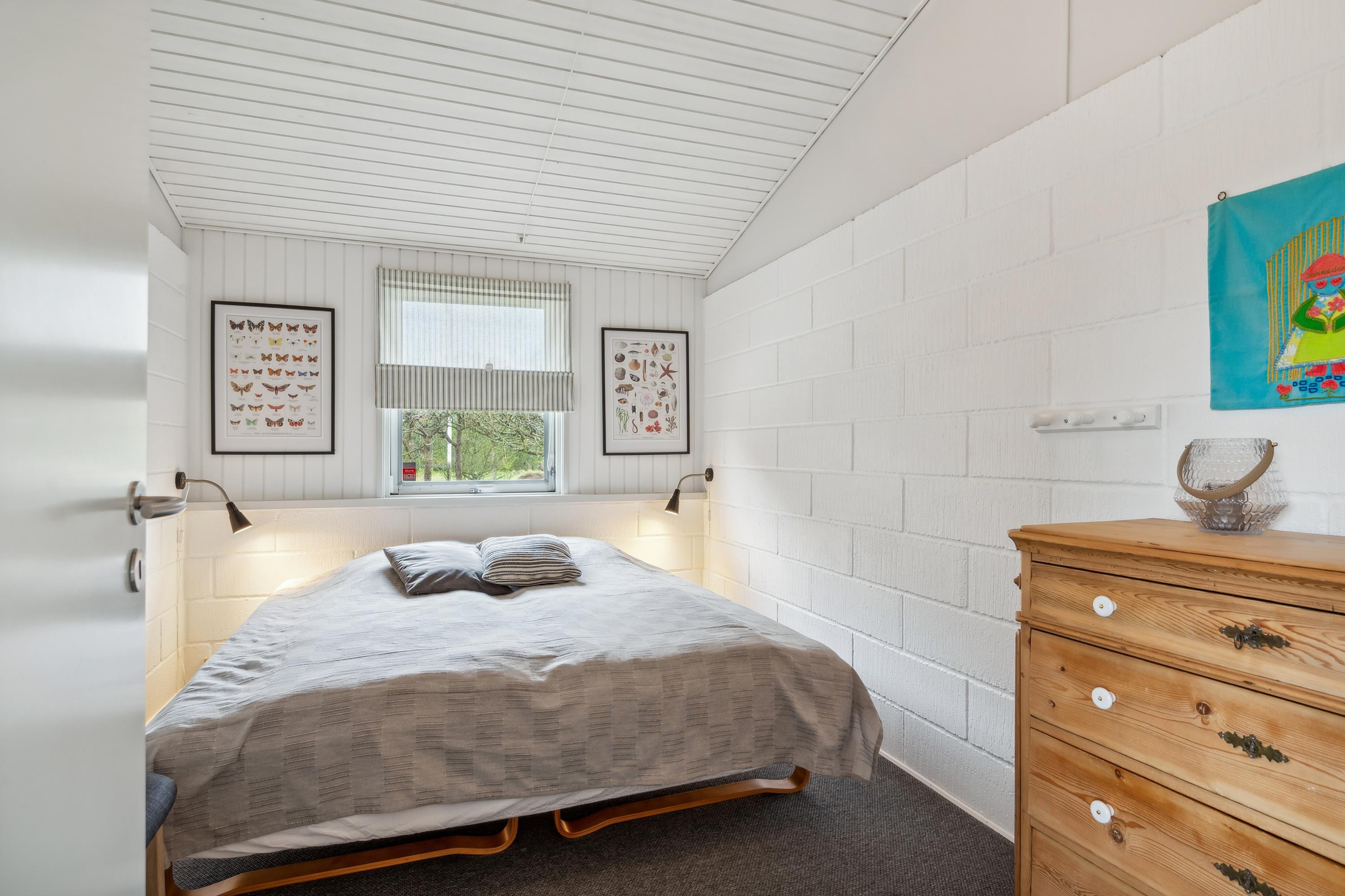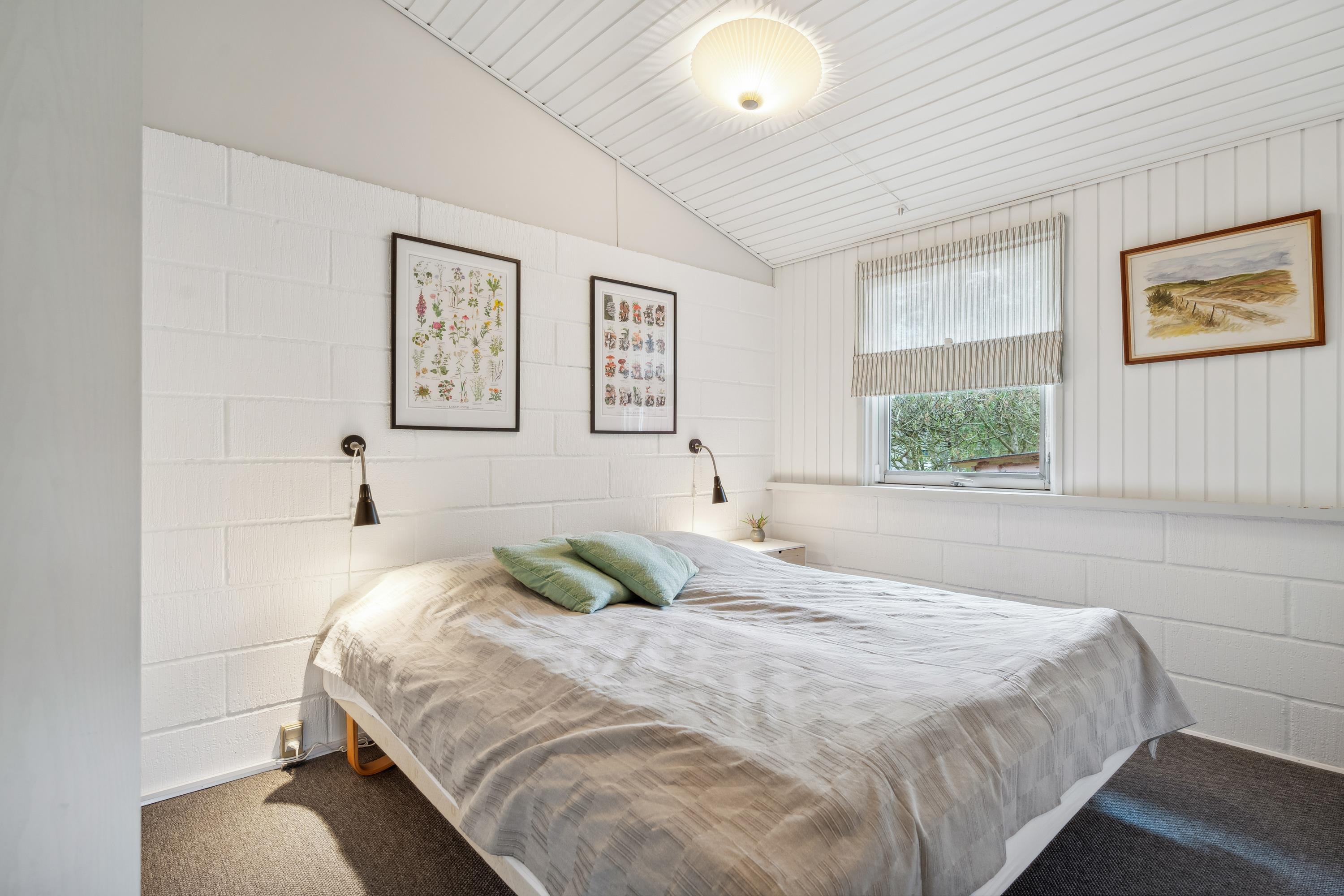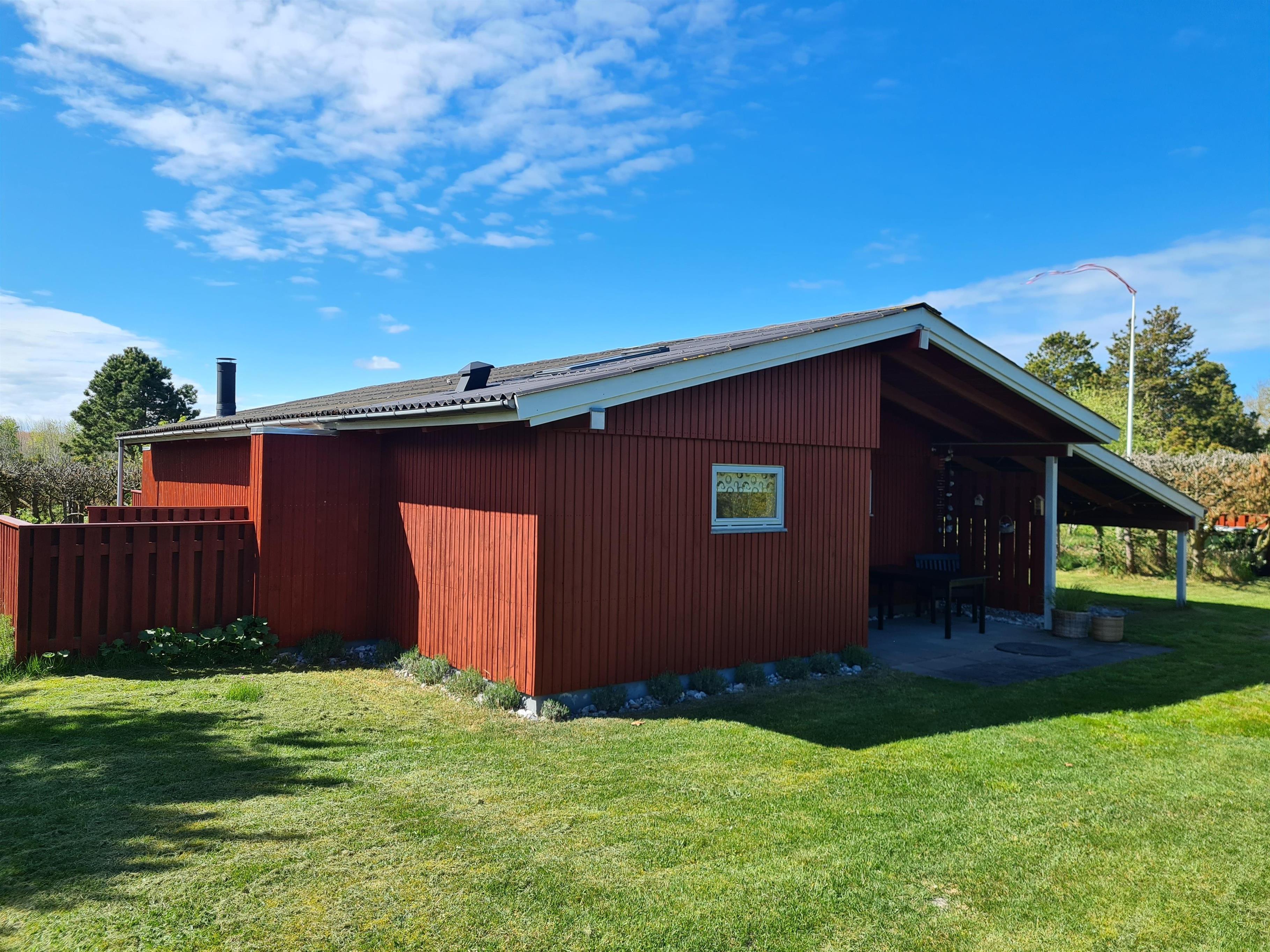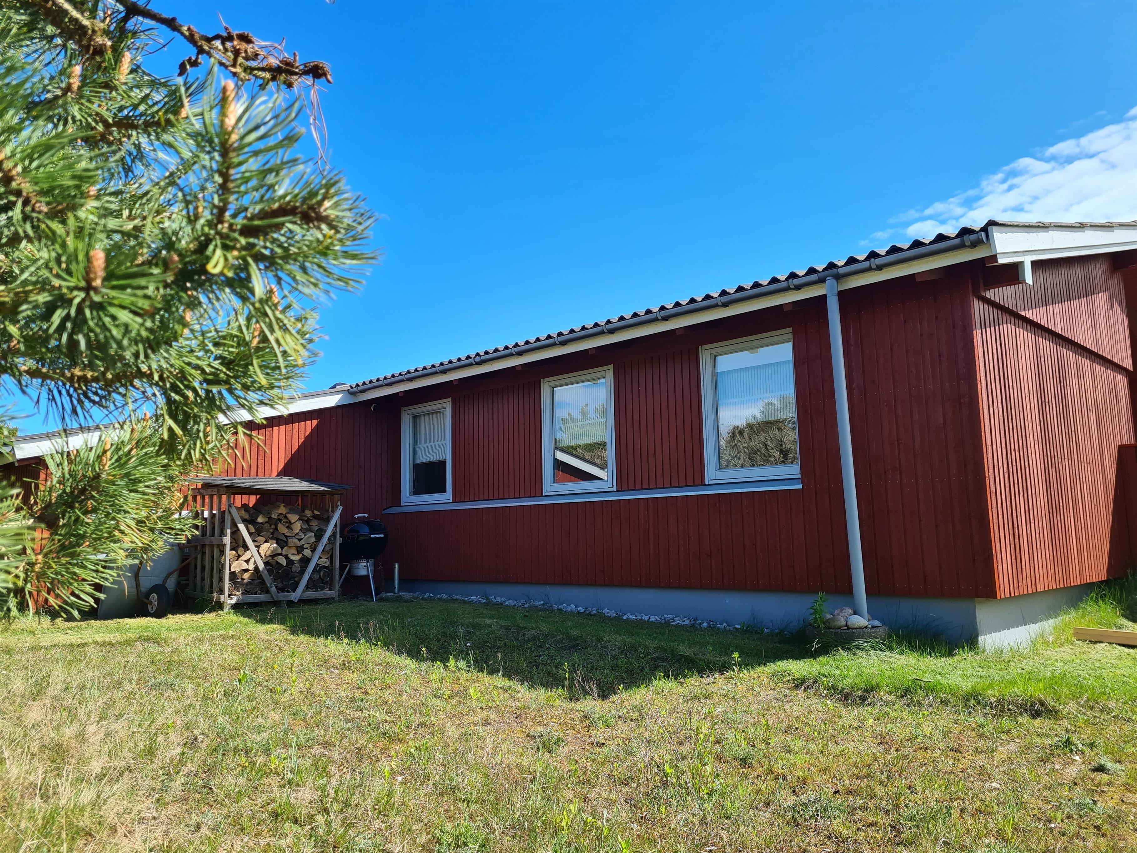 Dejligt sommerhus beliggende i strandnære omgivelser på en naturgrund med træer og buske med delvis overdækket terrasse med havemøbler og grill. Hyggelig opholdsstue med brændeovn, TV med kabel-TV (bl.a. TV2) og stereoanlæg med CD. Køkken med elkomfur, køleskab med lille fryser og opvaskemaskine. Badeværelse med bruseniche. Husets sovepladser fordeler sig på 3 soverum: 2 med enkeltsenge og 1 mindre seng 120x200. Til de små feriegæster findes barneseng og barnestol. Carport til bilen er tilgængelig.