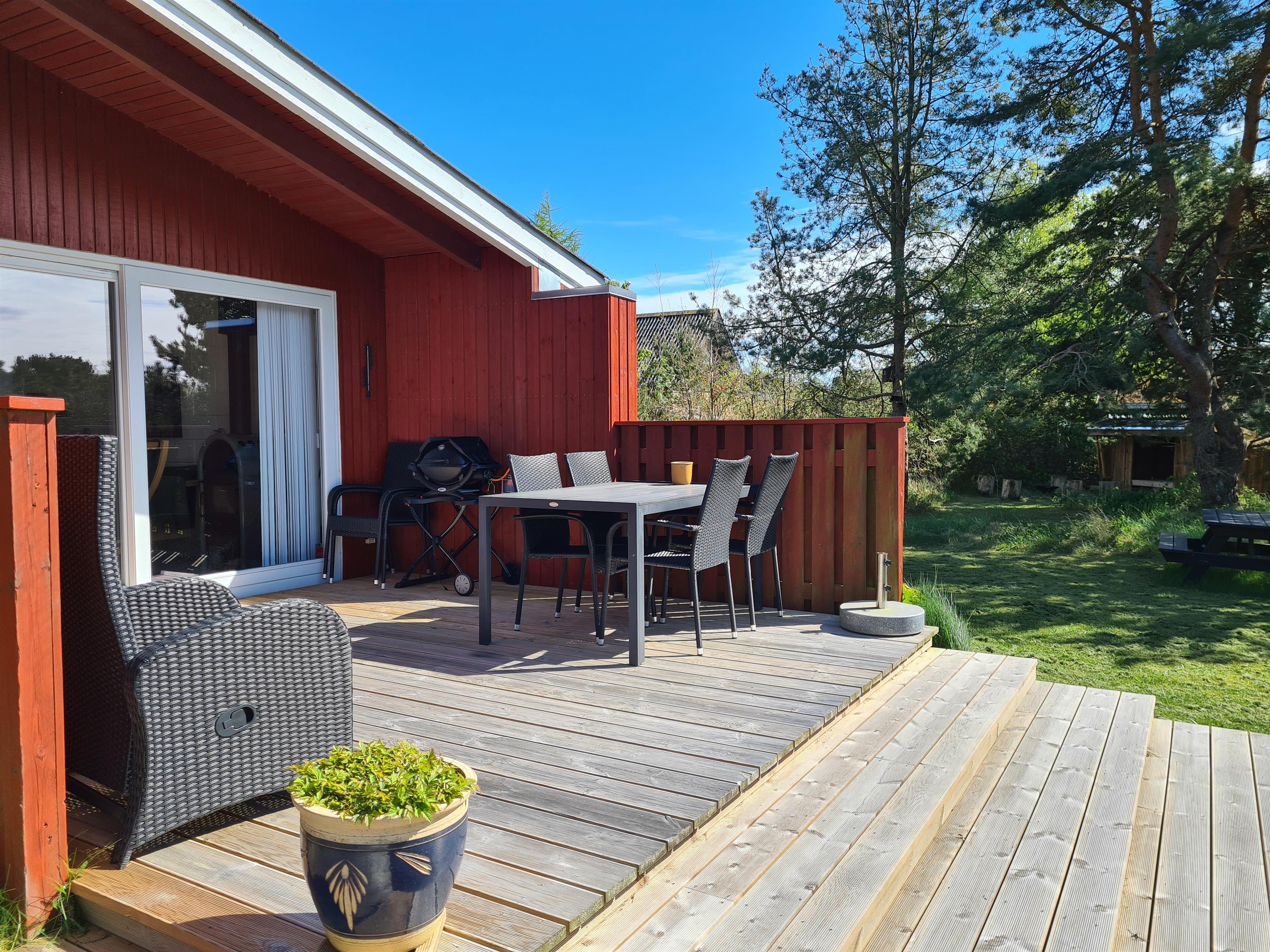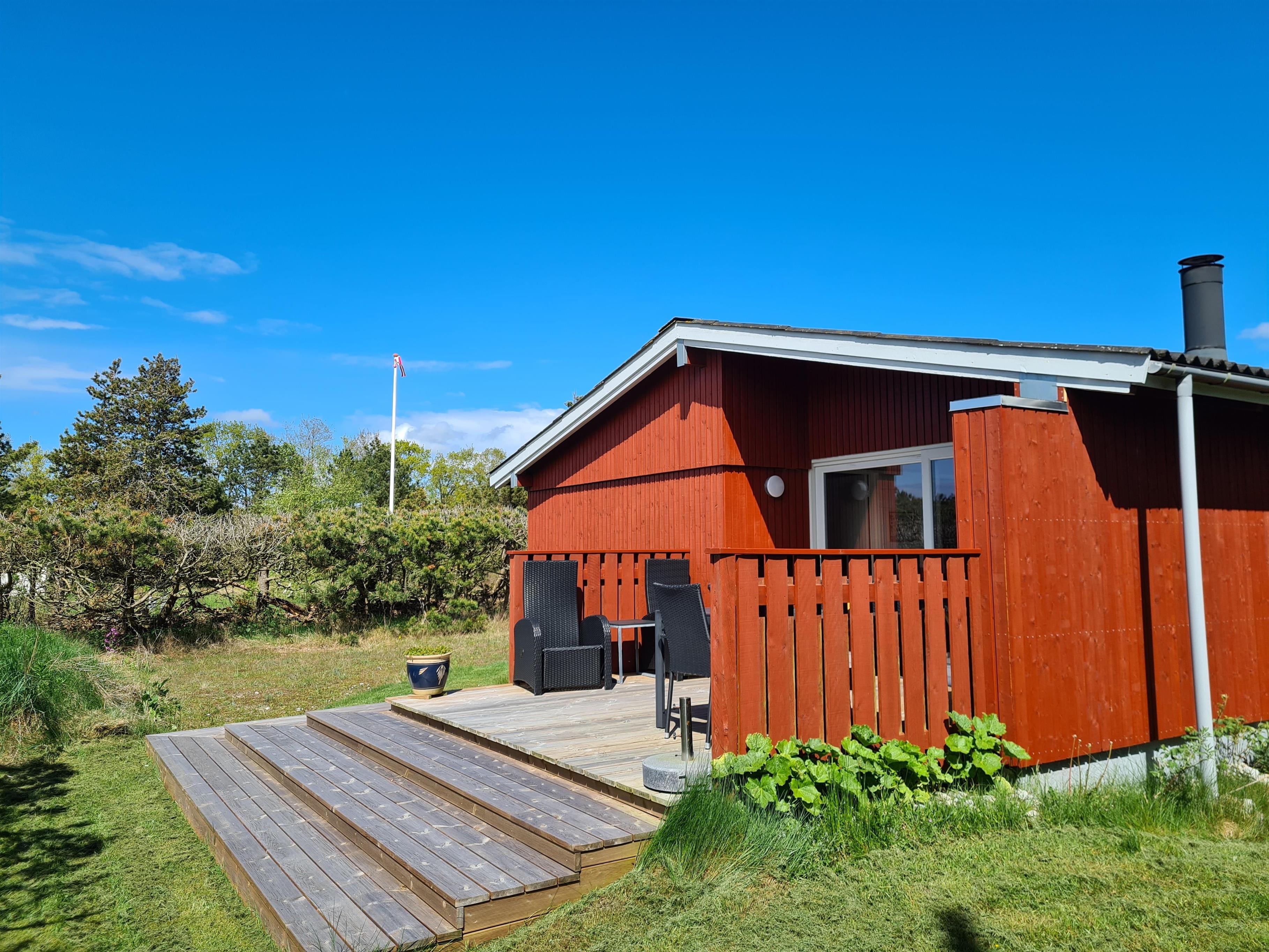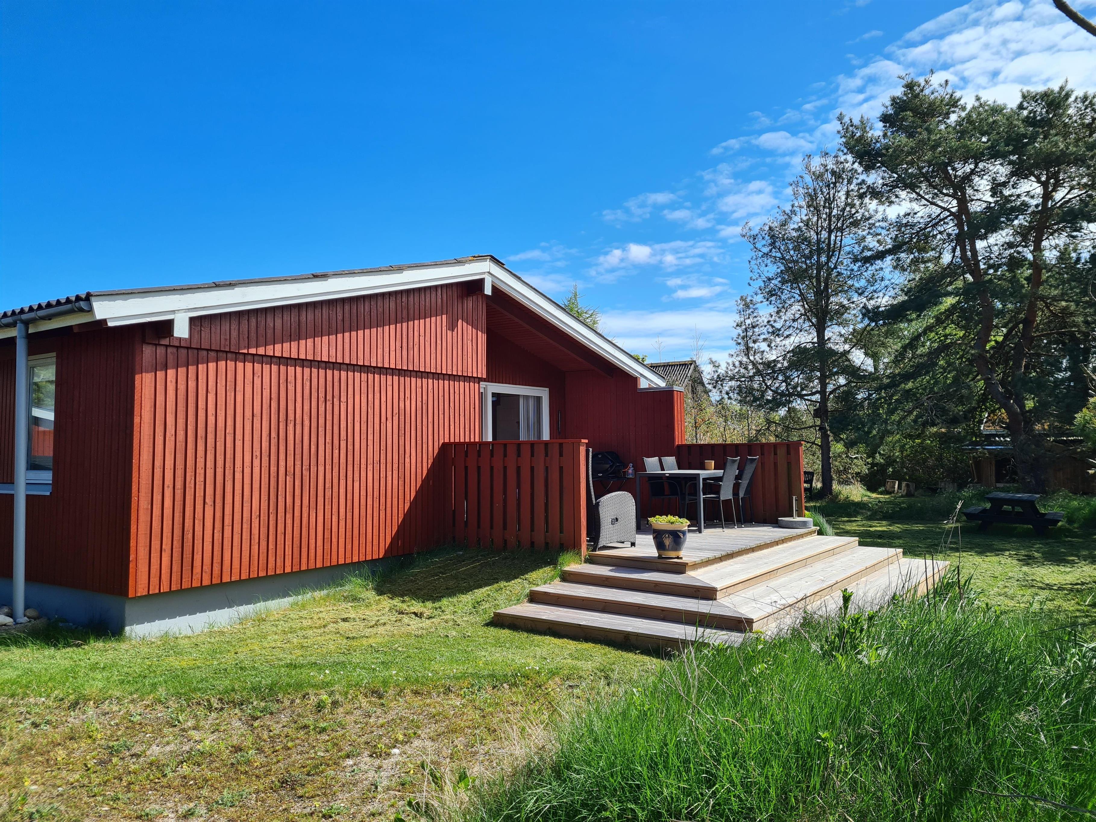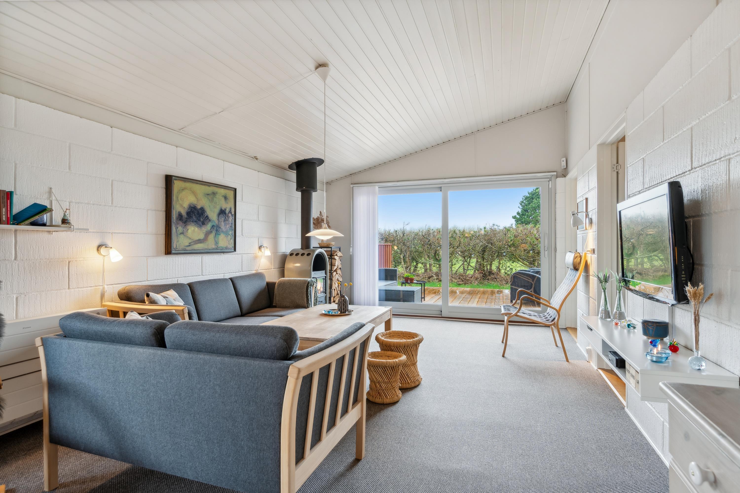 Dejligt sommerhus beliggende i strandnære omgivelser på en naturgrund med træer og buske med delvis overdækket terrasse med havemøbler og grill. Hyggelig opholdsstue med brændeovn, TV med kabel-TV (bl.a. TV2) og stereoanlæg med CD. Køkken med elkomfur, køleskab med lille fryser og opvaskemaskine. Badeværelse med bruseniche. Husets sovepladser fordeler sig på 3 soverum: 2 med enkeltsenge og 1 mindre seng 120x200. Til de små feriegæster findes barneseng og barnestol. Carport til bilen er tilgængelig.