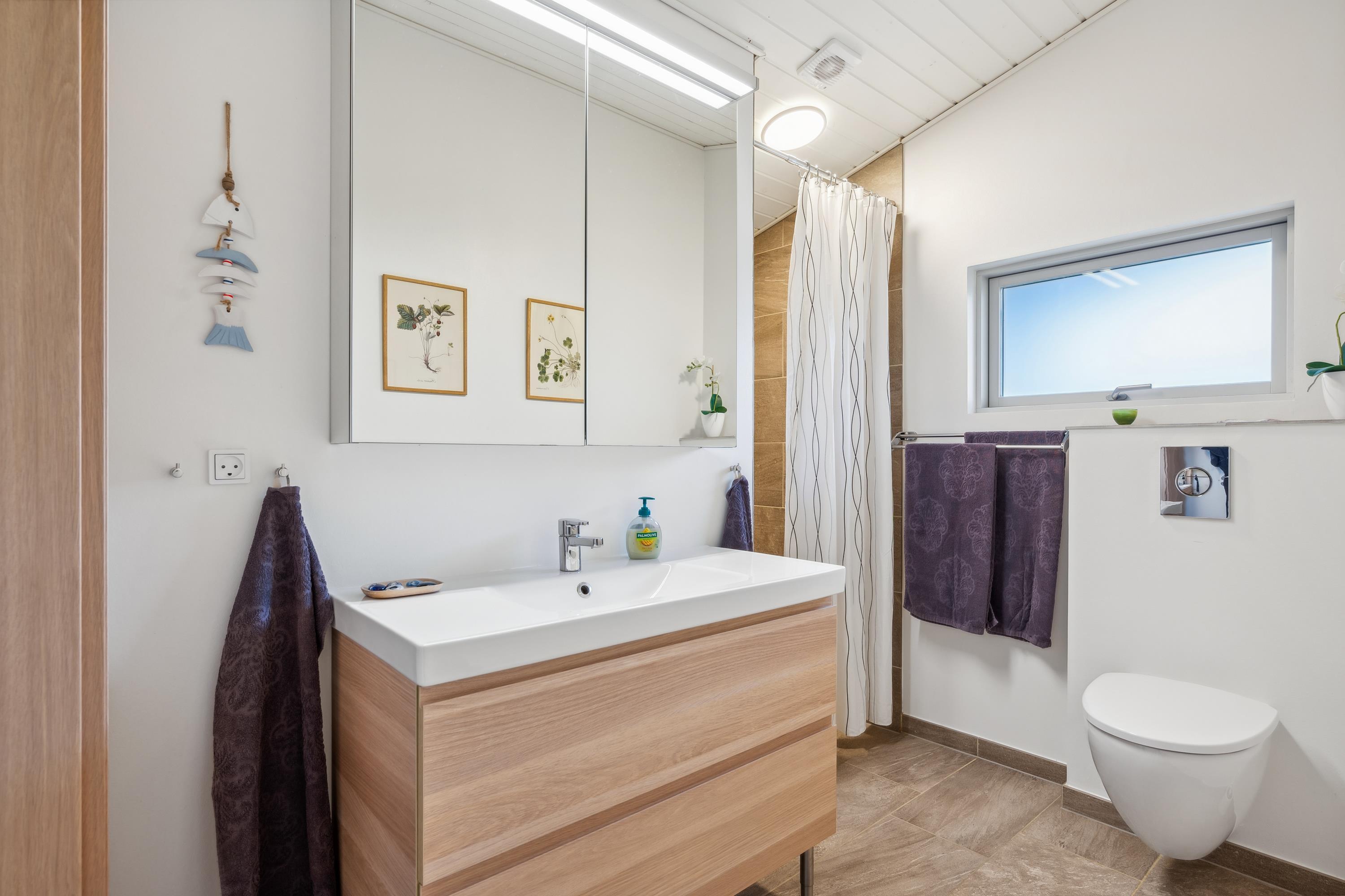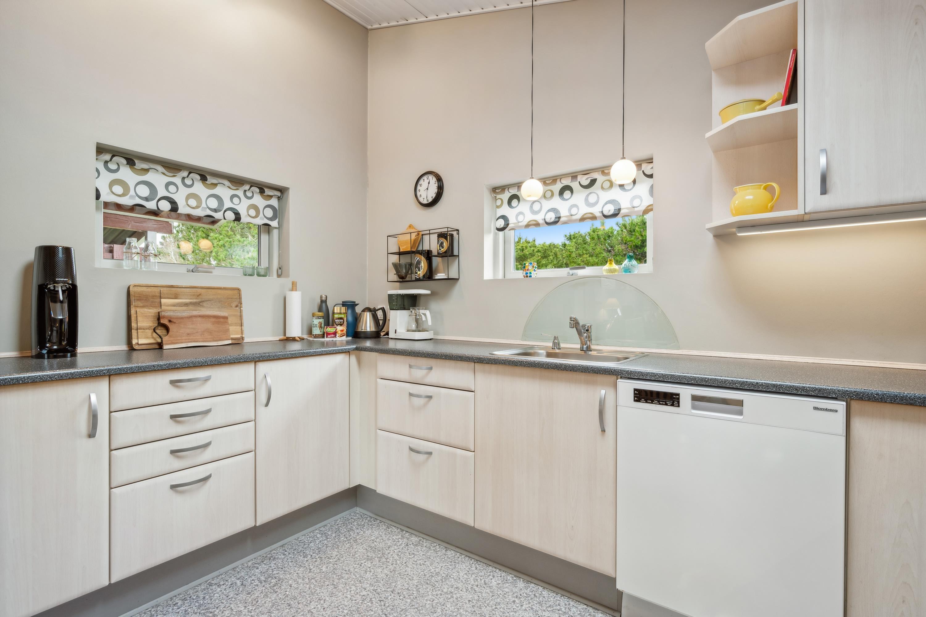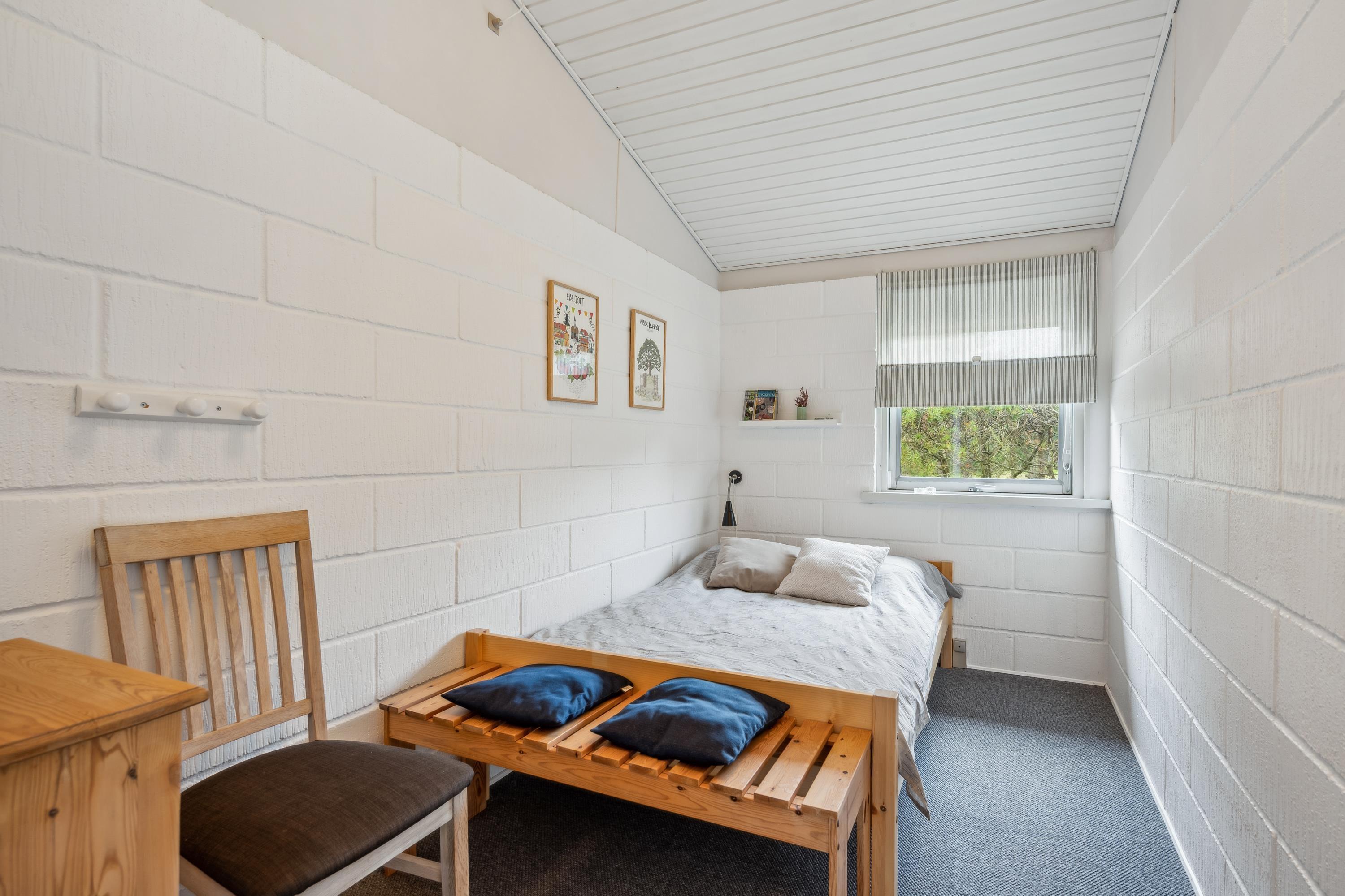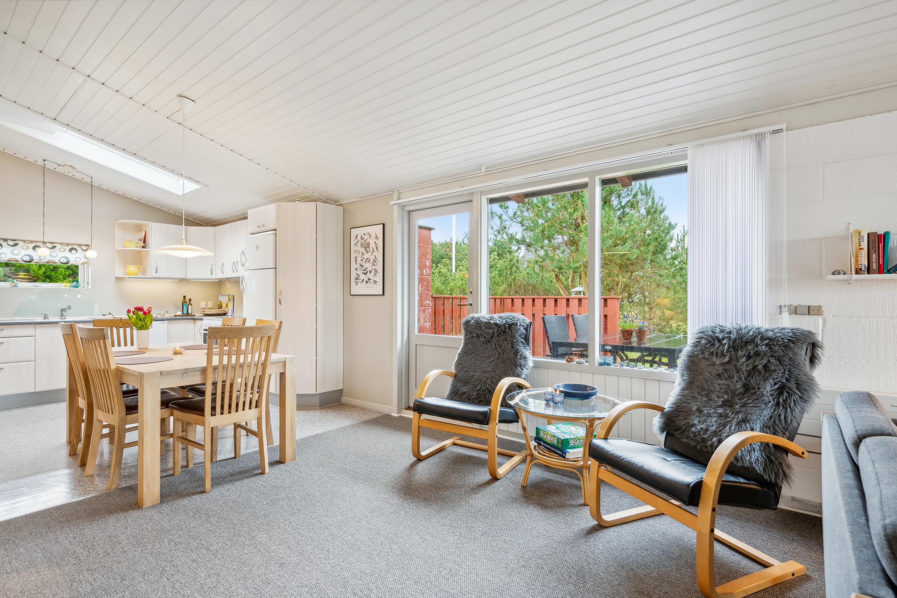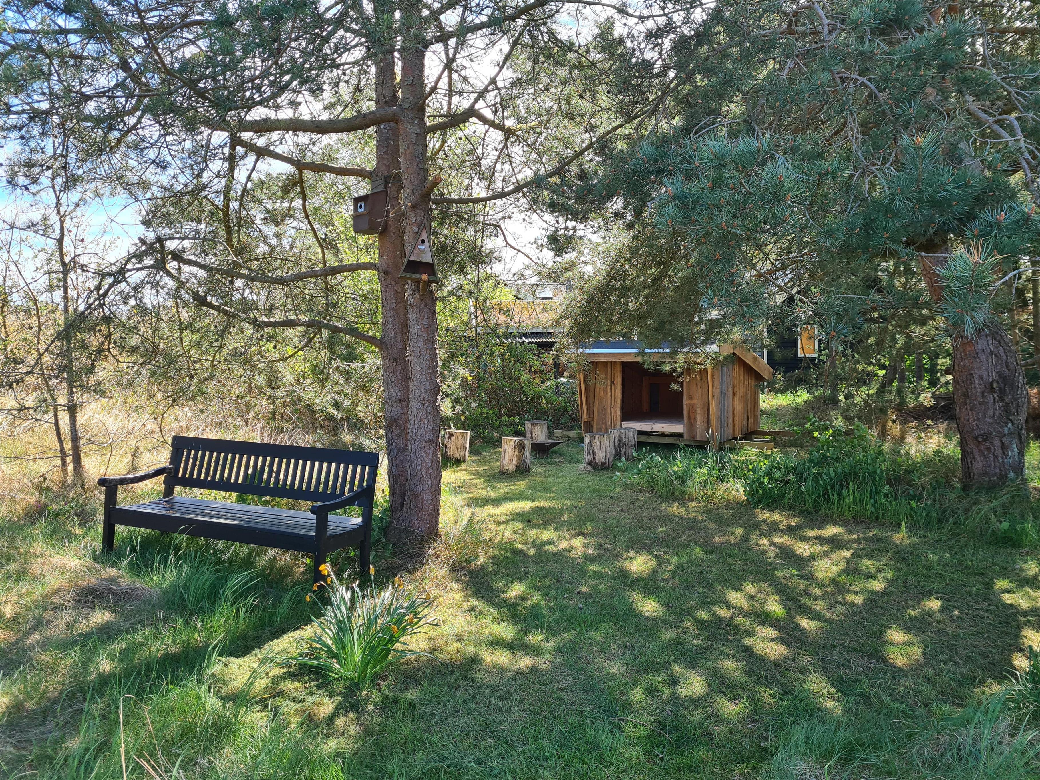 Dejligt sommerhus beliggende i strandnære omgivelser på en naturgrund med træer og buske med delvis overdækket terrasse med havemøbler og grill. Hyggelig opholdsstue med brændeovn, TV med kabel-TV (bl.a. TV2) og stereoanlæg med CD. Køkken med elkomfur, køleskab med lille fryser og opvaskemaskine. Badeværelse med bruseniche. Husets sovepladser fordeler sig på 3 soverum: 2 med enkeltsenge og 1 mindre seng 120x200. Til de små feriegæster findes barneseng og barnestol. Carport til bilen er tilgængelig.