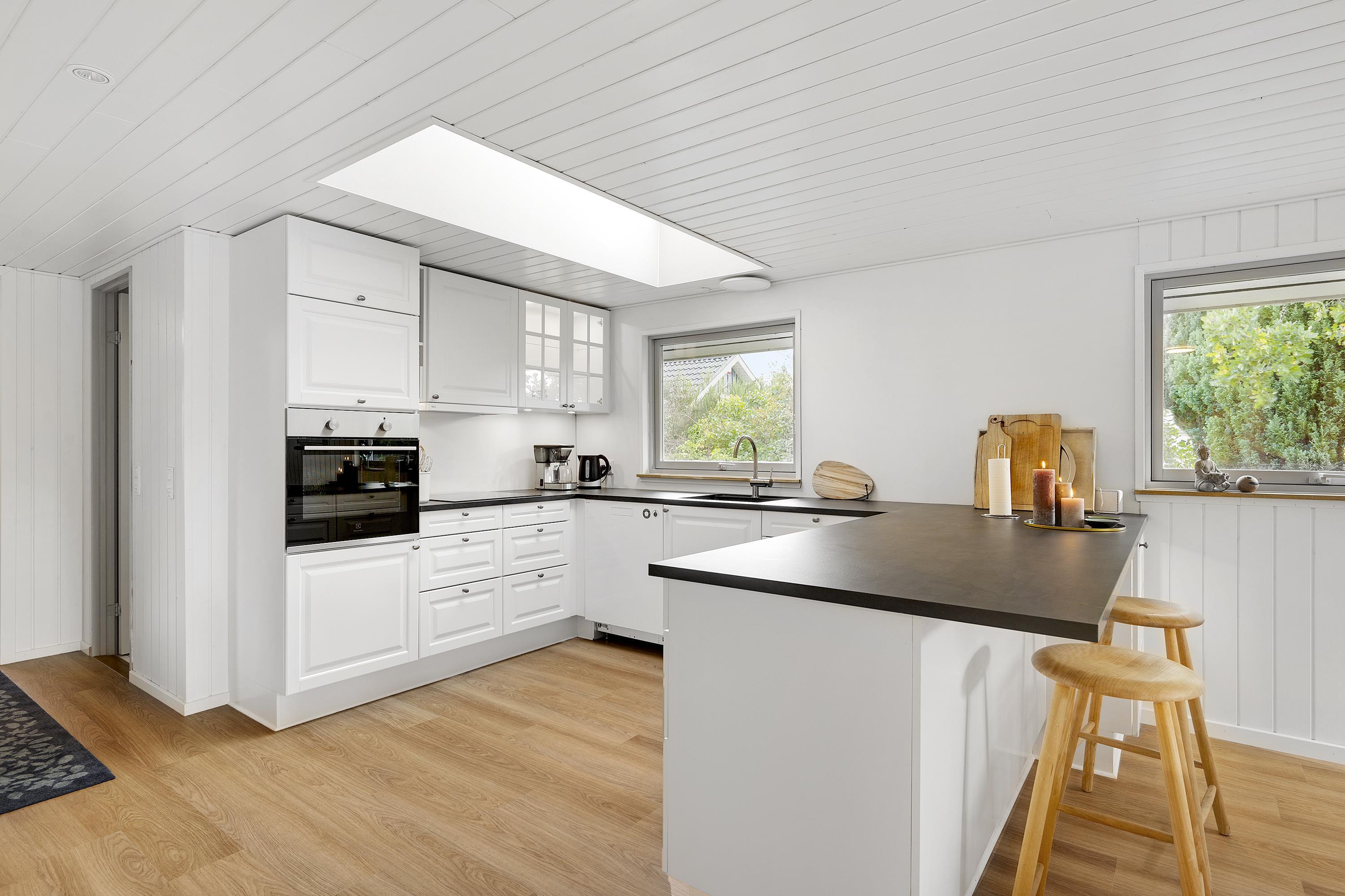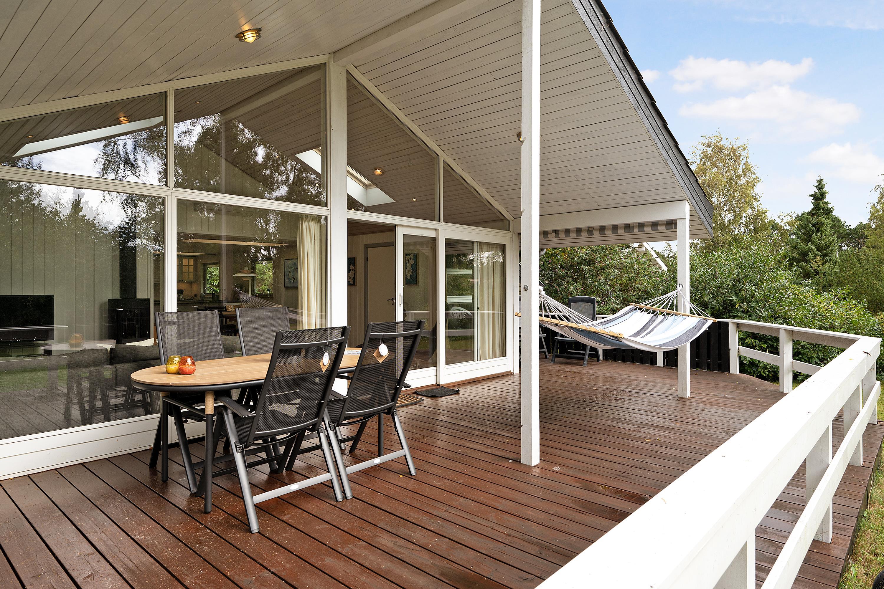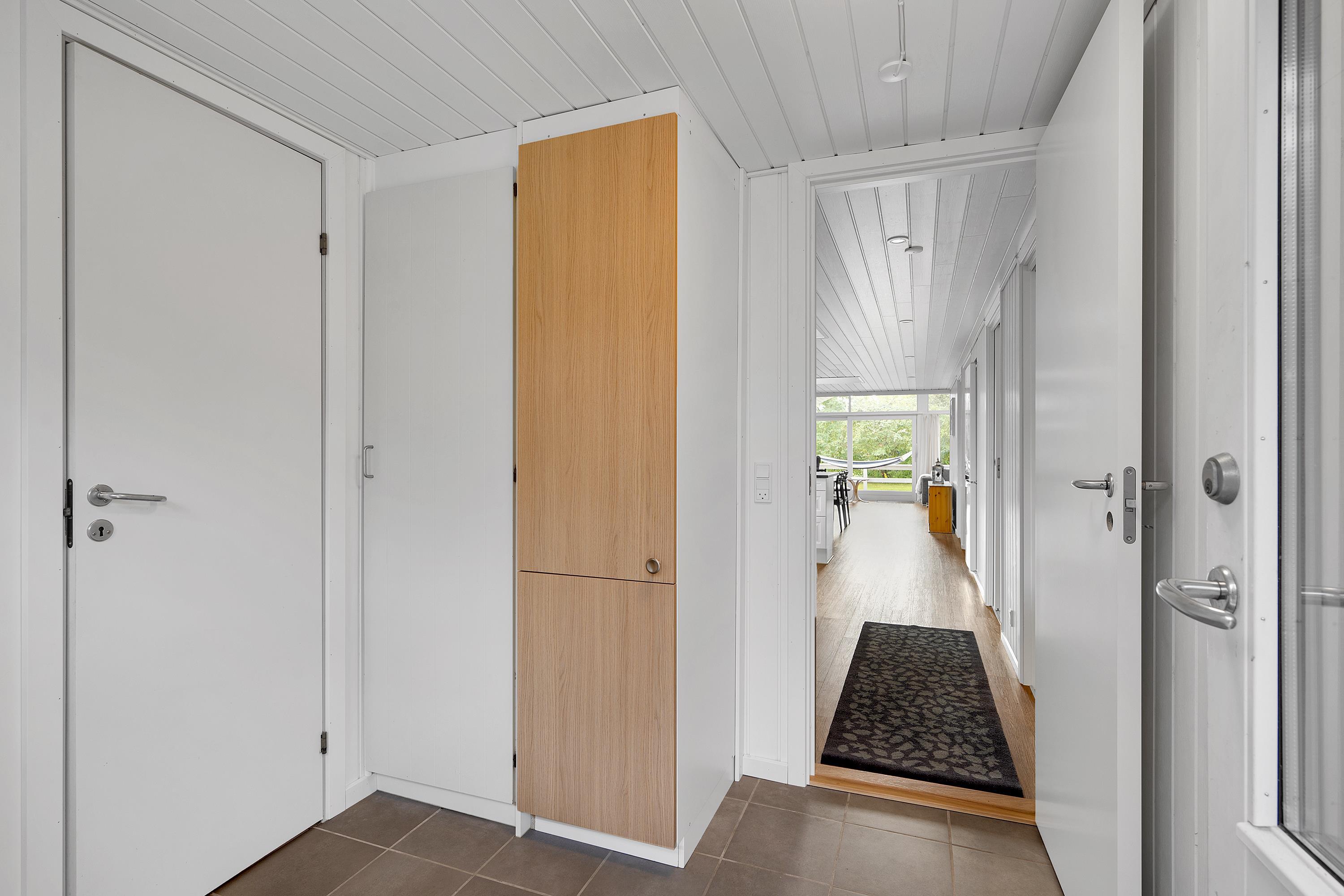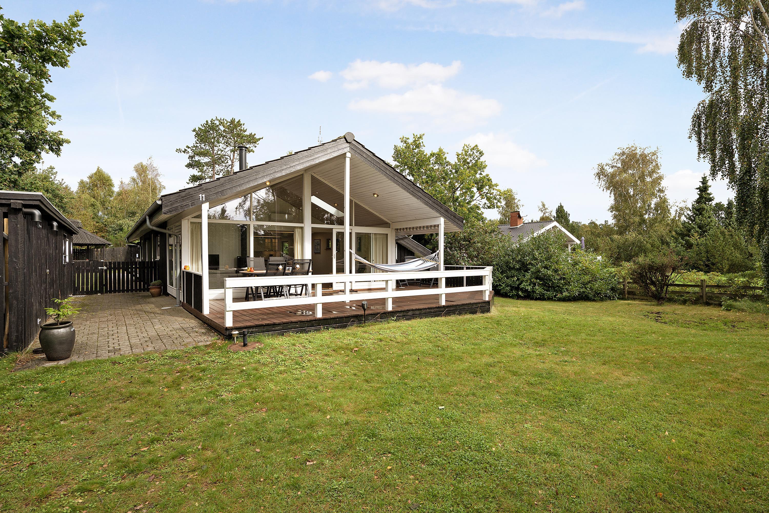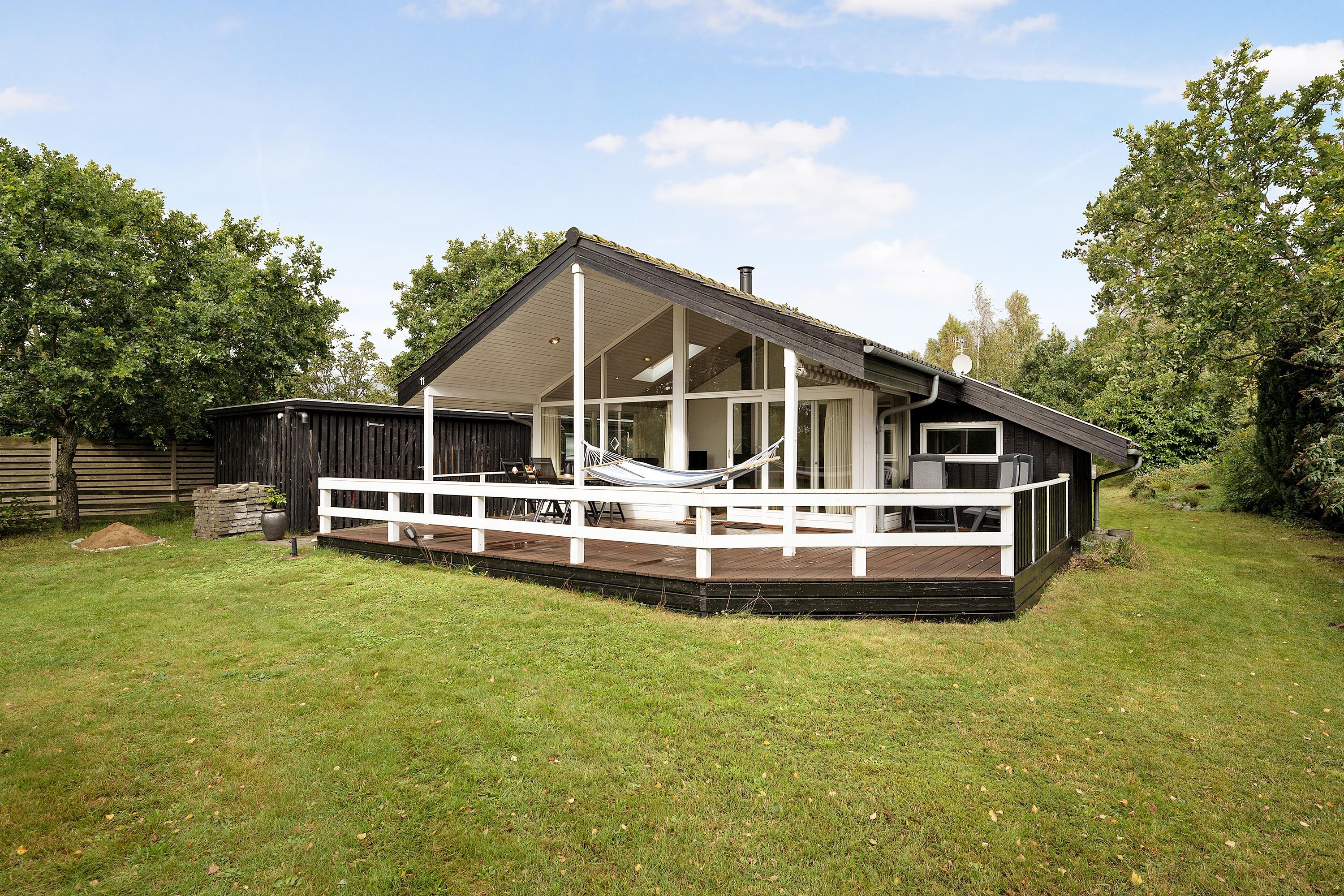 Ældre, løbende renoveret sommerhus beliggende på dejlig naturgrund 300 meter fra strand. Delvis overdækket terrasse med havemøbler og grill. Hyggelig, rummelig opholdsstue med brændeovn, TV med parabol (inkl. TV2), DVD og radio. Godt køkken med keramisk komfur, køleskab med lille fryser samt ekstra større kummefryser og opvaskemaskine. Der er gulvvarme i alle klinkegulve. 2 badeværelser med bruseniche og gulvvarme samt bryggers med vaskemaskine og tørretumbler. Husets sovepladser fordeler sig på 4 soveværelser: 1 med dobbeltseng, 1 med dobbeltseng (1,20 m x 2 m) og 1 køjeseng og 2 med køjesenge. Til de små feriegæster findes barnestol, barneseng og gynge. Udendørs fiskerenseplads. Varmepumpe med airconditionfunktion. Trådløst internet.