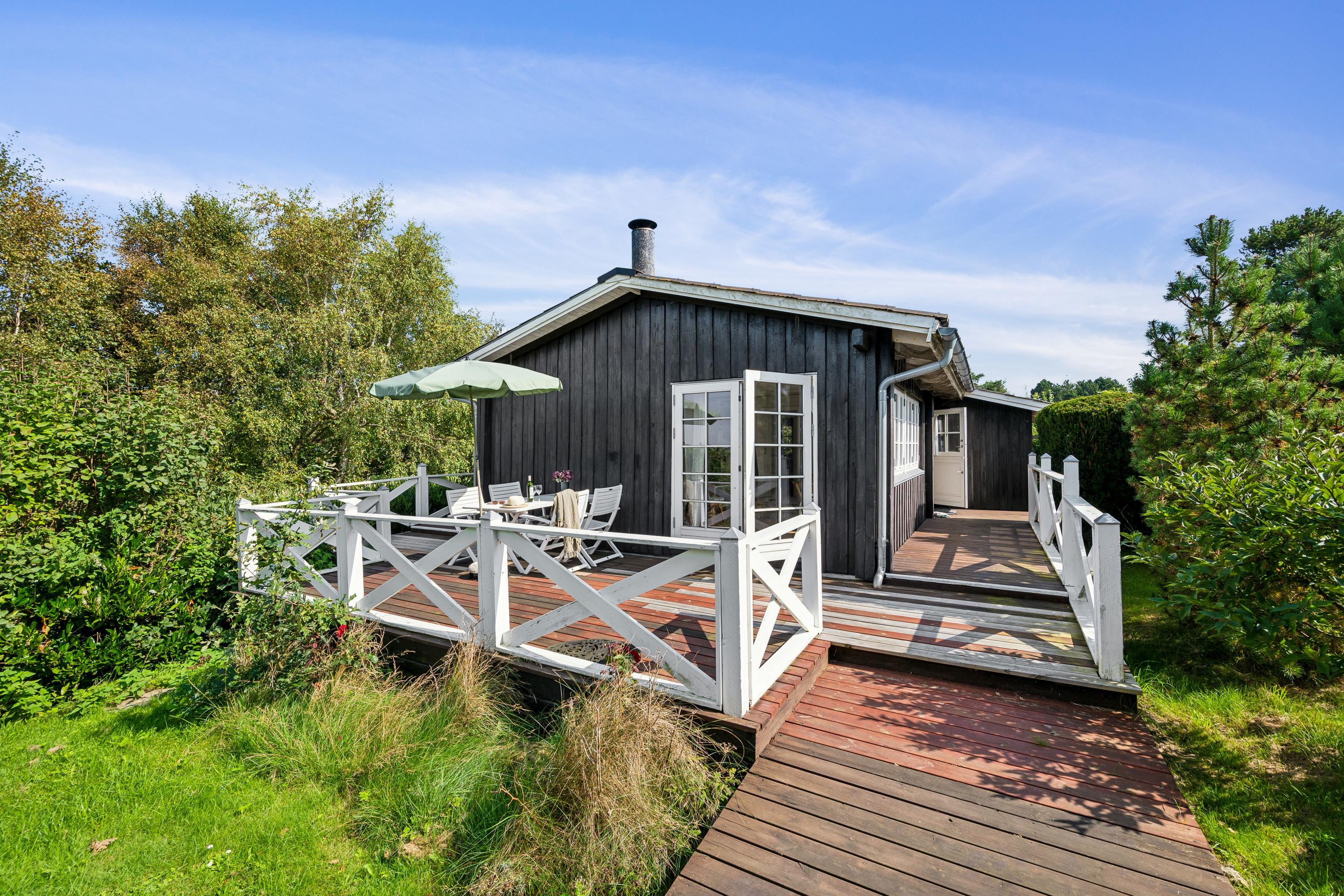 Ikke langt fra en dejlig strand finder man dette mindre, men særdeles hyggelige feriehus. Her finder man en lille hyggelig stue med varmepumpe og brændeovn og med udgang til en dejlig terrasse, hvorfra man har en dejlig udsigt over grønne arealer. I forbindelse med stuen ligger køkkenet med b.la. opvaskemaskine. Husets sovepladser finder man i tre rigtig hyggelige værelser, heraf et med en dobbeltseng, et med en køjeseng og et værelse med en 3/4 seng. Dejligt badeværelse med bruseniche og adgang til vaskemaskine. Der er internet i huset og tv foregår med Chromecast/streaming. På grunden finder man et anneks som er til fri afbenyttelse. Ved huset er der dejlige terrassearealer med havemøbler og grill. Dejlig grund med en stor græsplæne som er velegnet til udendørshygge og aktiviteter. Huset er beliggende 5-10 min gang fra stranden.