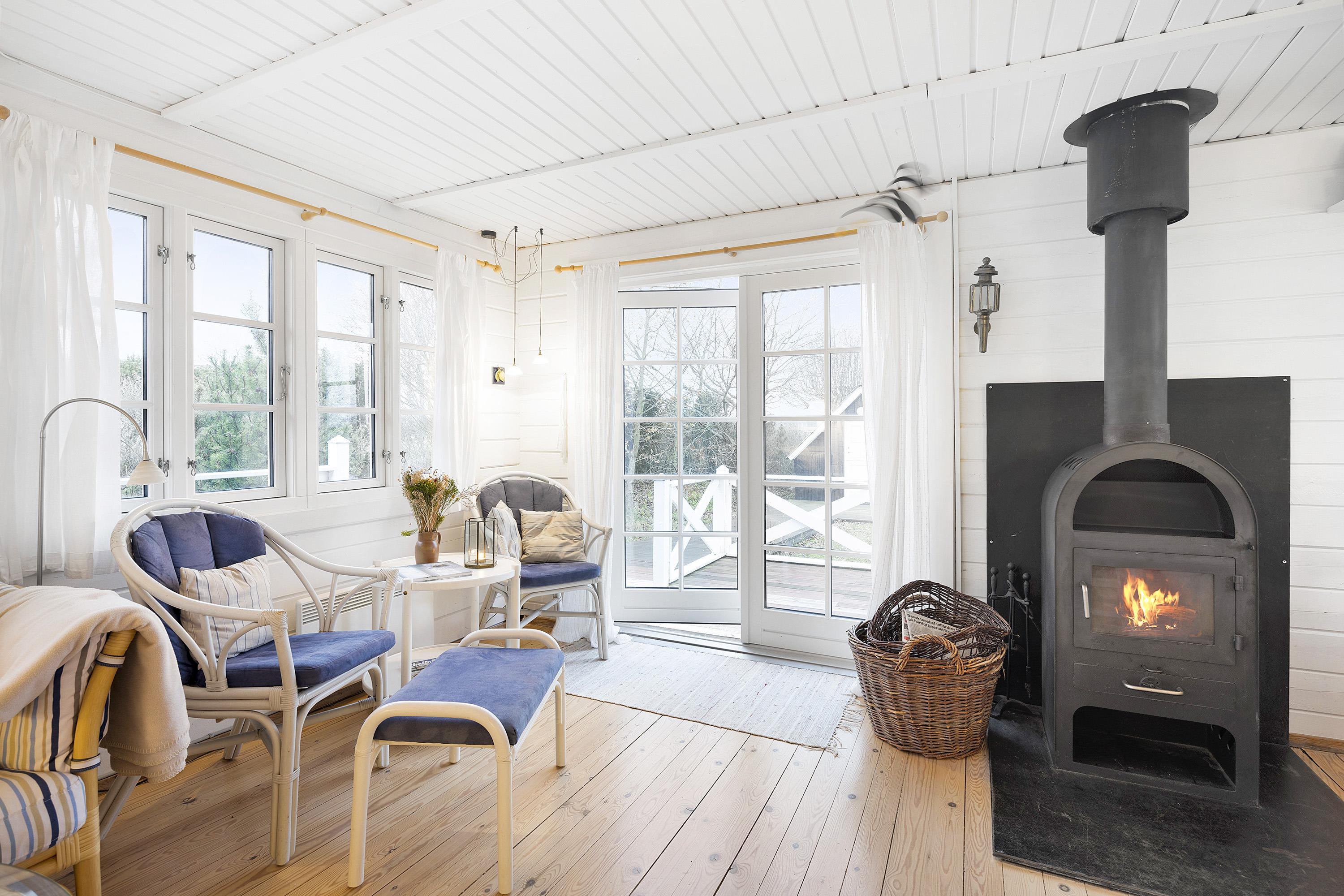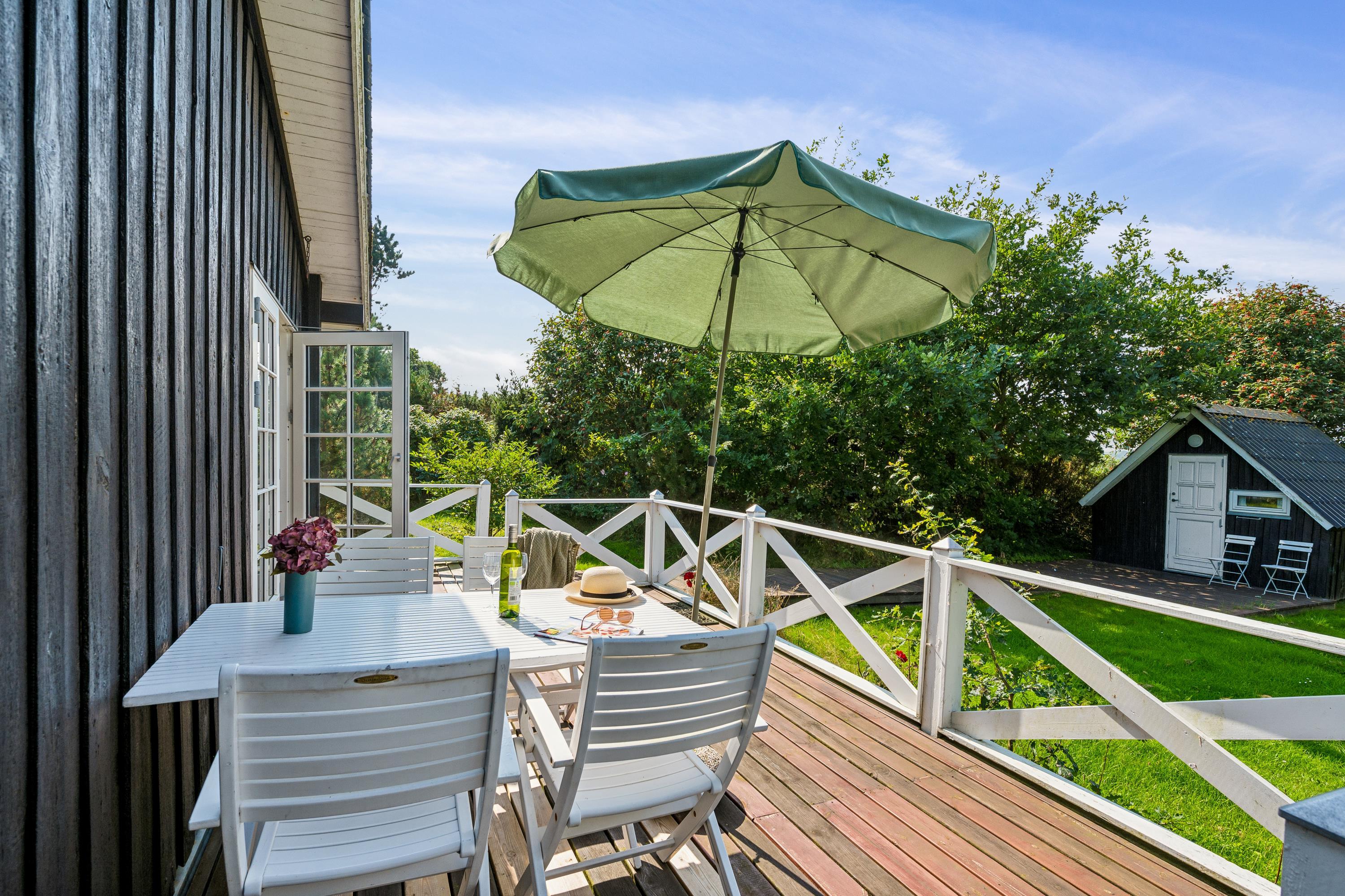 Hyggeligt feriehus nær Boeslum Strand med terrasse, brændeovn og internet i naturskønne omgivelser.