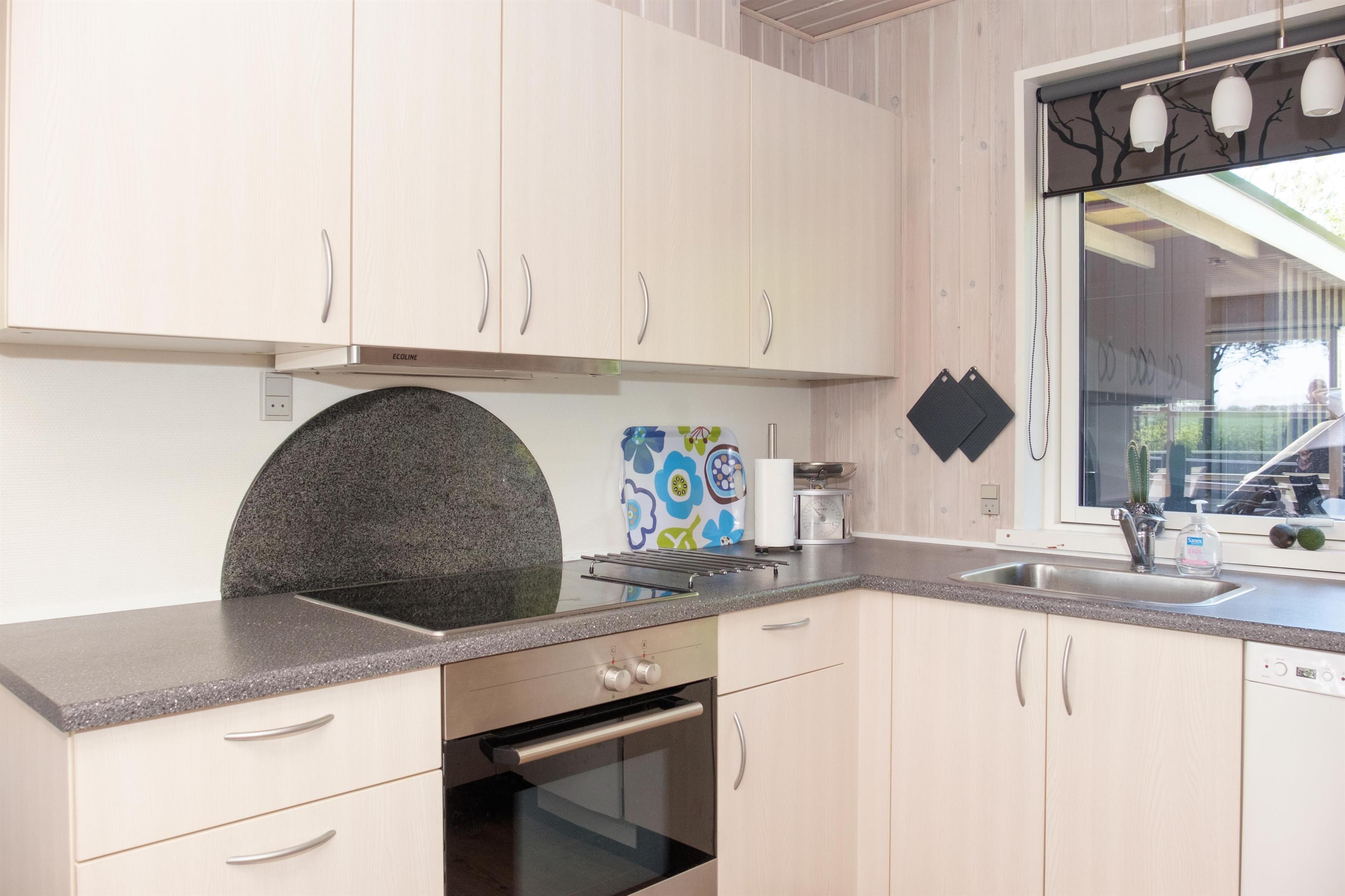 Lys og indbydende stue med hvidpatinerede vægge og lofter og i åben forbindelse med nyere, veludstyret køkken. Stuen har komfortabel sofaafdeling og spiseplads til 6 personer samt TV med danske (inkl. TV2) og tyske kanaler. I det rummelige køkken er der keramiske kogeplader, ovn, køle-/fryseskab, opvaskemaskine og mikrobølgeovn. Huset rummer 1 soveværelse med 2 enkeltsenge, 1 værelse med 1½ personers seng samt værelse i anneks med 2 enkeltsenge, i alt 6 sovepladser. Nydeligt badeværelse med bruseniche. I entreen forefindes vaskemaskine. Der er internetadgang.