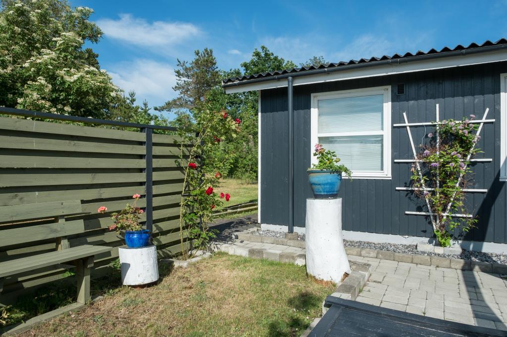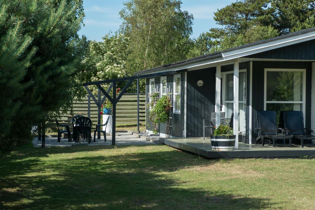 Feriehus beliggende på delvis indhegnet og pænt beplantet naturgrund og kun en kort gåtur fra den børnevenlige Boeslum Strand. Dejlig, delvis overdækket træ- og fliseterrasse med havemøbler og grill.