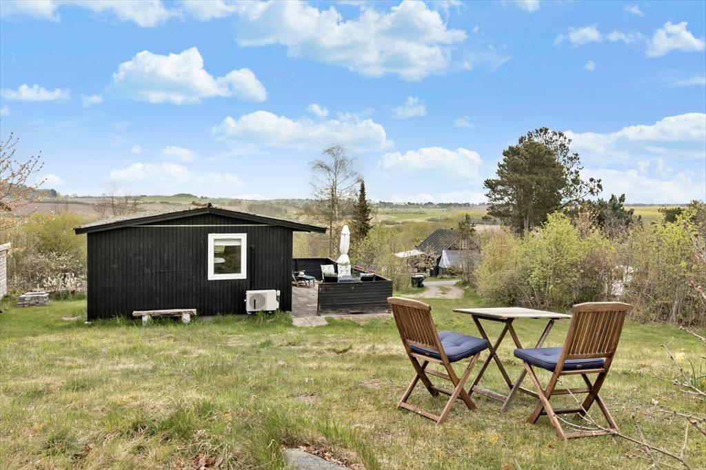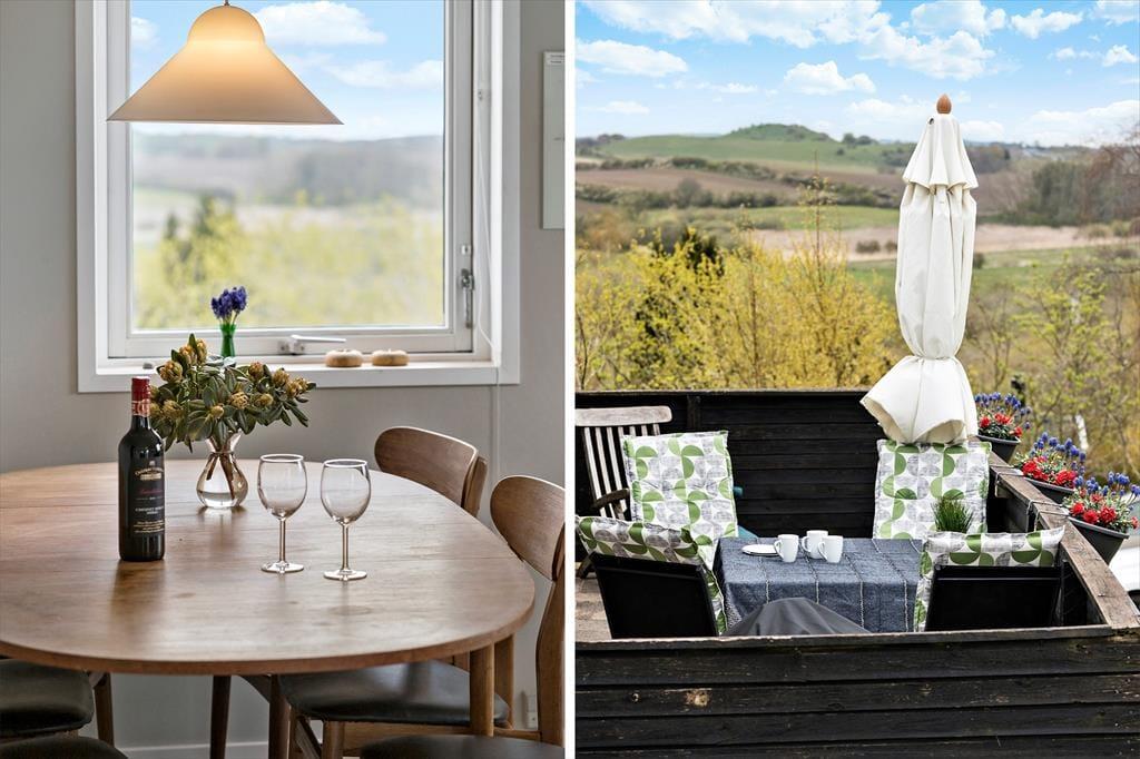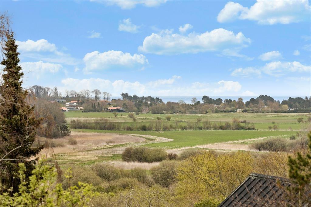 Huset ligger højt på grunden og det skaber en smukt udsyn over området. Hvis du går op på den øverste del af grunden, kan du sidde og nyde en endnu flottere udsigt nemlig ”havkik” sammen med den dejlige morgenkaffe eller the. Er du rigtig tidligt oppe kommer der af og til nogle af skovens dyr forbi. Harer, dådyr og måske en ræv kan ses og ikke mindst kan man nyde nattergalens sang i sommerens løb.
