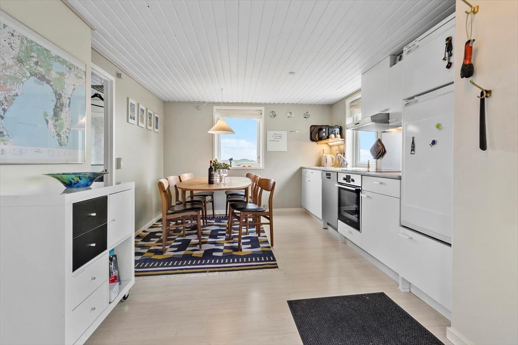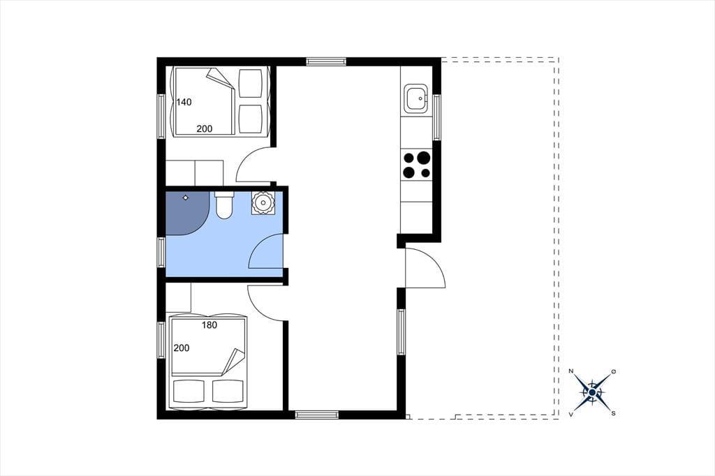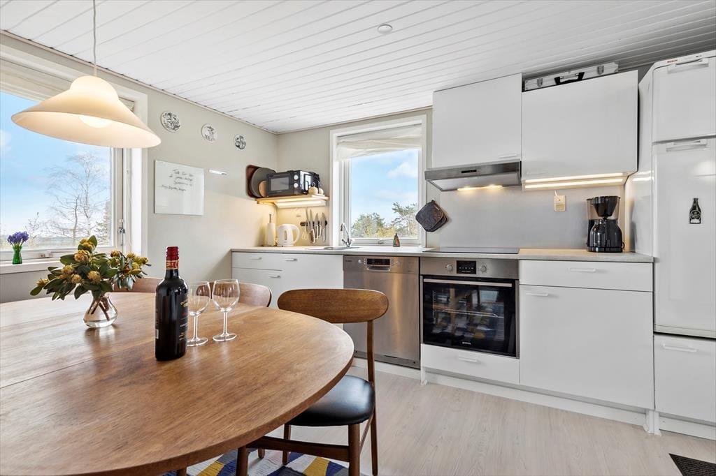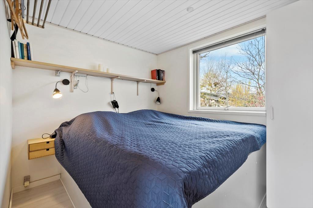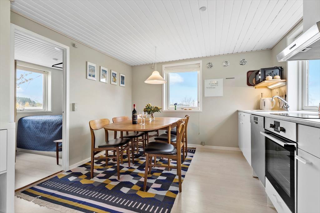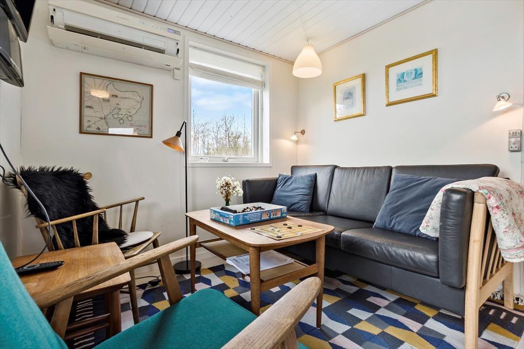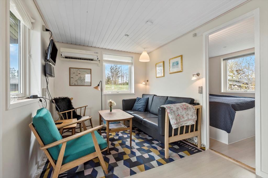 Dette lille fine feriehus er til den mindre familie, som ønsker et lille egoisthus. Her er 2 værelser det ene har to elevationssenge, det andet en dobbeltseng og et funktionelt badeværelse mellem de to værelser. Husets køkken ligger i åben forbindelse med stuen og spisestuen, så her kan alle deltage, lige meget om der skal laves mad eller spilles spil. Det er bare med at komme afsted og finde den indre ro og fred frem som huset virkelig indbyder til.