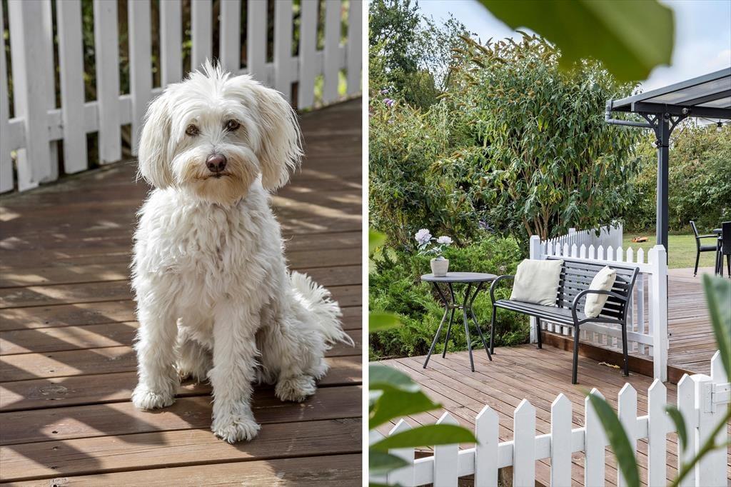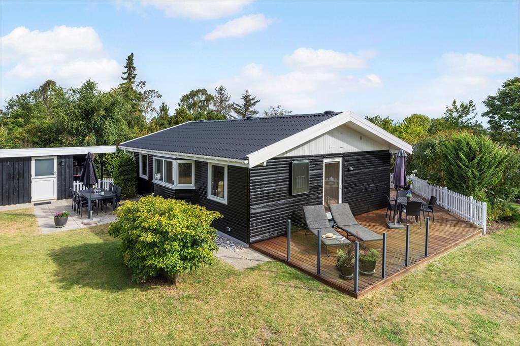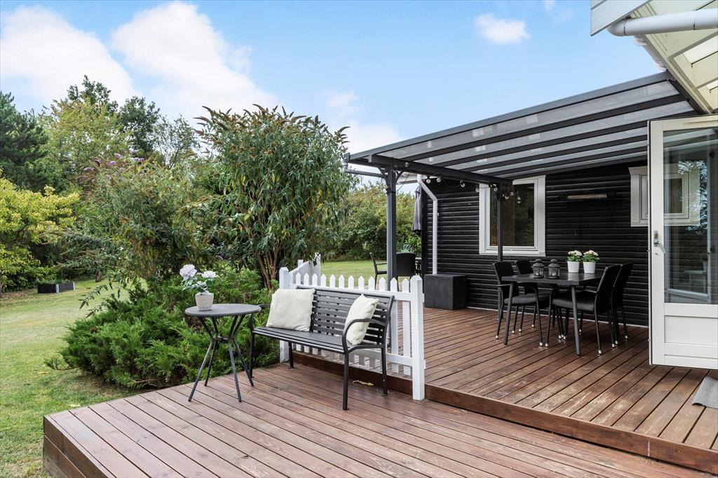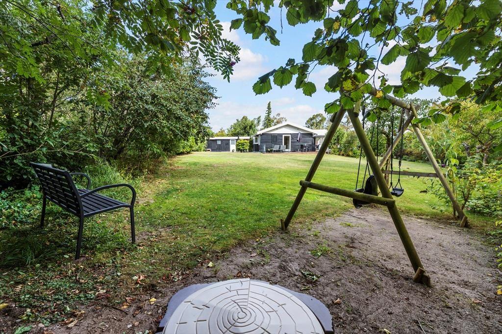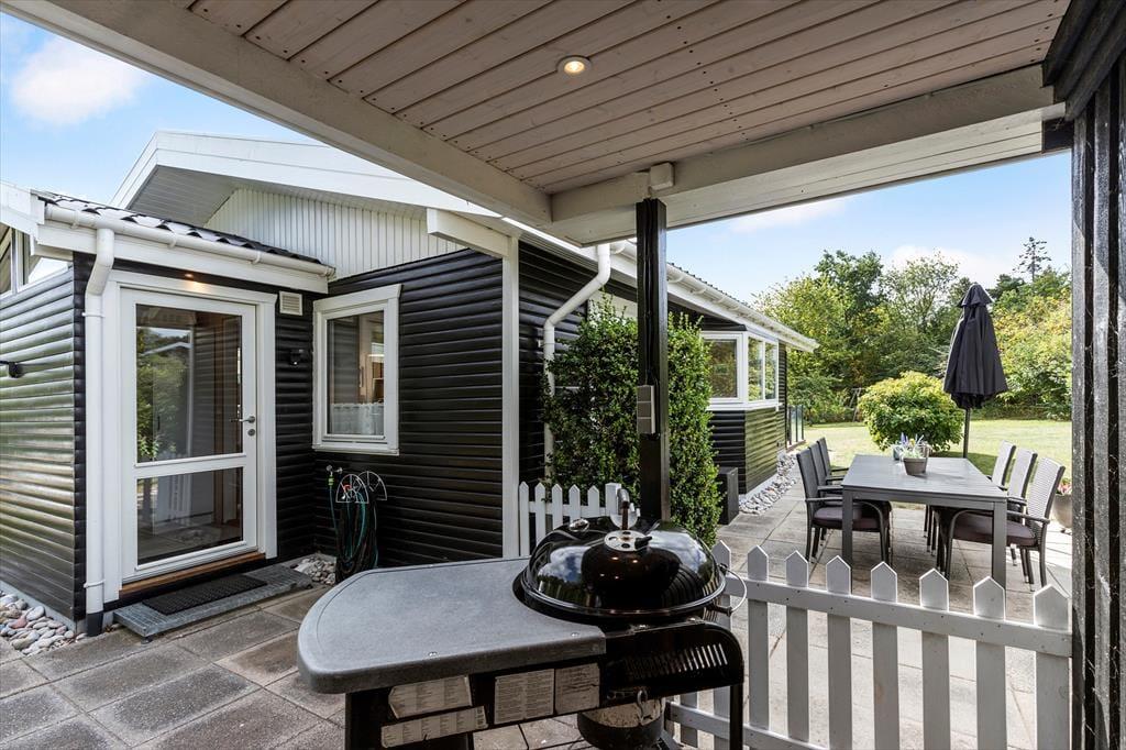 Det grønne, rolige sommerhusområde inviterer til ren afslapning. På den store, delvist overdækkede terrasse kan I nyde morgenkaffen med fuglefløjt i baggrunden eller tænde op i grillen til en lang sommeraften under åben himmel. Der er masser af plads til leg og spil på græsplænen, og børnene vil elske både gyngestativ og sandkasse. Trænger I til en dukkert, er der ikke langt til den børnevenlige strand, hvor I kan dyppe tæerne, bygge sandslotte eller bare nyde udsigten over Kattegat.