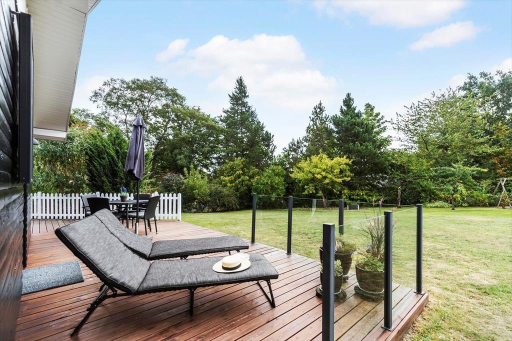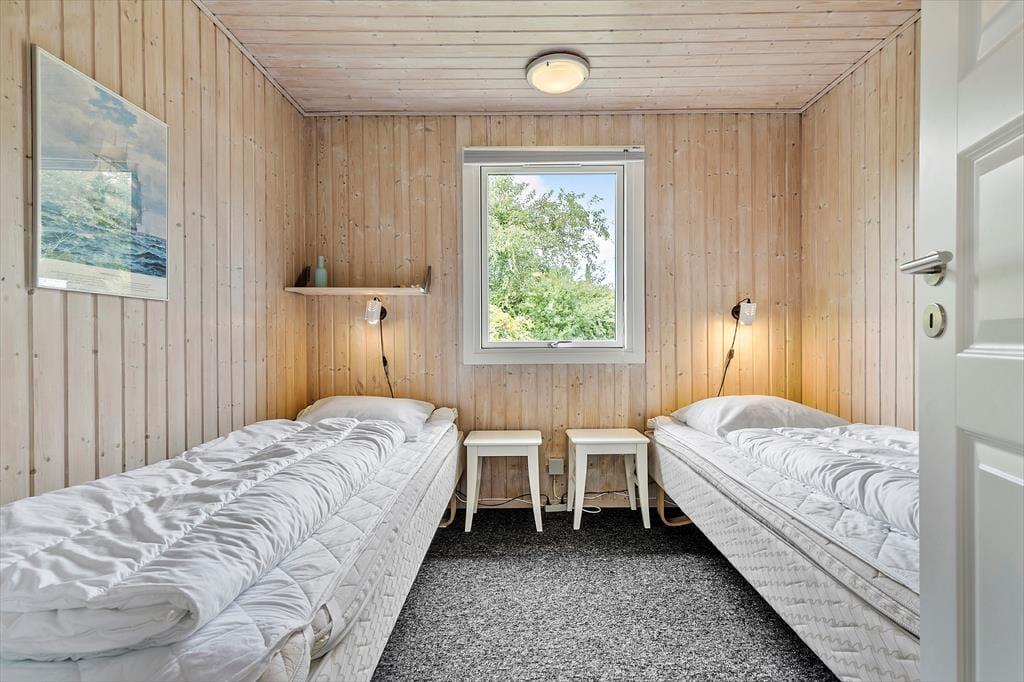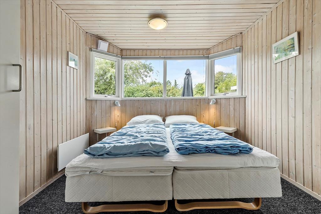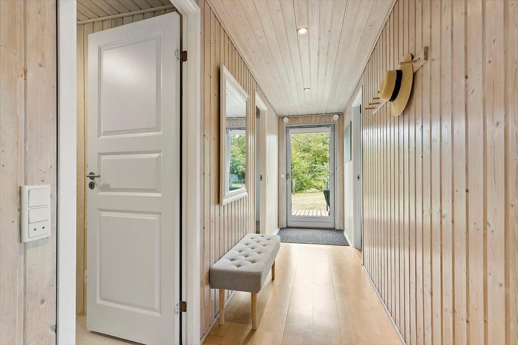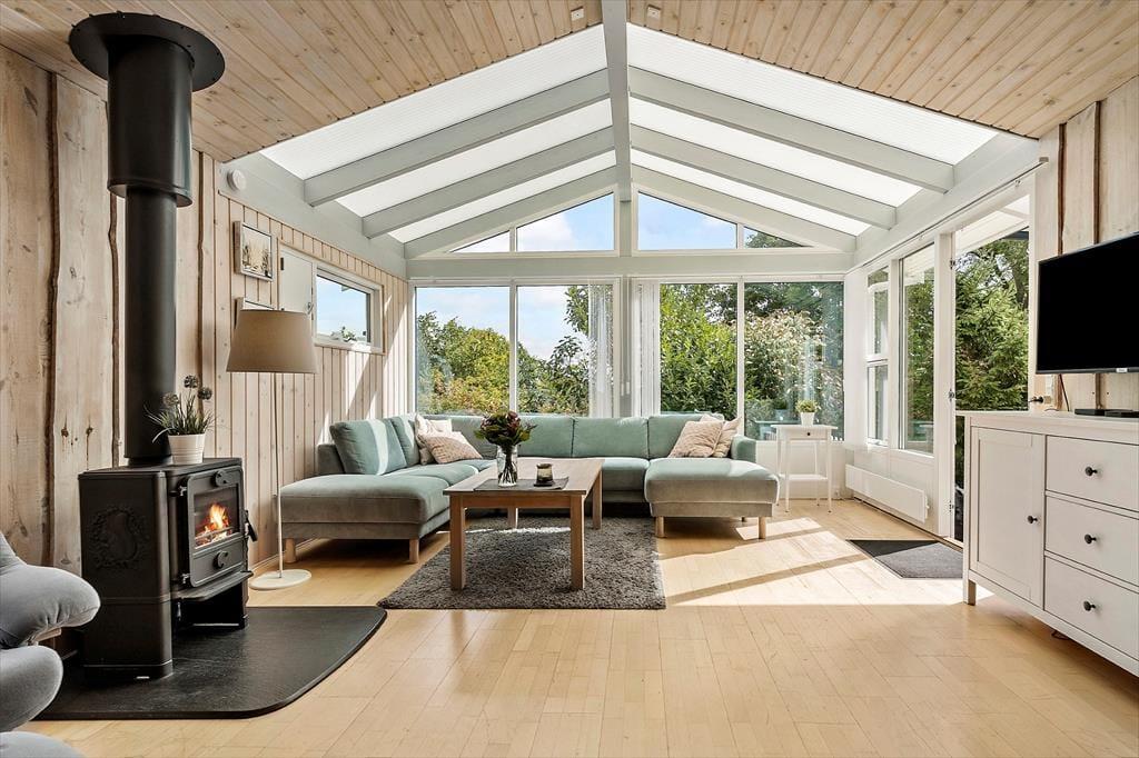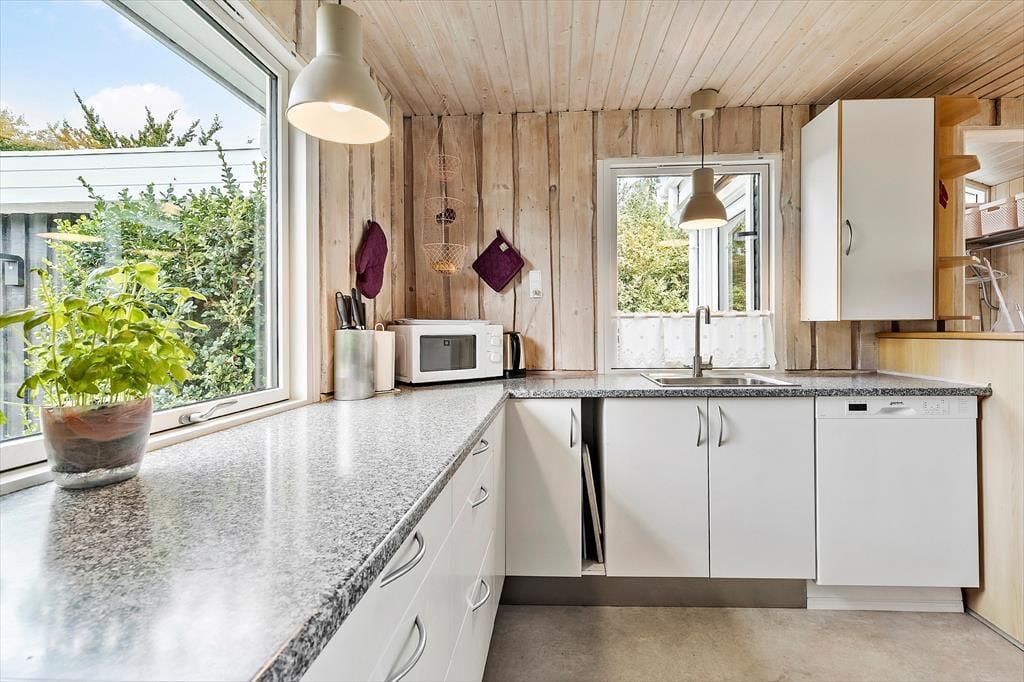 Her får I en lys og indbydende base til jeres næste ferie – perfekt til både afslapning og hyggelige stunder med familien. Det velholdte træhus byder på en dejlig atmosfære, hvor loft til kip og store vinduespartier skaber luft og lys i opholdsrummet. Her kan I læne jer tilbage i sofaen med udsigt til haven, mens brændeovnen knitrer i baggrunden og bidrager med ekstra hygge. Køkkenet er praktisk indrettet og en del af det åbne opholdsrum, så I kan lave mad og samtidig være en del af snakken. Huset har tre gode soveværelser med komfortable senge og plads til i alt seks personer – og badeværelset byder på bademulighed i en bruseniche, så I kan forkæle jer selv efter en lang gåtur ved vandet.