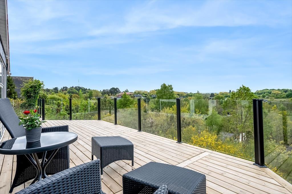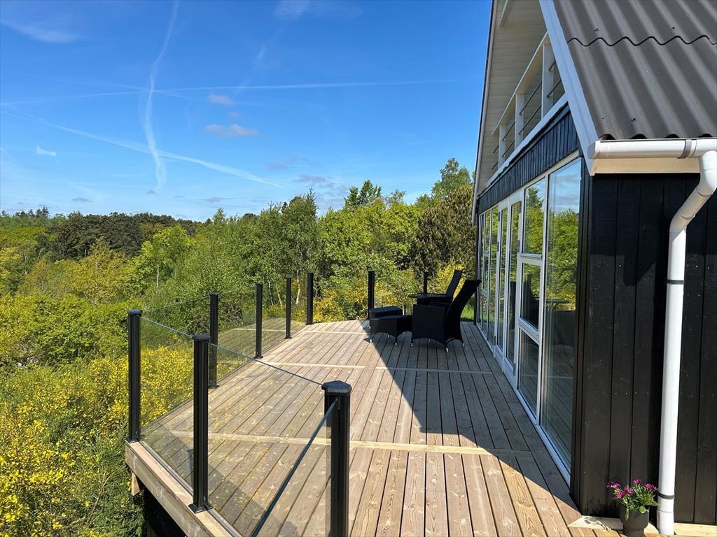 Den store træterrasse giver dig perfekte rammer til udeliv: morgenmad med udsigt, afslapning i liggestolene, grillaftener i den friske luft eller et varmt bad i vildmarksbadet, mens du kigger ud over naturen. Grunden er stor og privat, så du både får fred, plads og et naturligt kig ud mod det åbne Djursland.