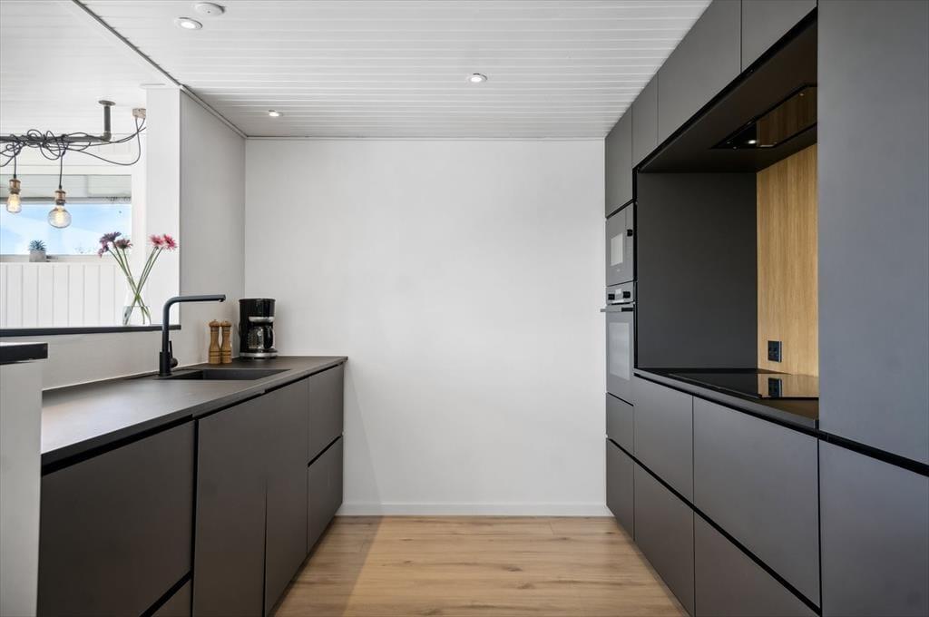 De store vinduespartier trækker naturen ind og giver dig en følelse af at være omgivet af landskabet, selv når du sidder i sofaen med en kop kaffe eller foran brændeovnen på en kølig aften. Køkkenet er moderne og veludstyret, værelserne er lyse, og hele huset fremstår gennemført og indbydende. Her kan du sænke skuldrene og nyde udsigten fra første minut.