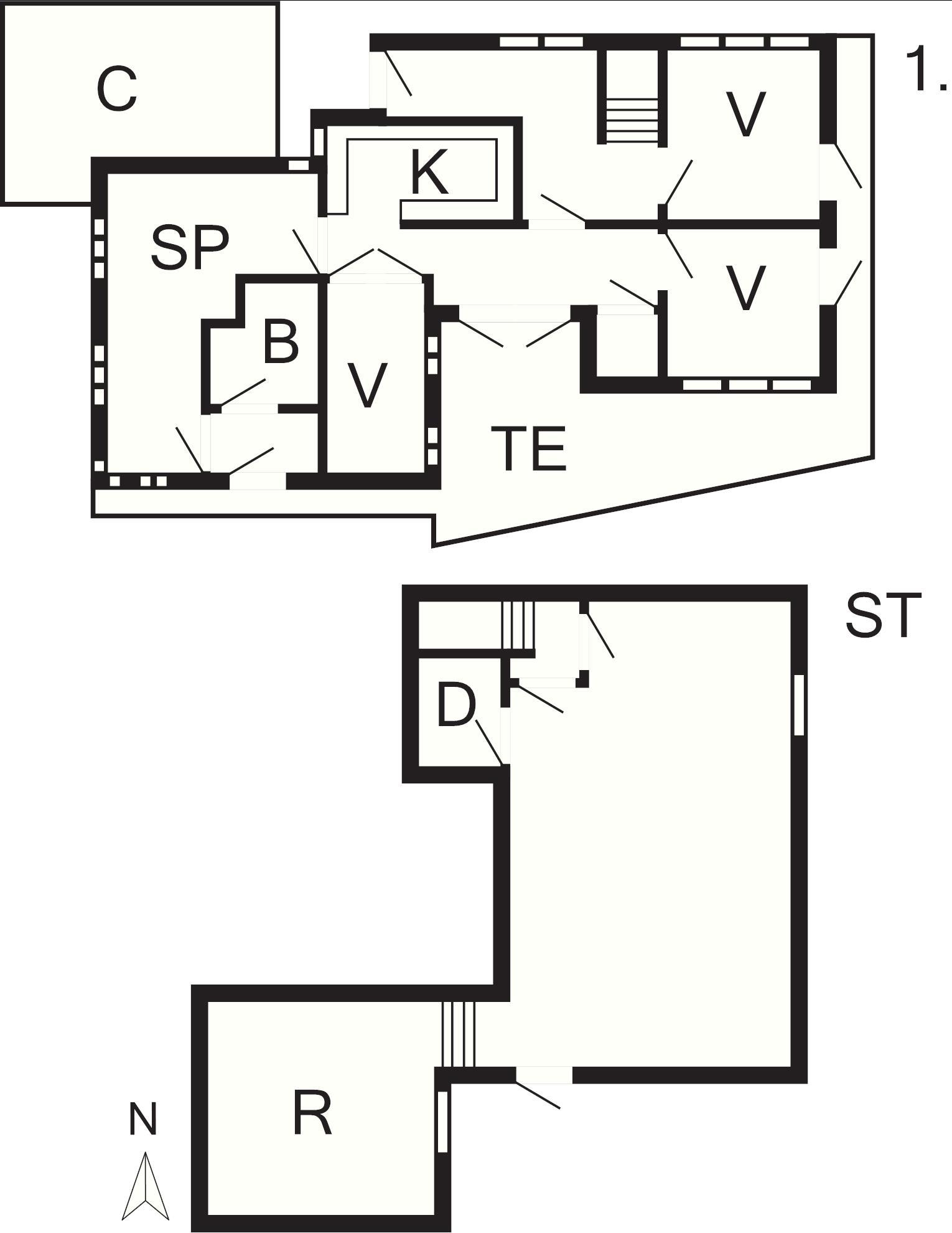 1 Opholdsstue: Brændeovn, radio, tv