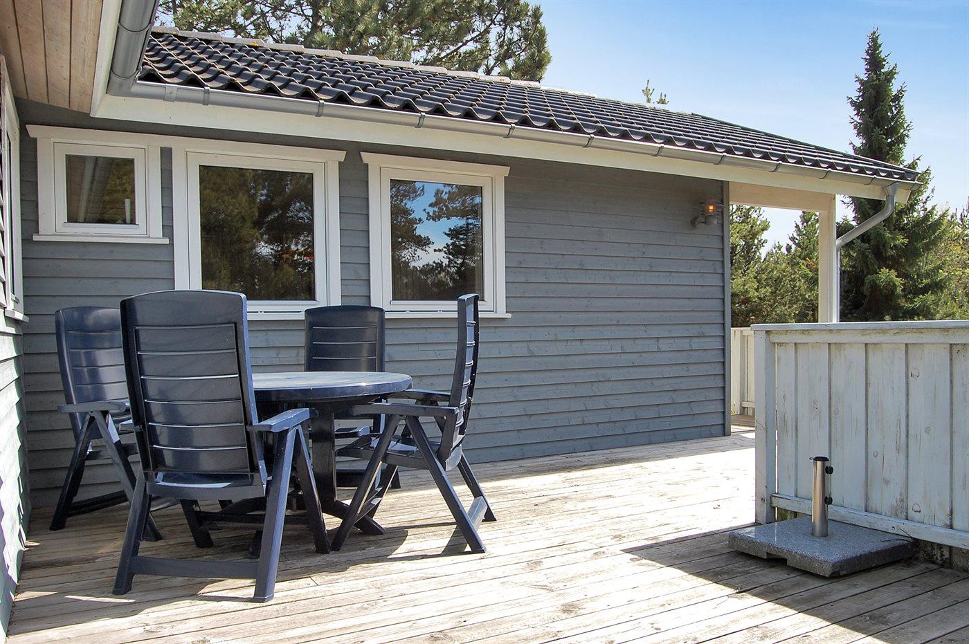 Ferieboligen er beliggende på en 1600 m² stor naturgrund. Der er 350 m til havet. Nærmeste forretning er beliggende i en afstand af 5000 m. Til ferieboligen hører 40 m² terrasseareal. Desuden er der 20 m² overdækket terrasse. Gynge. Sandkasse. Legetårn. Klatrevæg. Rutchebane. Parkering ved ferieboligen.
