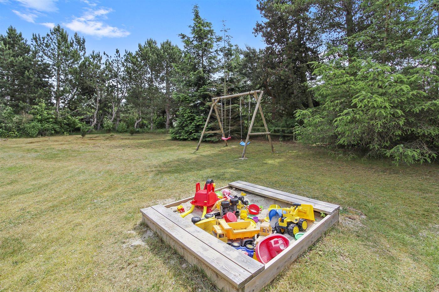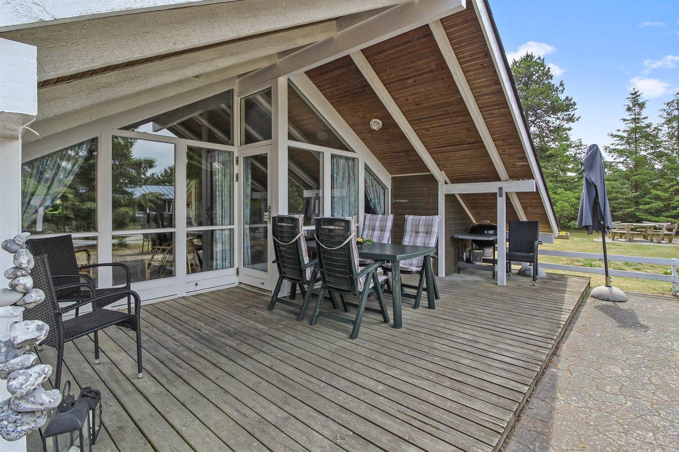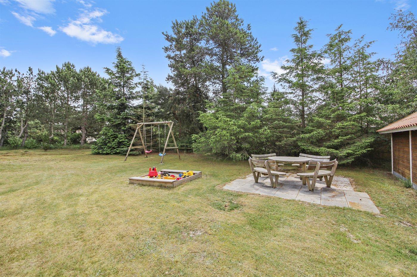 Ferieboligen er beliggende på en 1217 m² stor naturgrund. Der er 300 m til havet. Nærmeste forretning er beliggende i en afstand af 3500 m. Der er en golfbane i en afstand af 5000 m. Til ferieboligen hører 20 m² terrasseareal. Desuden er der 5 m² overdækket terrasse. Der er redskabsrum. Gynge. Sandkasse. Grill til rådighed. (Weber kuglegrill). Der er carport til rådighed. Parkering ved ferieboligen.