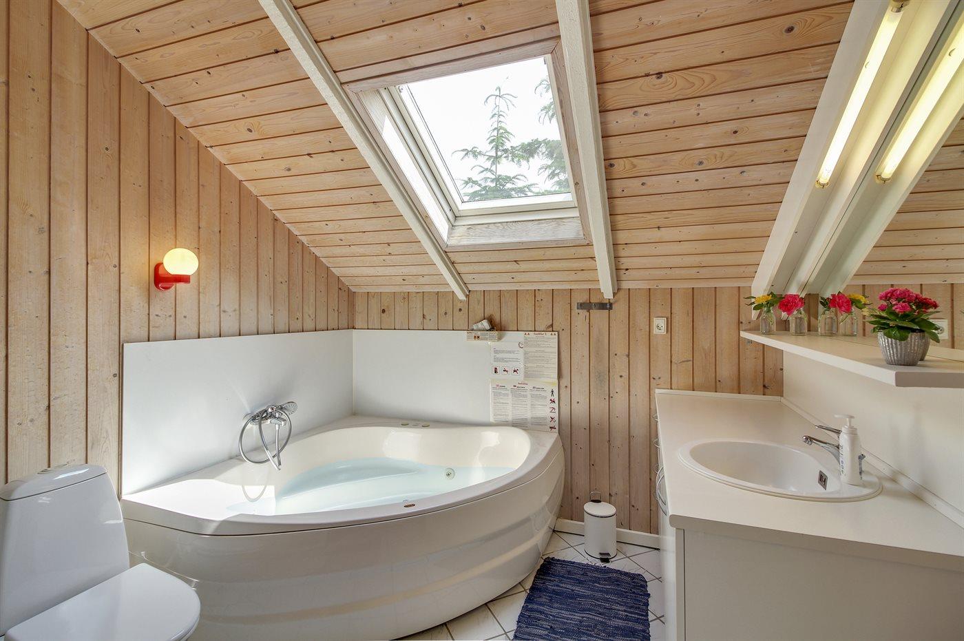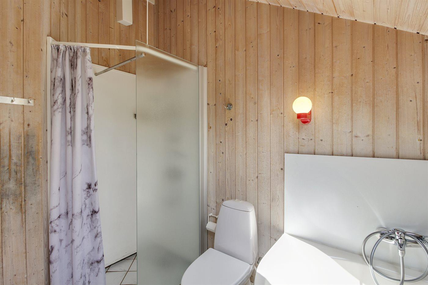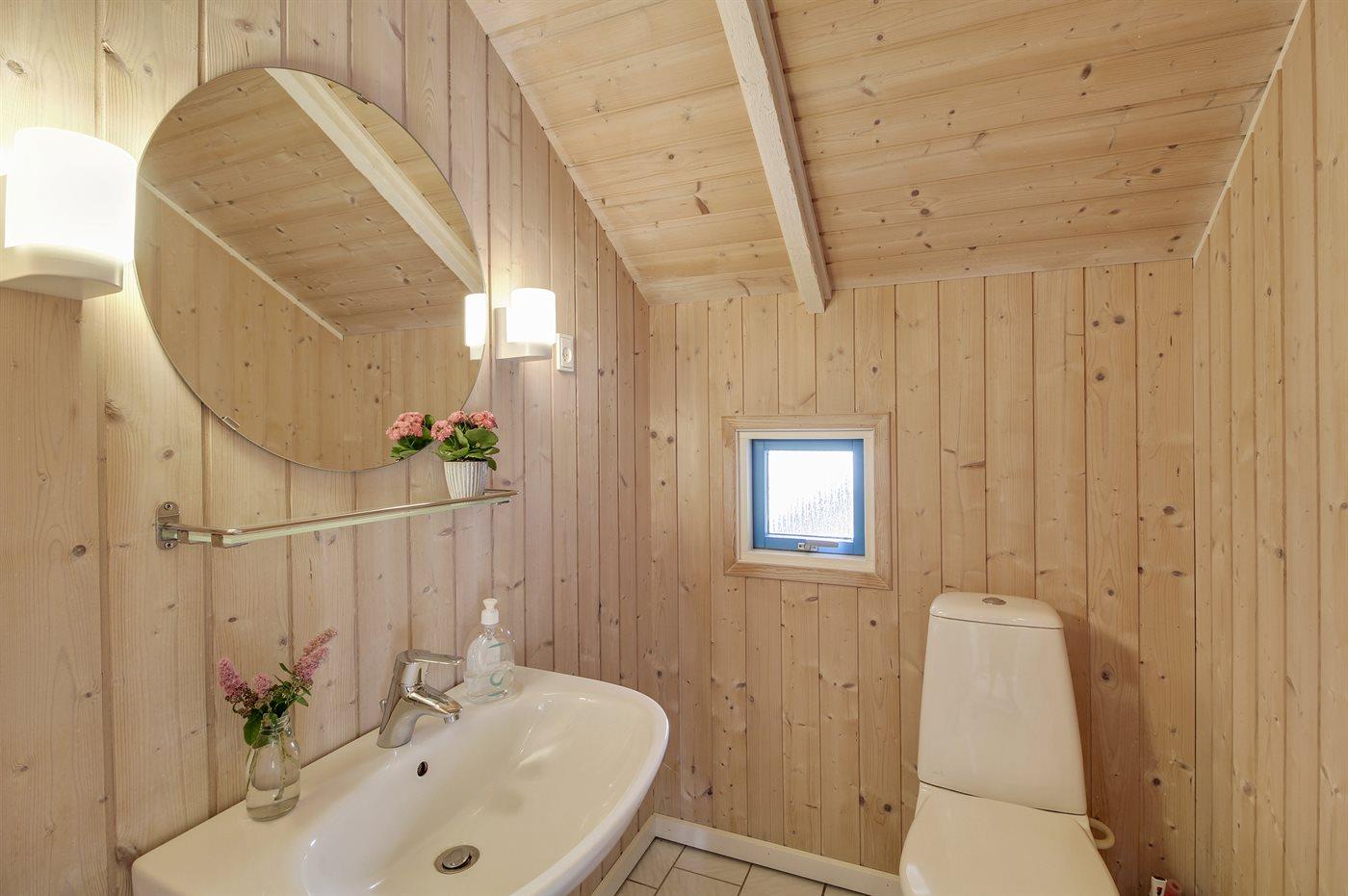 Der er 1 badeværelse med bruseniche og 2 toiletter, heraf 1 gæstetoilet. Der er gulvvarme på 1 badeværelse. I saunaen er der mulighed for afslapning.