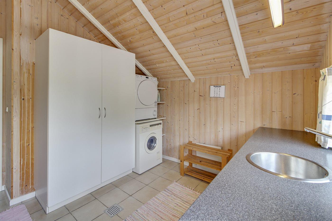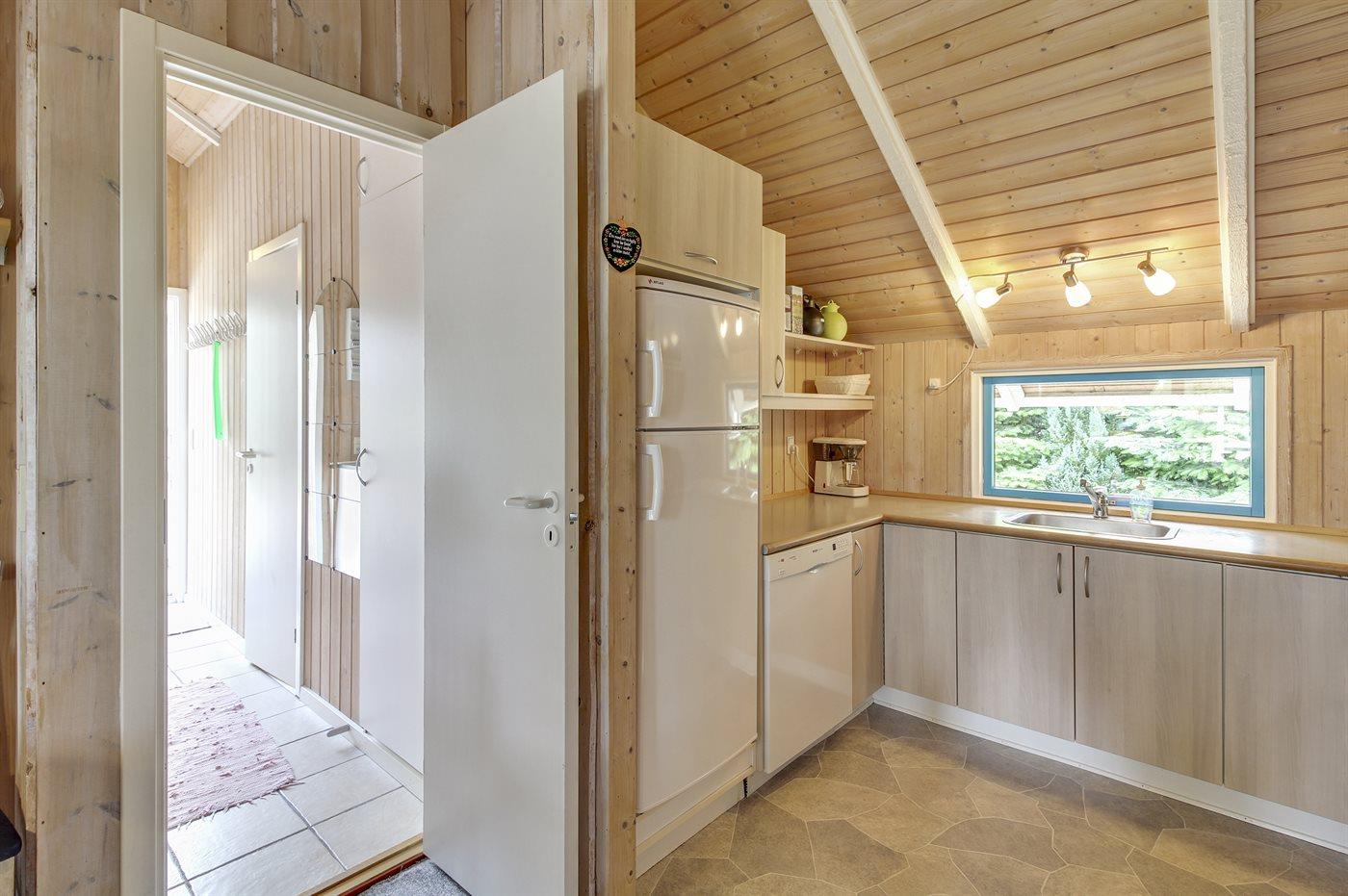 Køkkenet er udstyret med 1 køleskab. Der er 4 keramiske kogeplader, varmluftovn, mikrobølgeovn samt opvaskemaskine.