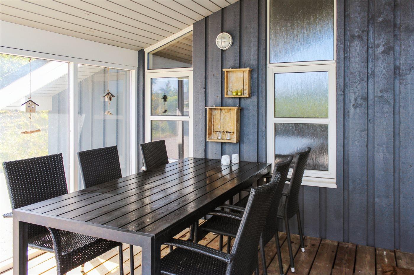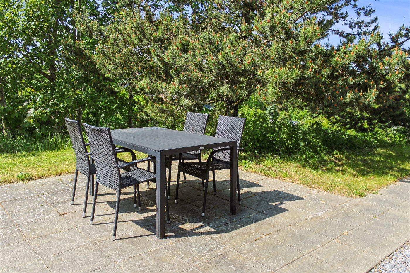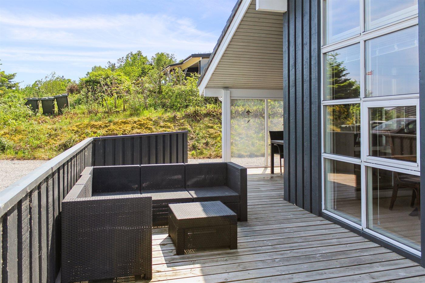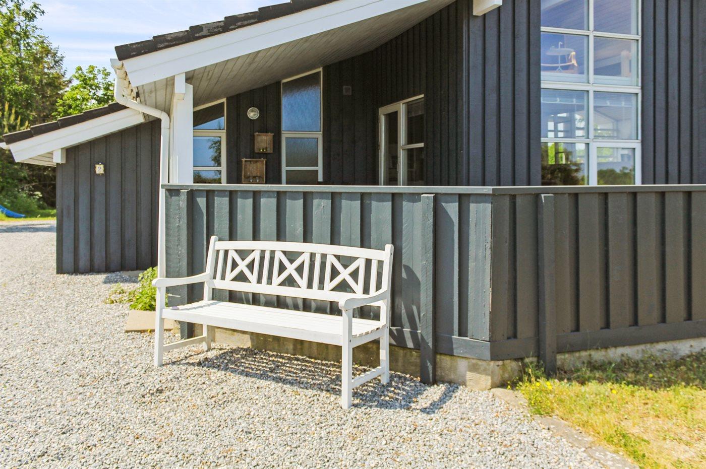 Ferieboligen er beliggende på en 3360 m² stor havegrund. Der er 1200 m til havet. Nærmeste forretning er beliggende i en afstand af 1500 m. Til ferieboligen hører 60 m² terrasseareal. Desuden er der 14 m² overdækket terrasse. Der er redskabsrum. Gynge. Sandkasse. Rutchebane. Der er carport til rådighed. Parkering ved ferieboligen.