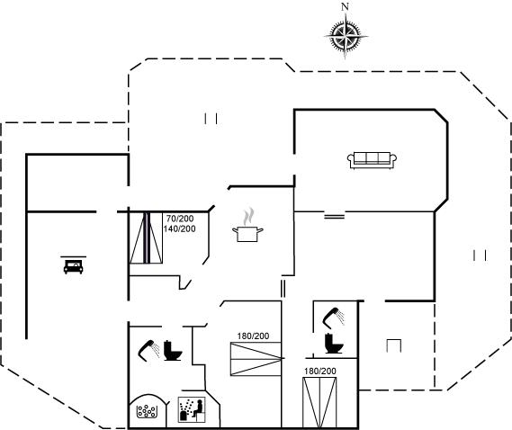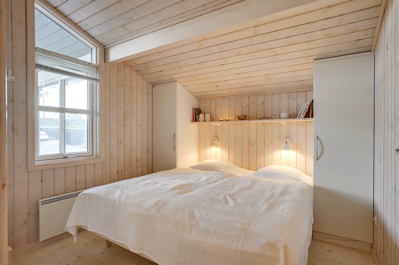 Der er i alt 3 soveværelser. Sovepladserne fordeler sig på: 6 sovepladser i dobbeltsenge.1 soveplads i køjeseng. 1 soveplads på madras. 1 af disse sovepladser befinder sig på husets hems. Derudover er der 1 stk. barneseng.